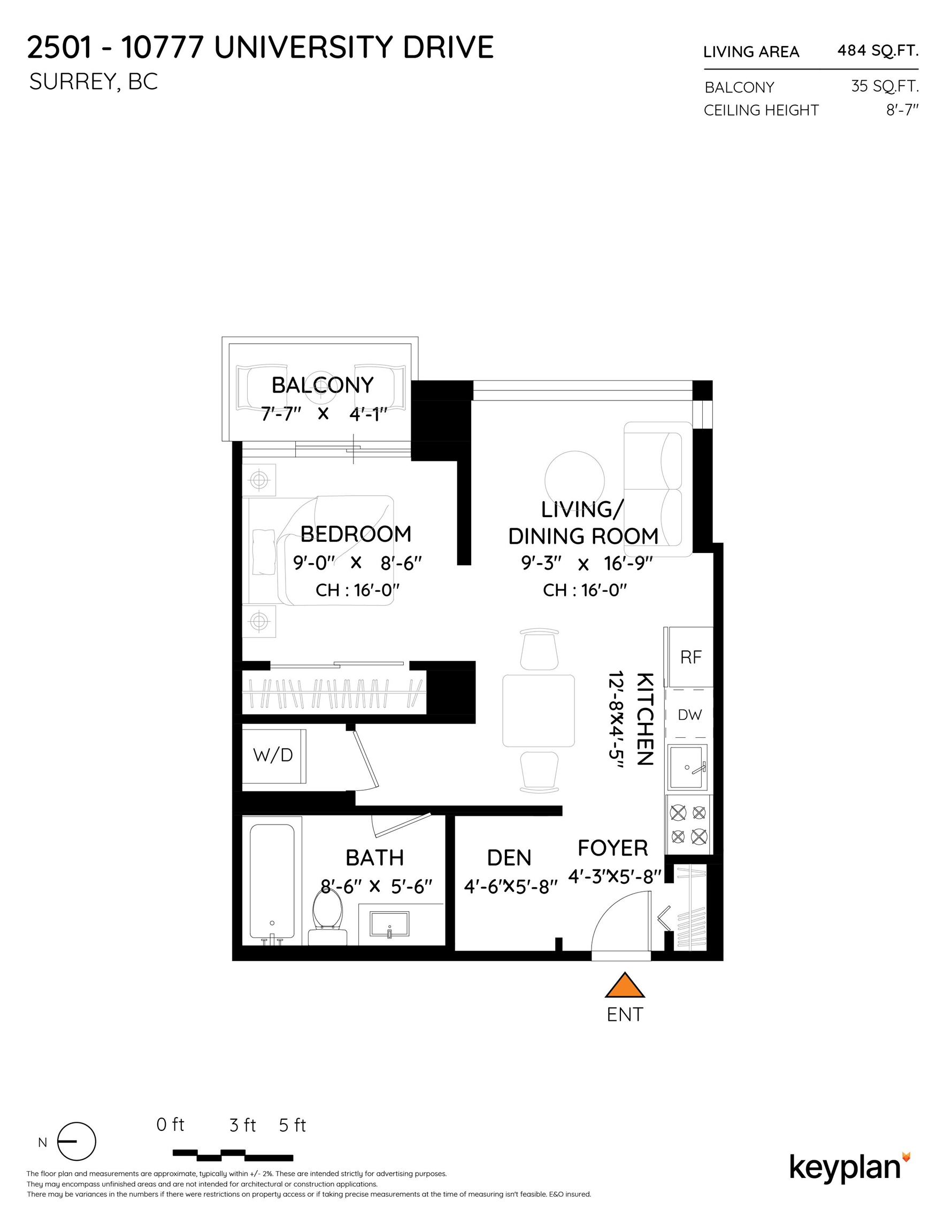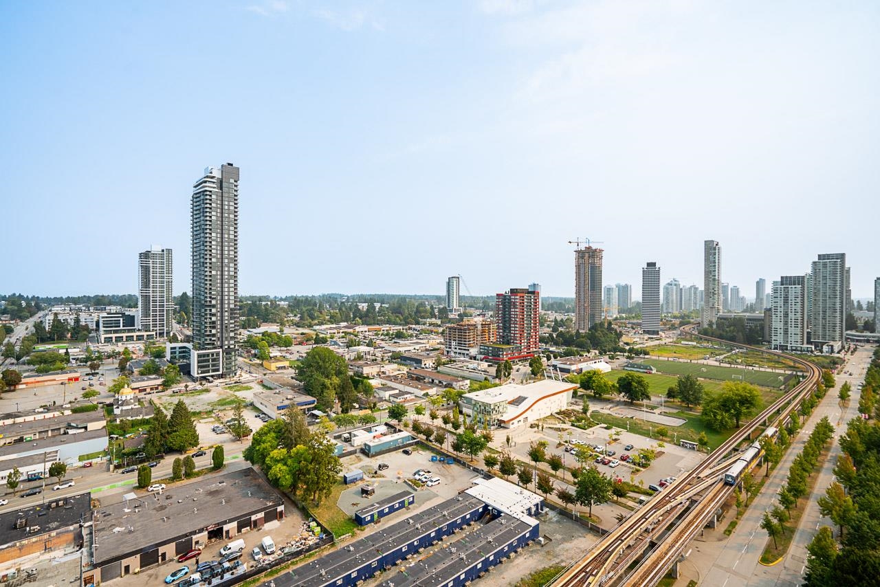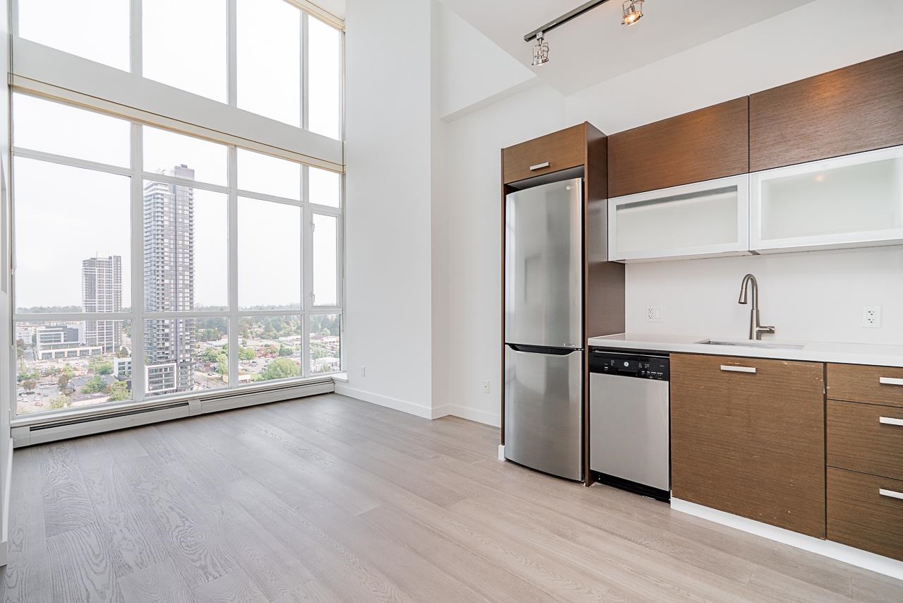 **MASSIVE 16 FT Ceilings, bet you've never seen that before*25th FLOOR EAST FACING PENTHOUSE** Absolutely STUNNING Unobstructed 180° views of the Fraser River, Mount Baker & City VIEWS** NEW paint, fridge, Real Wood floors, baseboards & dishwasher. 1 bedroom + DEN & 1 bathroom. OPEN concept Living/Dining & a good size kitchen with QUARTZ countertops & Stainless Steel Appliances, floor to ceiling windows throughout. Includes 1 SECURED parking stall, In-suite Laundry & storage locker. Directly across the stre...