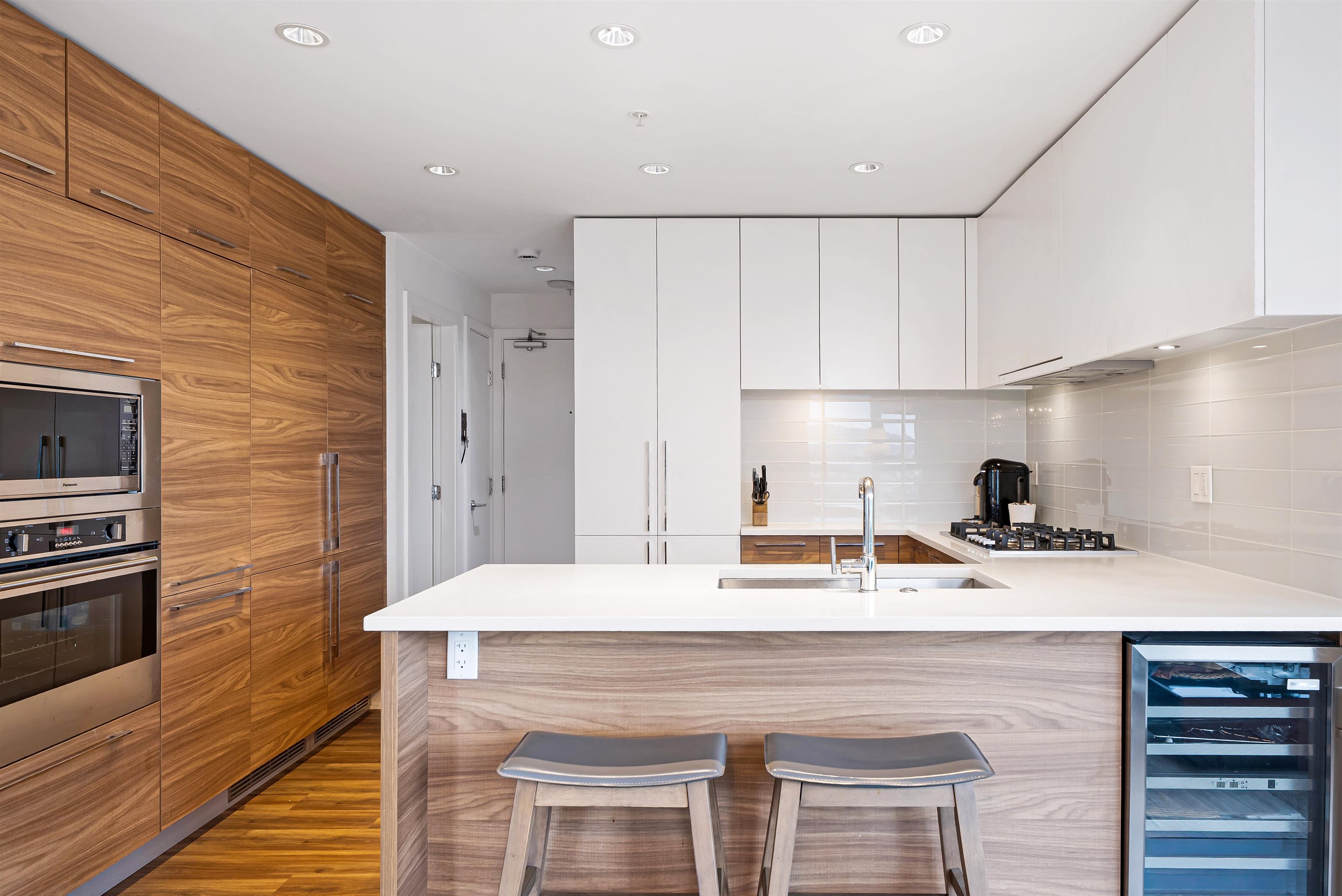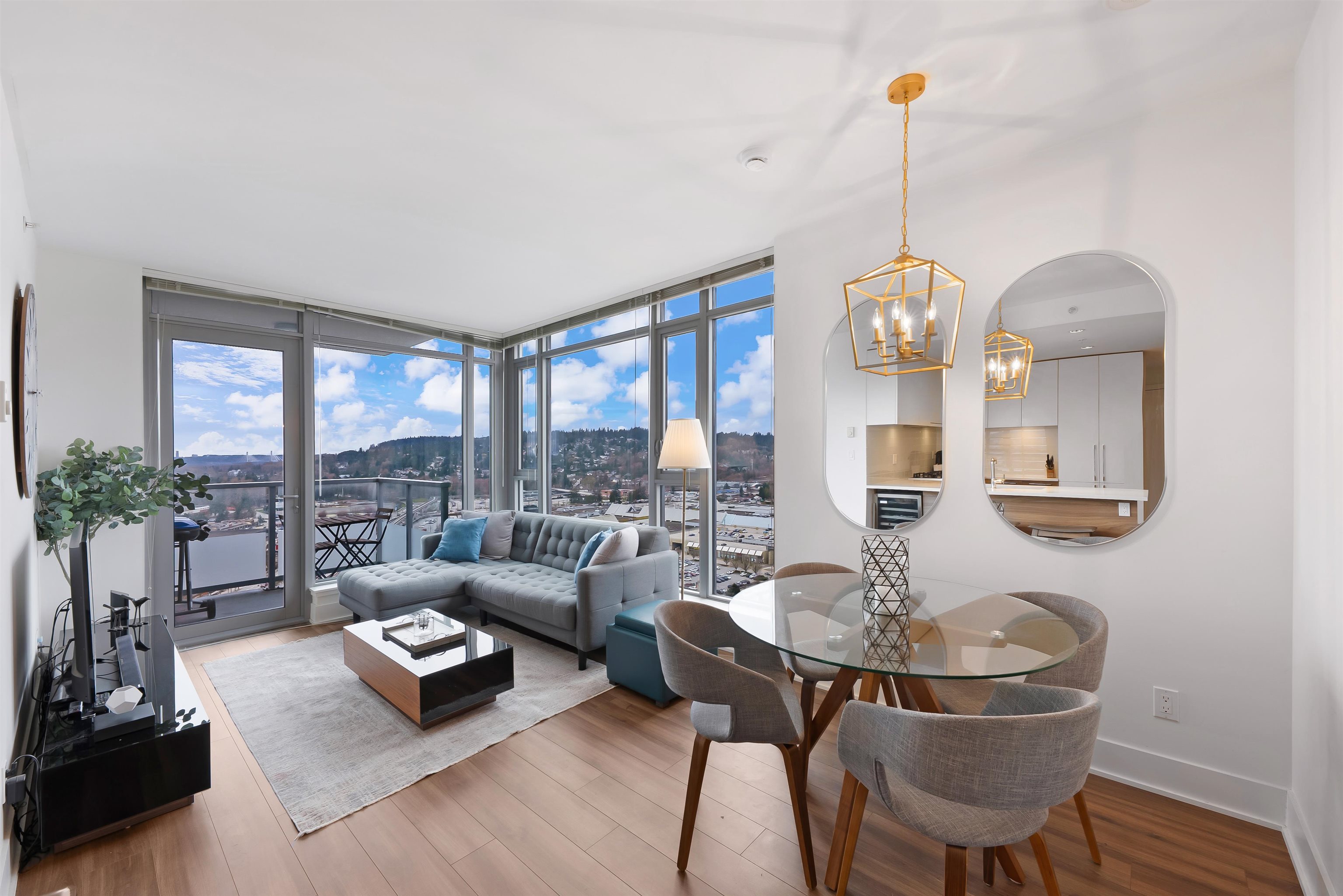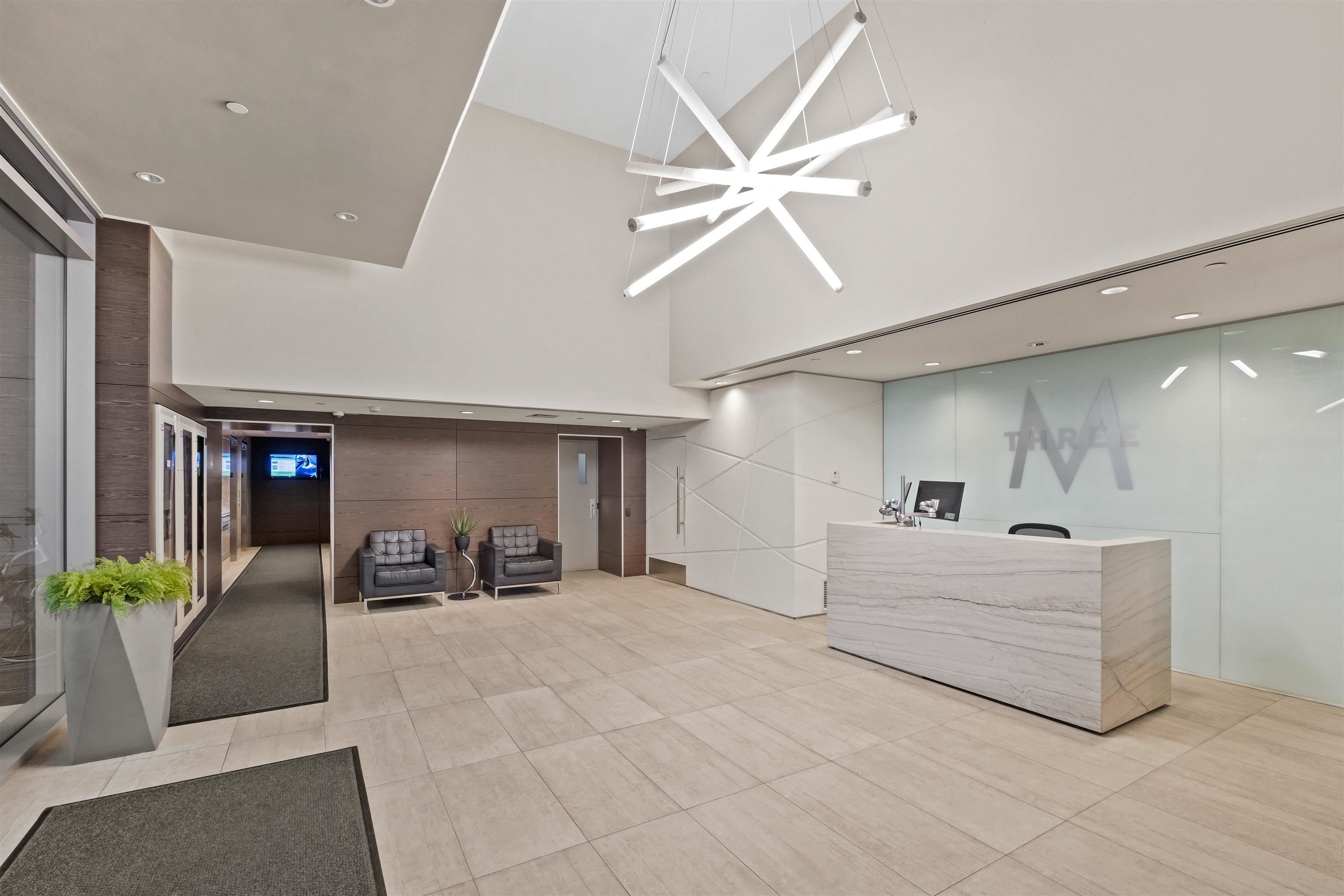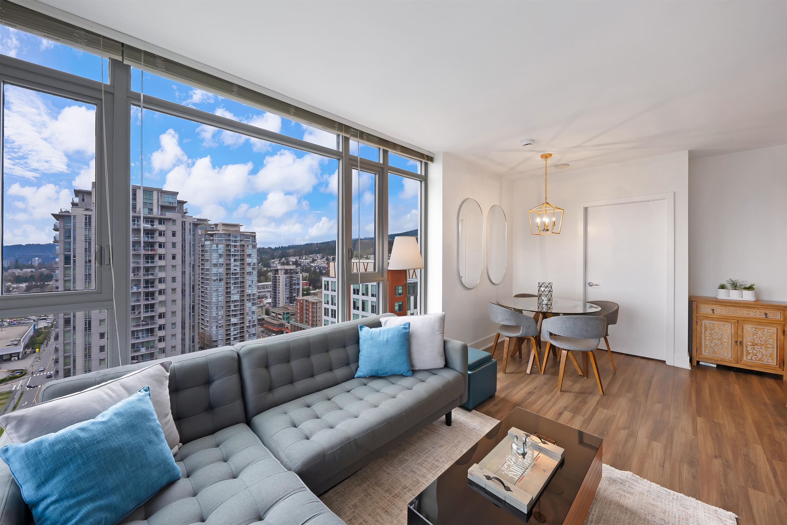 Welcome to iconic MThree, a 48-storey tower in the heart of Coquitlam Center, quality built by Cressey Development. This rarely available ONE BED CORNER home features the famous "Cressey Kitchen" with 48" double fridge, integrated appliances, 5 burner gas range, wine cooler, wide living & dining area next to corner windows, spacious bedroom w/ walk-in-closet, & NuHeat floor in bathroom. Enjoy open SW views of sunset, mountains, & Bridge. Experience luxury amenities in the 2-level SkyLounge on top floors 47...