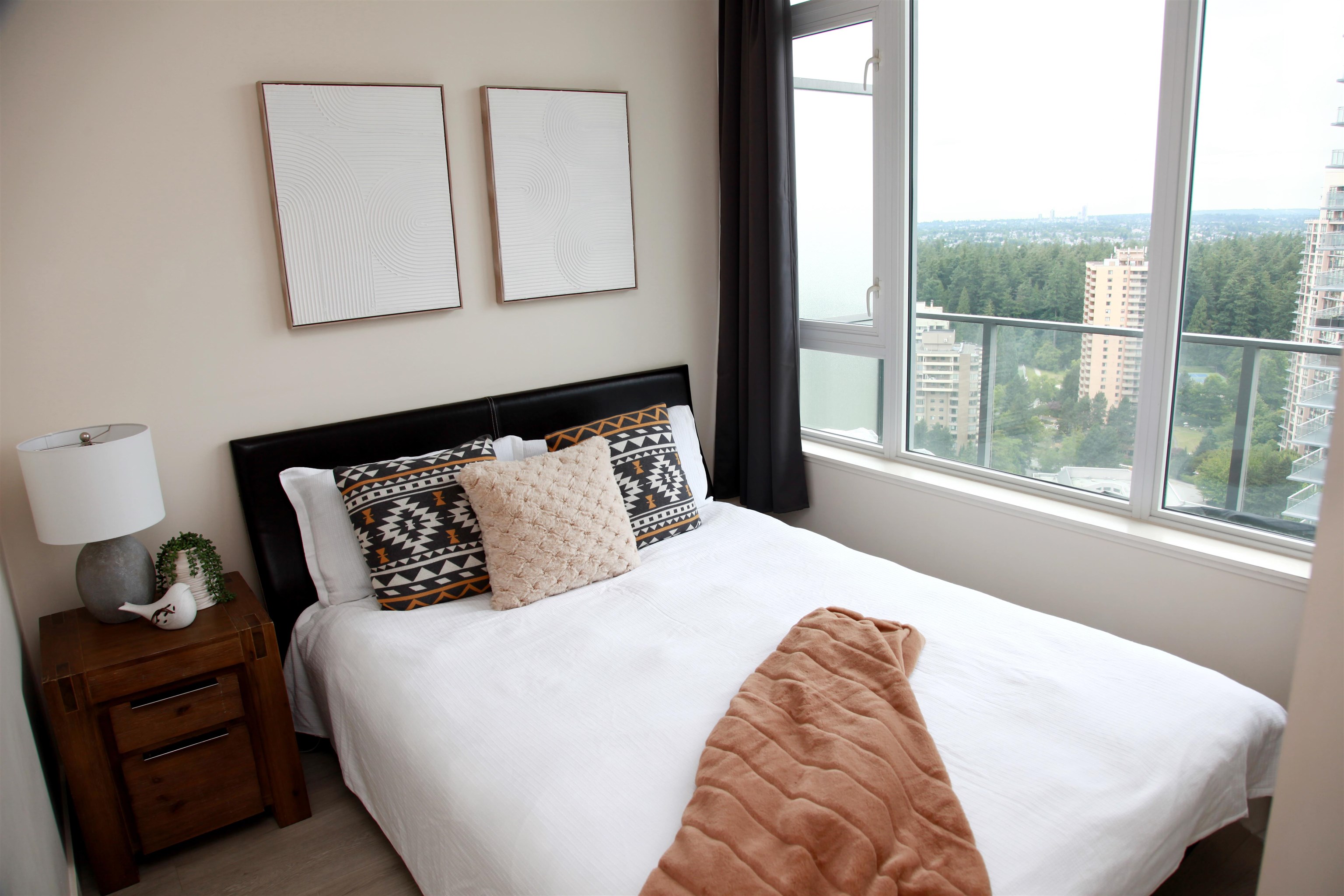 Welcome to Gold House North Tower. This elegant home features close to 10’ ceilings, wide-plank laminate flooring, and a wraparound balcony of almost 350 sq ft with panoramic views of the city and mountains. Thoughtfully designed with opposite-side bedrooms for added privacy, the unit showcases custom Italian Armony Cucine cabinetry with soft-close hardware, premium Bosch appliances, and state-of-the-art central air conditioning and heating. Enjoy over 40,000 sq ft of resort-style amenities including a 24-h...