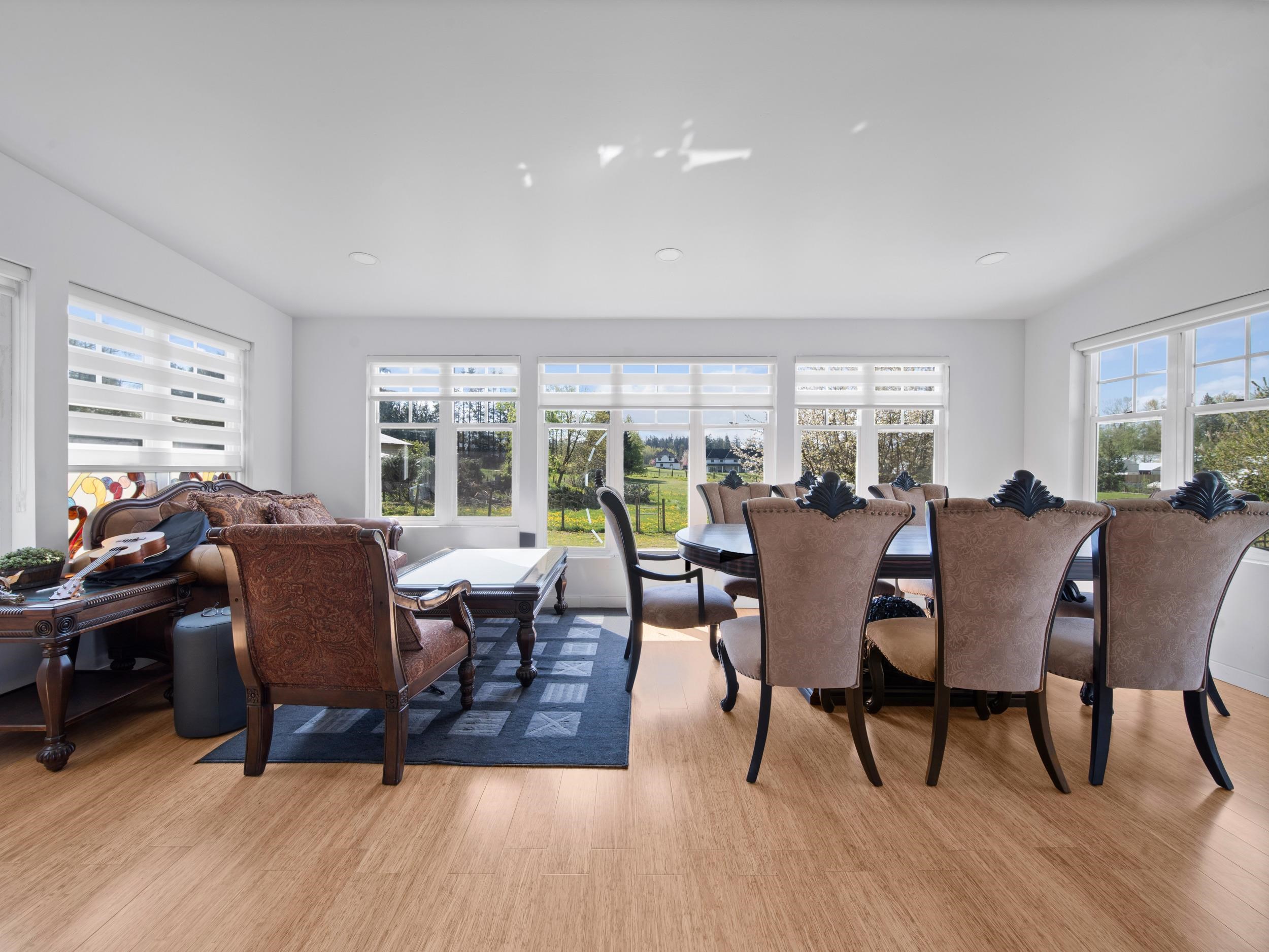 Rarely available 5-acre flat parcel in one of Langley’s premier rural communities. This stunning property features a beautifully updated 6-bed, 4-bath main residence with new hardwood flooring, fresh paint, and a fully upgraded chef’s kitchen. Relax in the reimagined sunroom or on one of three oversized sundecks, all showcasing breathtaking pastoral views. The lower level is perfect for extended family, while a separate 5-bed, 2-bath mobile home offers excellent rental or multigenerational potential. For th...