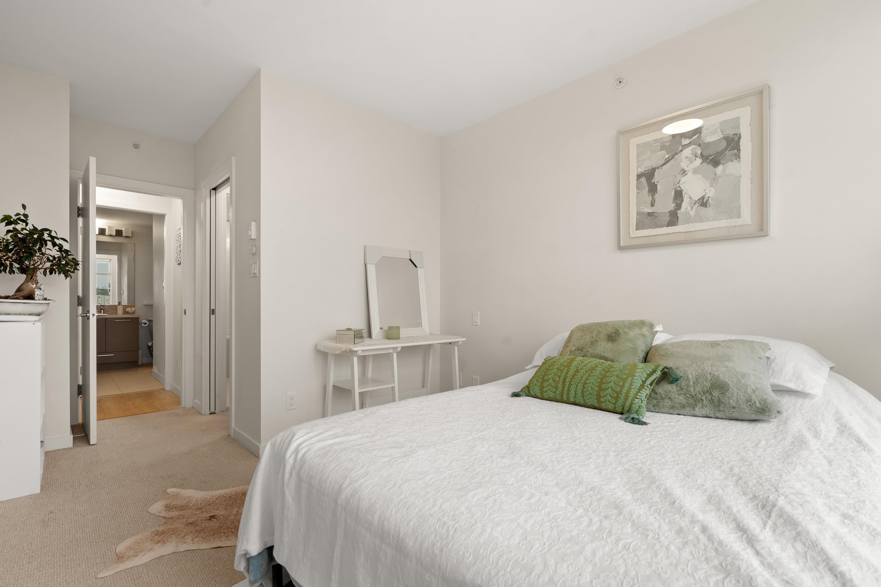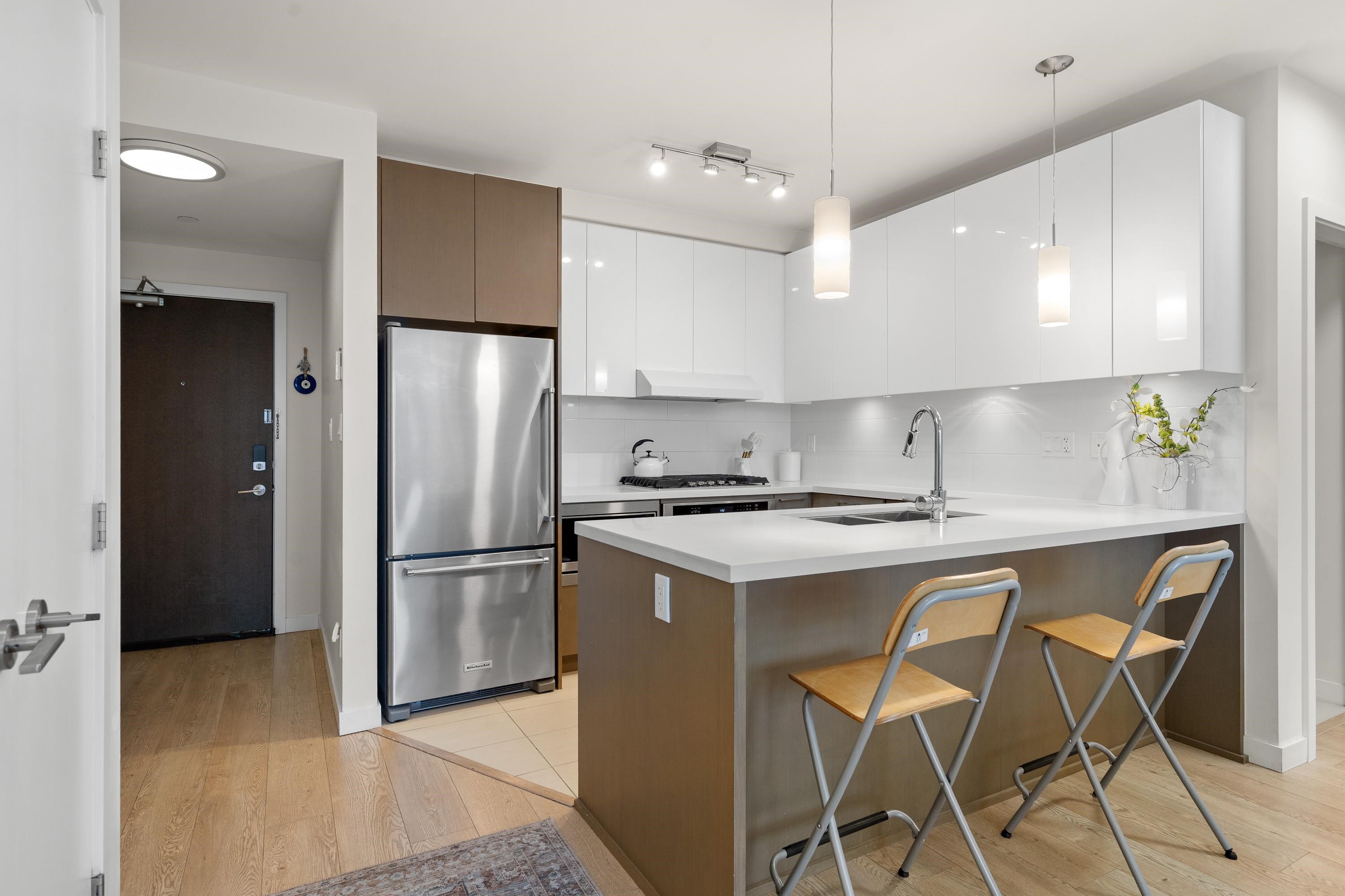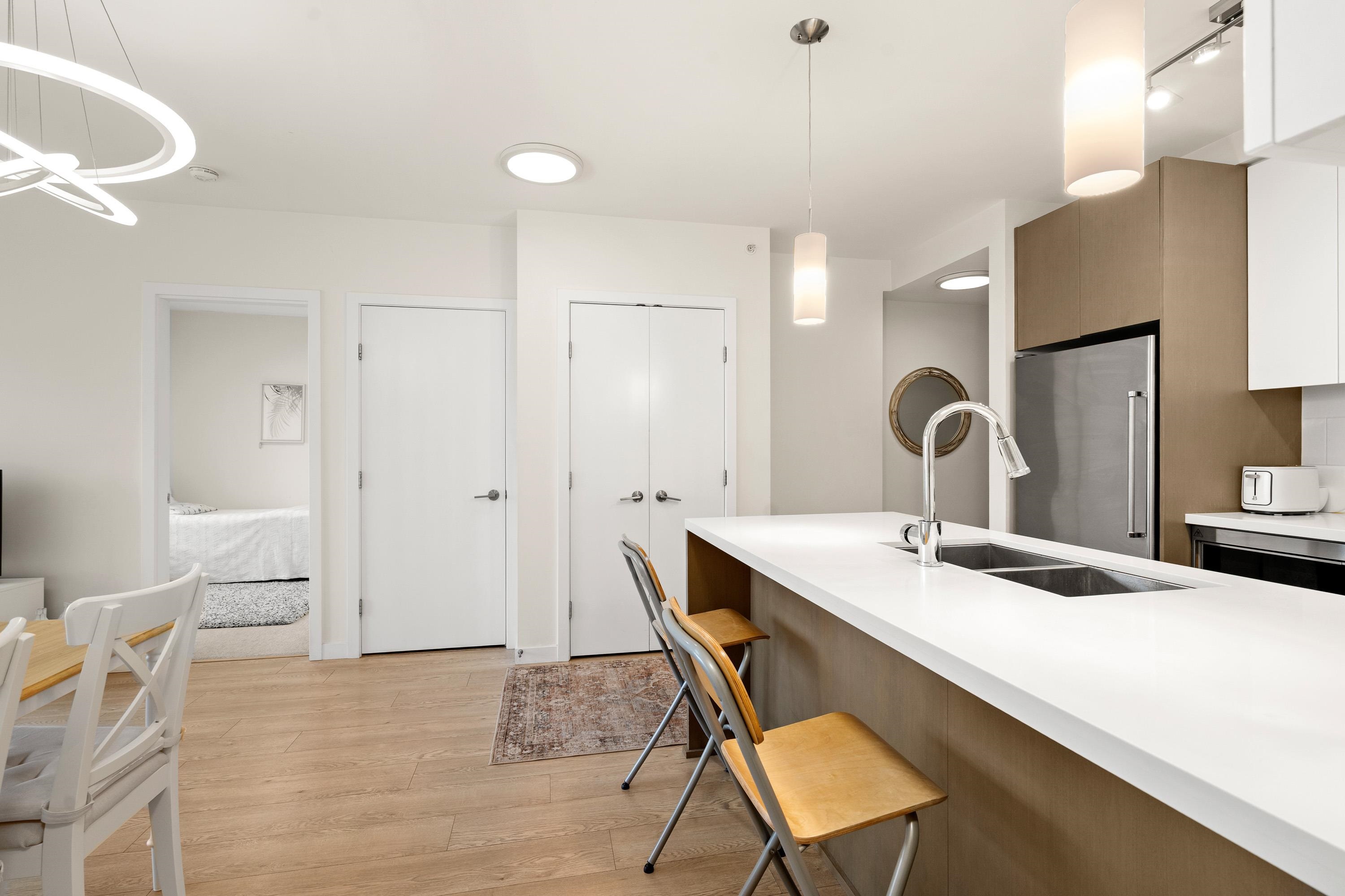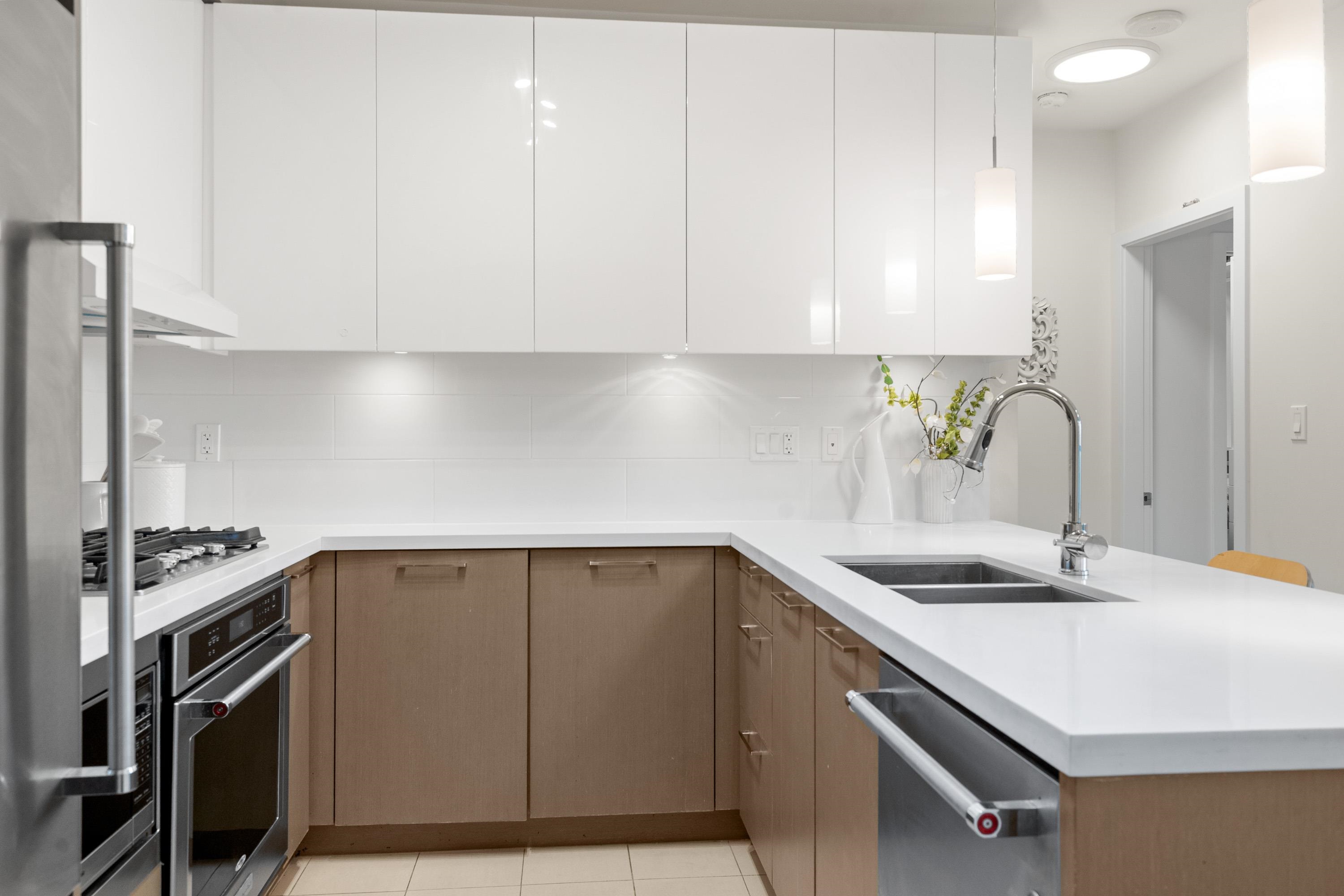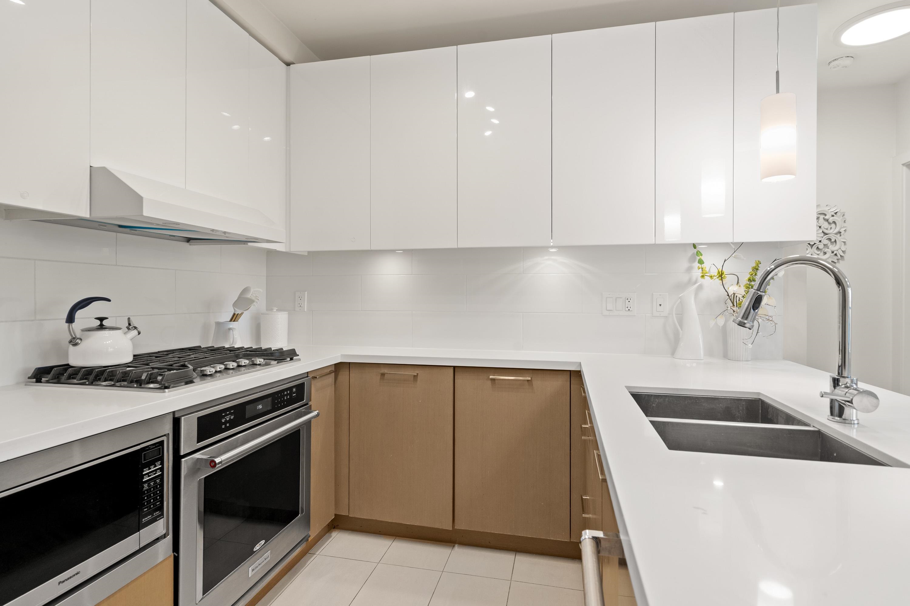 In Coquitlam's most prime location. This 9 year old 848 SF 2 bed + 2 full bath home offers convenience & privacy. The open layout features floor-to-ceiling windows with UNOBSTRUCTED VIEWS of the North Mountains, Glen Park & trees, with no units looking in. Bedrooms are separated on opposite sides for comfort. The modern kitchen boasts S/S appliances, quartz counters, gas cooktop & ample cabinetry. Upgrades incl: Nuheat floors in kitchen/baths, LED lighting & MOTORIZED Hunter Douglas blinds. Building highlig...