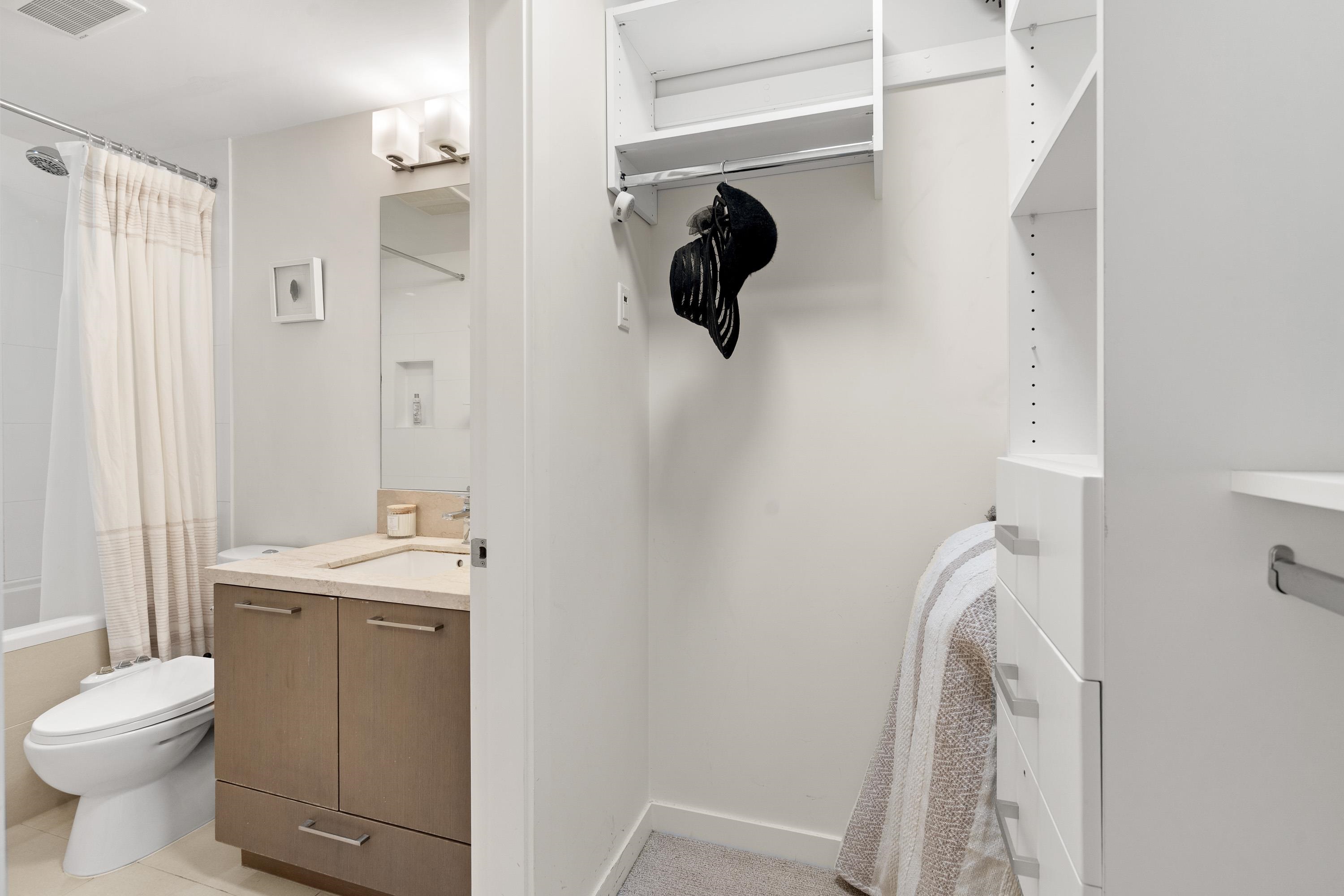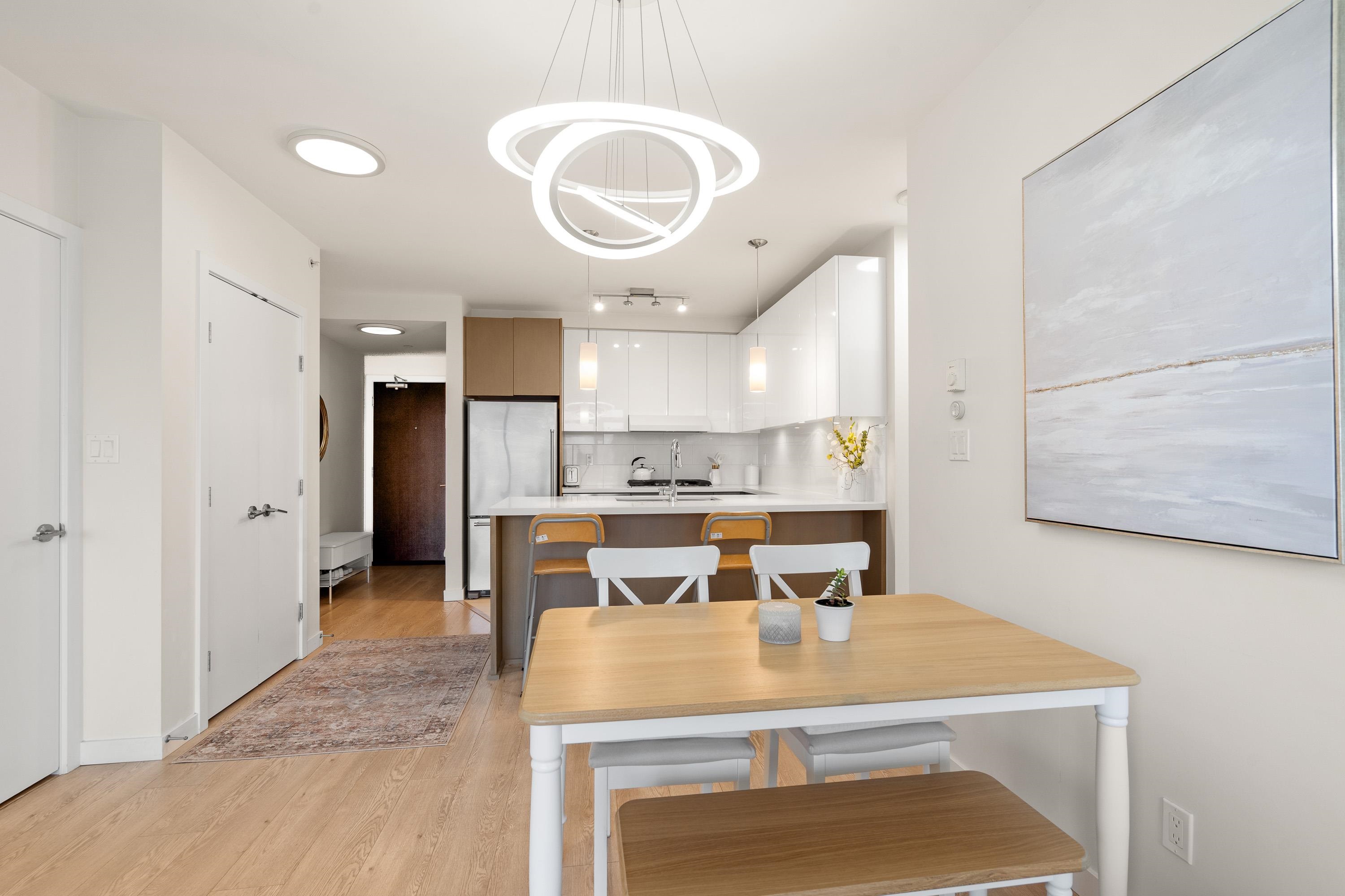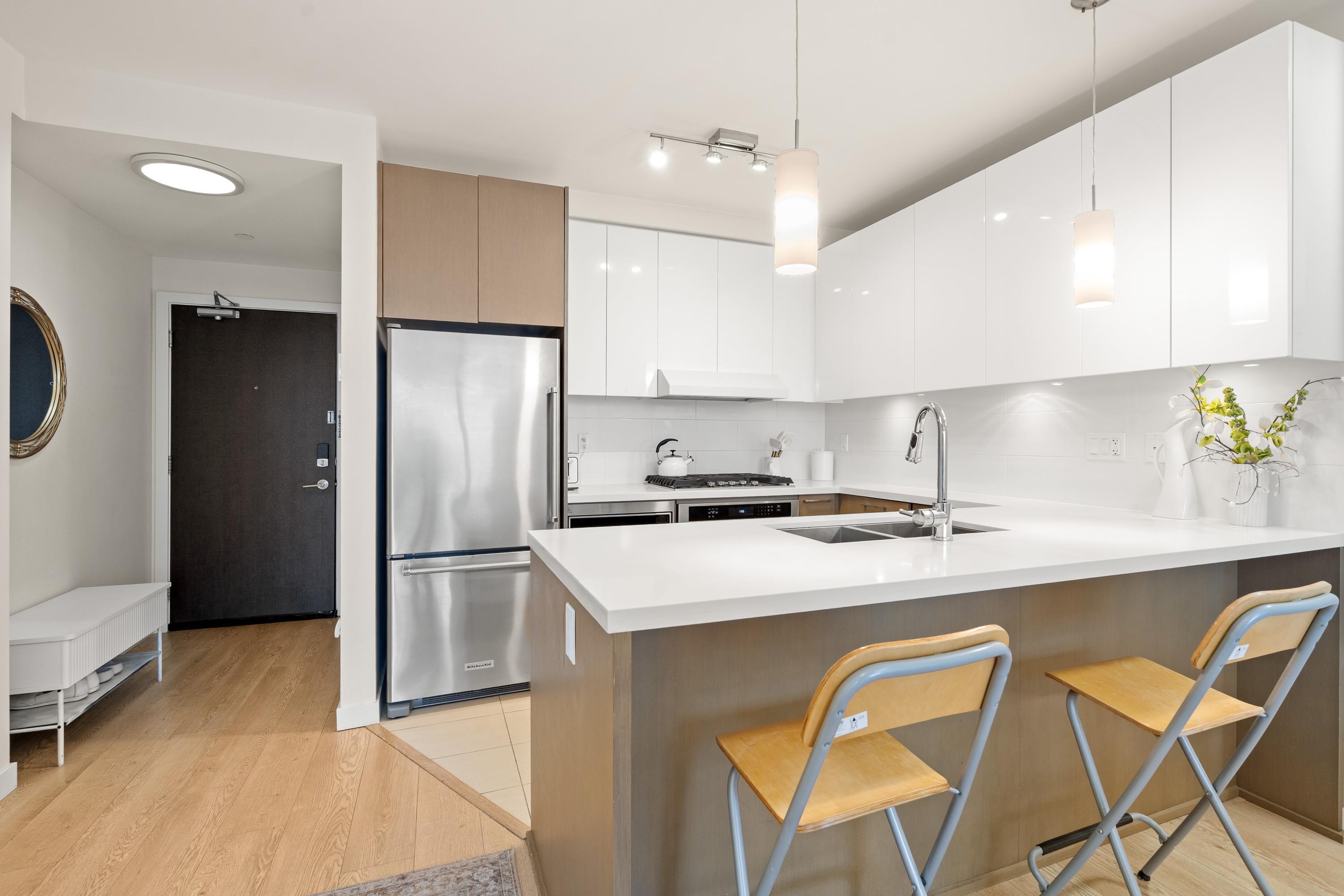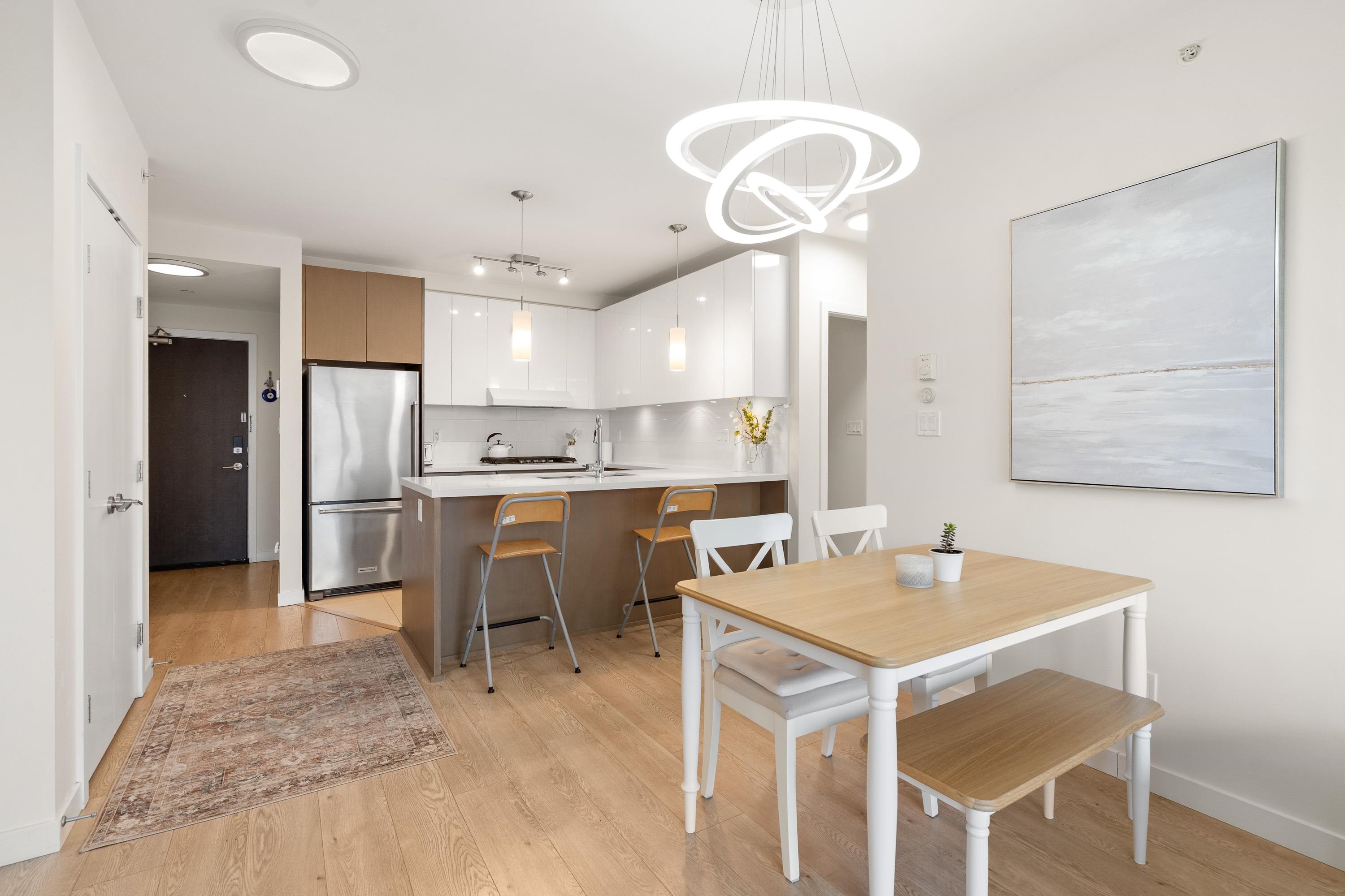 In Coquitlam's most prime location. This 9 year old 848 SF 2 bed + 2 full bath home offers convenience & privacy. The open layout features floor-to-ceiling windows with UNOBSTRUCTED VIEWS of the North Mountains, Glen Park & trees, with no units looking in. Bedrooms are separated on opposite sides for comfort. The modern kitchen boasts S/S appliances, quartz counters, gas cooktop & ample cabinetry. Upgrades incl: Nuheat floors in kitchen/baths, LED lighting & MOTORIZED Hunter Douglas blinds. Building highlig...