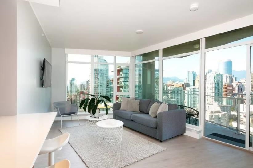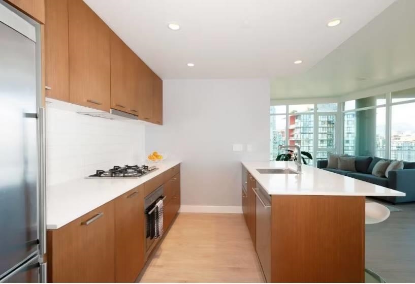A very open & functional floorplan with Laminate Flooring throughout, 9' Ceilings, tons of Natural Light, great Kitchen including High end appliances and Living room for entertaining family and friends, 1 large bedroom + Flex space for an office or extra storage and a Full bathrooms, Front Load Washer/Dryer. Including access to all world class amenities including an Outdoor Pool & Hot tub, Steam and Sauna, Fitness Center, 24/7 Concierge and much more. Enjoy stunning ocean views of English Bay and Granville ...