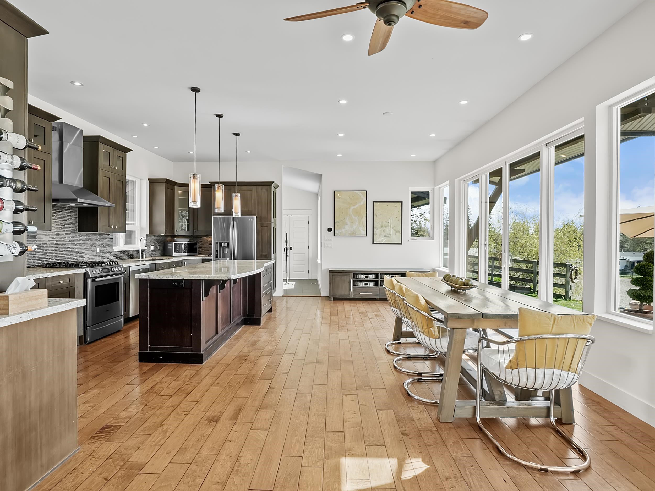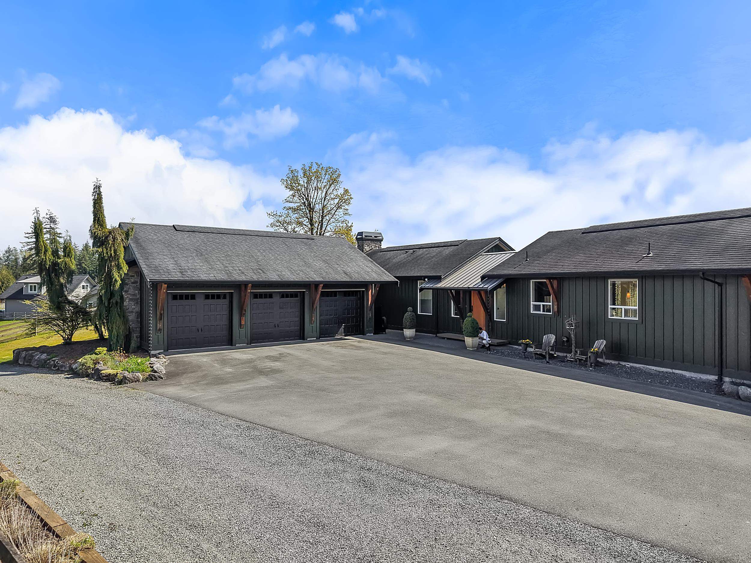 Country luxury meets versatility in this stunning 4-bed/4 bath rancher, ideal for multi-family on 4.87 acres in a cul-de-sac of Executive homes. The gourmet kitchen with gas stove and breakfast bar opens to bright, open-concept living. Features include 3 ensuites, walk-in closets, private den, rich wood & tile floors, A/C, gas BBQ hookup, generator Freshly painted (2024/2025). Enjoy a triple garage, south-facing patio & 32x28 SHOP (200 amp, 11’ ceilings). A separate 2-bed unauth suite adds flexibility. Comp...