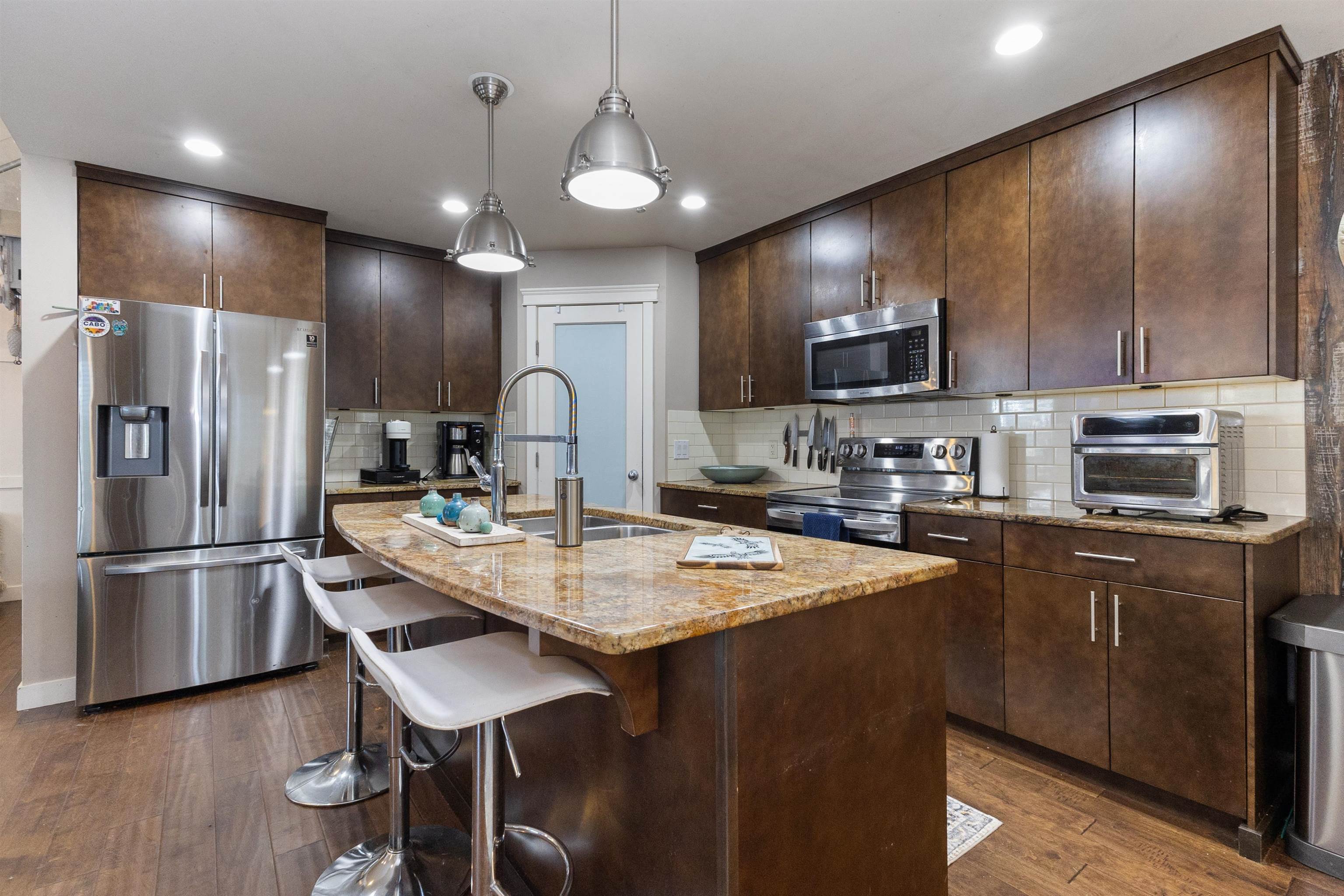 Stunning family home on a spacious corner lot in Aberdeen! Home features 7 bedrooms + den and 5 baths, primary suite on main floor, and a 2-car garage plus additional parking for up to 8 cars unobstructed (13 possible). Enjoy gated RV parking, covered carport, and an EV charging plug. The low-maintenance yard features outdoor dining and kitchen area, perfect for entertaining. Downstairs features 1 bedroom + den and summer kitchen with a separate entrance. Just a block from Aldergrove and close to parks and ...