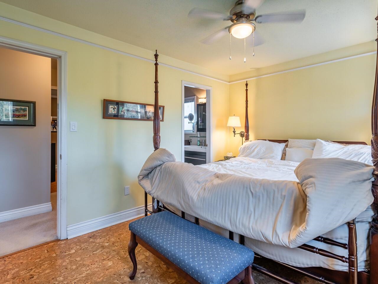 Desirable air conditioned family home backing onto a greenbelt in West Abbotsford must be seen to appreciate. Upstairs boasts entertainment sized living rm w/vaulted ceiling & gas fireplace, dining rm with attractive wainscoting and hardwood floors, updated kitchen with gas stove and door to large enclosed deck, and 2 baths and 3 bdrms including spacious primary bdrm w/3 pce ensuite. Lower level offers attractive mill work, bdrm with cork floors open to sitting area, rec rm could easily accommodate a suite ...