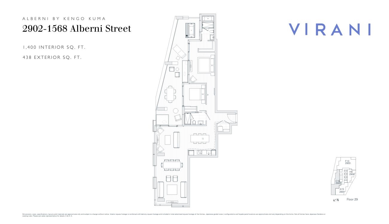 Elevated design meets refined living at Alberni by Kengo Kuma. Designed by internationally acclaimed architect Kengo Kuma and developed by Westbank, this 2 Bed, 2 Bath residence offers 1400 Sq. Ft. of indoor space with a beautifully appointed 438 Sq. Ft. Japanese inspired outdoor oasis complete with soaker tub. A high-end Miele appliance package pairs with carefully curated Japanese design features and expansive floor-to-ceiling windows, showcasing views of the ocean, mountains, and city skyline. Residents ...