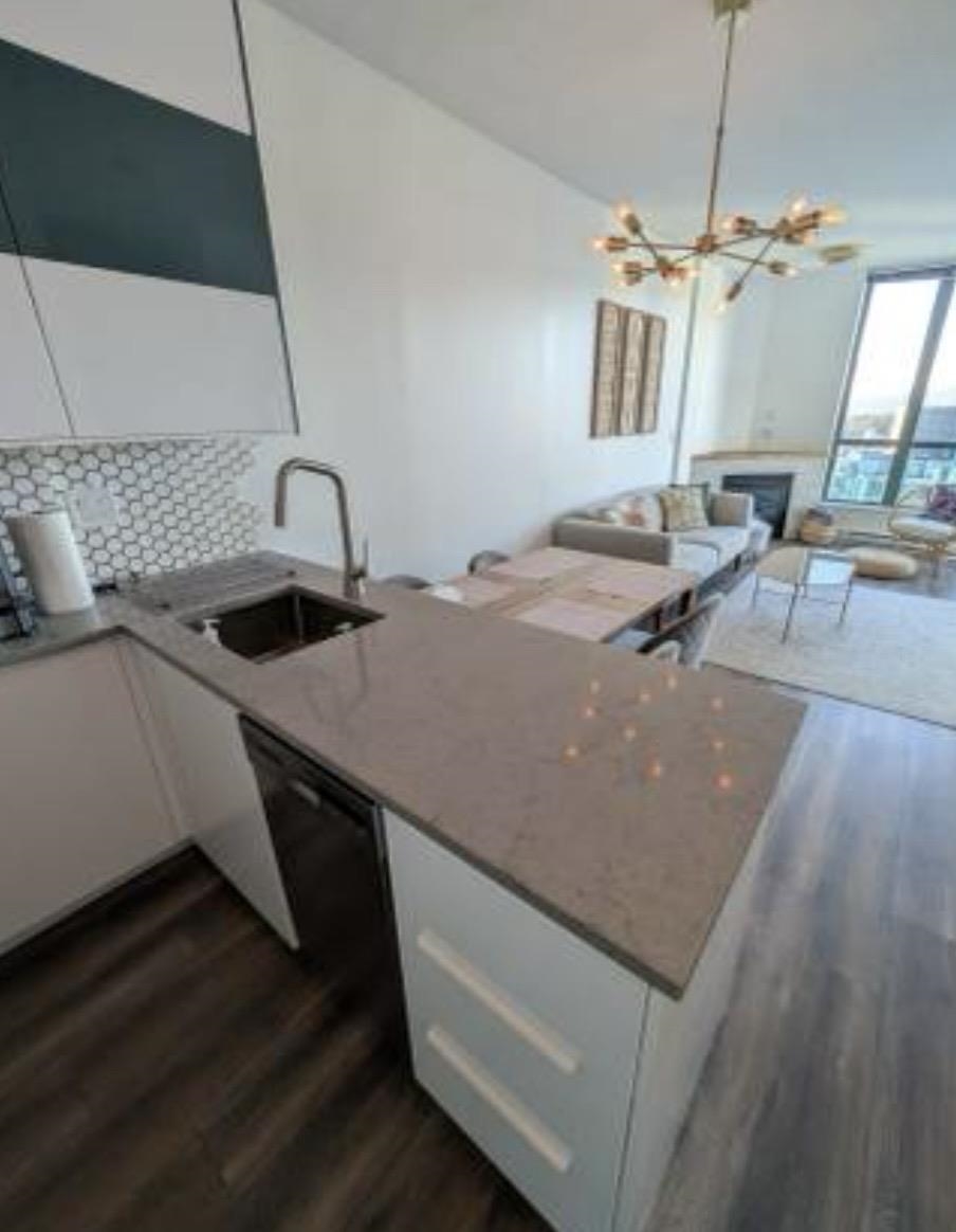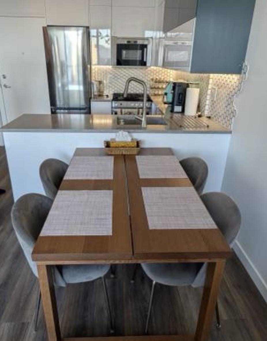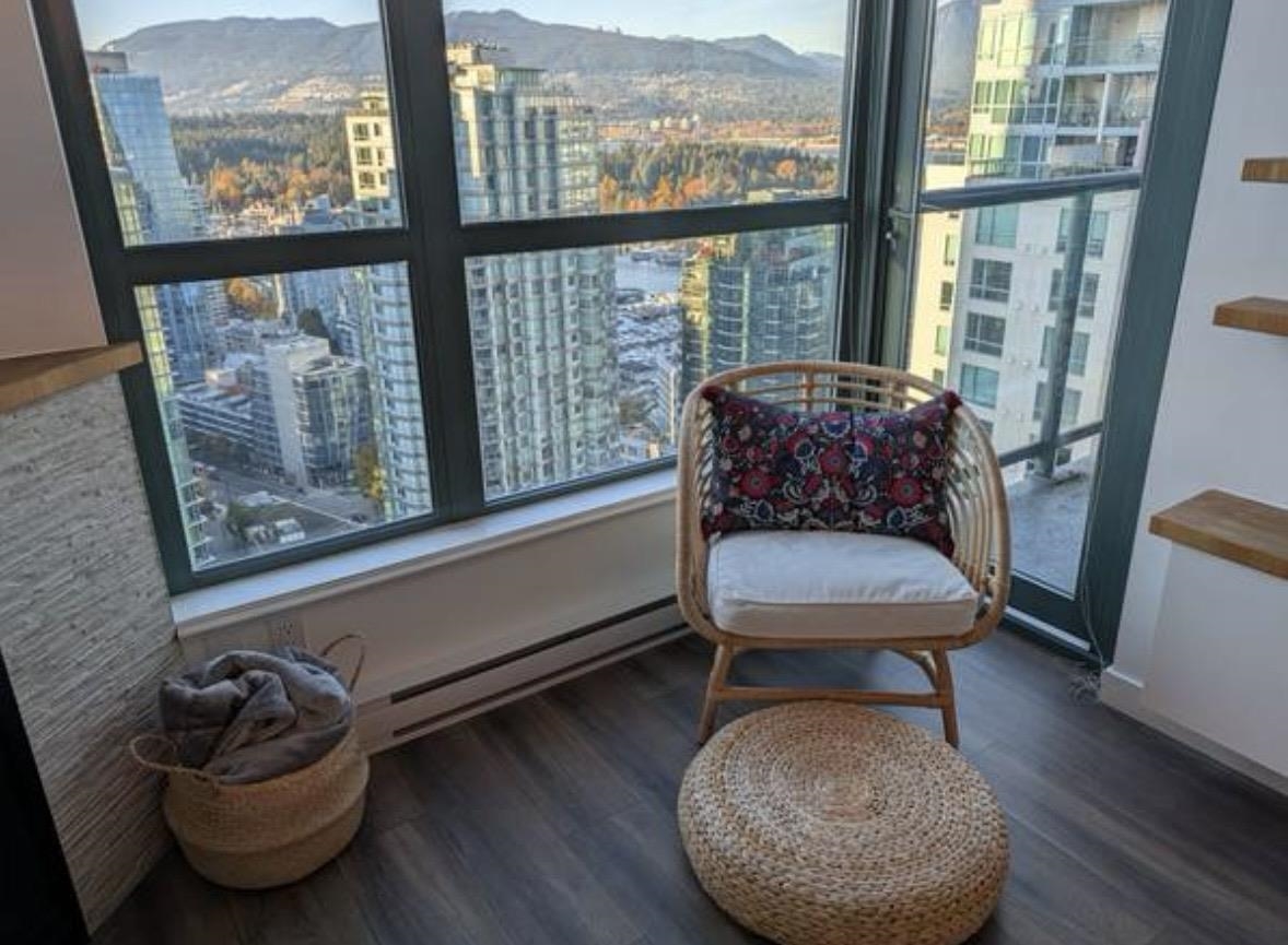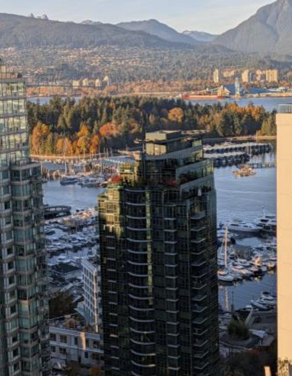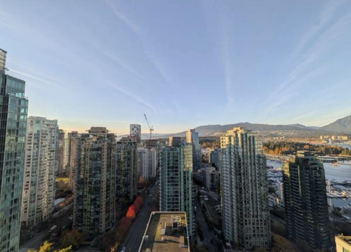 Luxury fully furnished 1 bedroom + den residence in prestigious Coal Harbour with sweeping water, mountain and city views from the 29th floor. This approx. 550 sq ft home features laminate flooring, a cozy gas fireplace, and a modern kitchen with stainless steel appliances including a Bosch dishwasher, five-burner gas range, and integrated microwave. Functional flex space ideal for home office or study. Well-maintained building offering concierge service, indoor pool, gym, sauna, and secure access. One park...