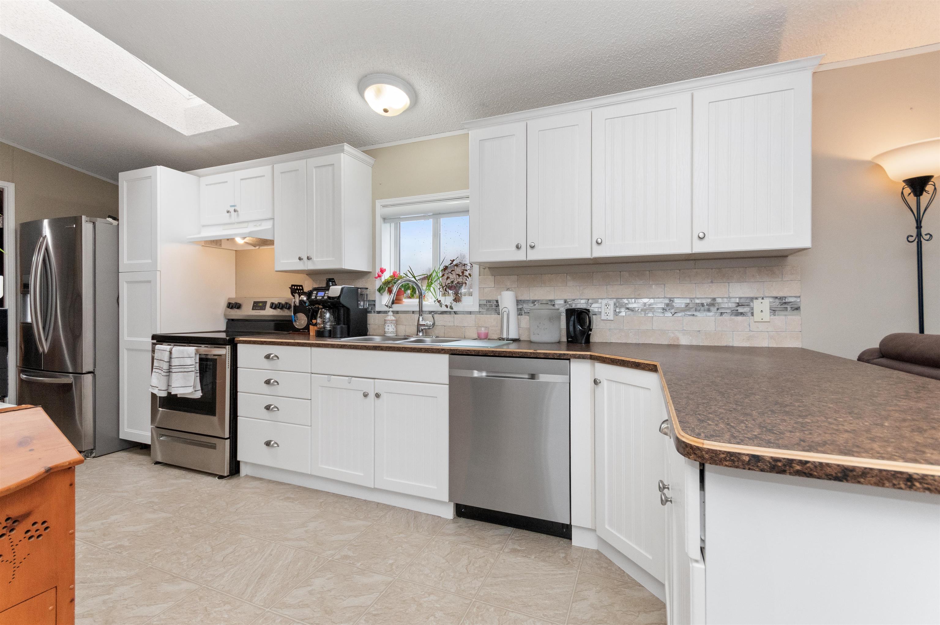 Well maintained and thoughtfully laid out 2 bedroom, 2 full bathroom home in the desirable 55+ Windmill Mobile Home Park. This bright and spacious unit offers vaulted ceilings, generous room sizes, and a comfortable open living area with tasteful finishes throughout. Enjoy outdoor living with a huge backyard, large 10 x 20 sundeck, plus added value with an 8 x 8 storage shed and a 12 x 12 metal gazebo. The oversized pad provides two ample parking spaces. Features include newer appliances and a Champion 10,0...