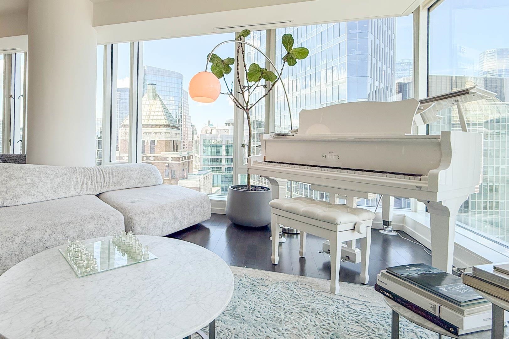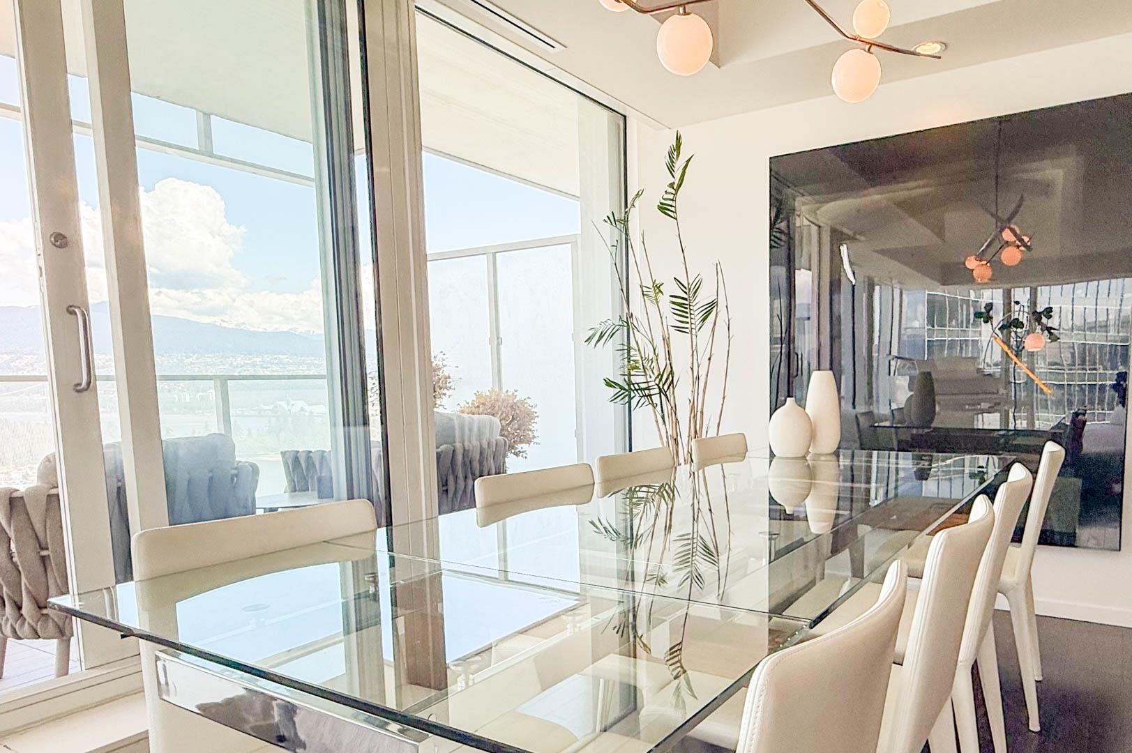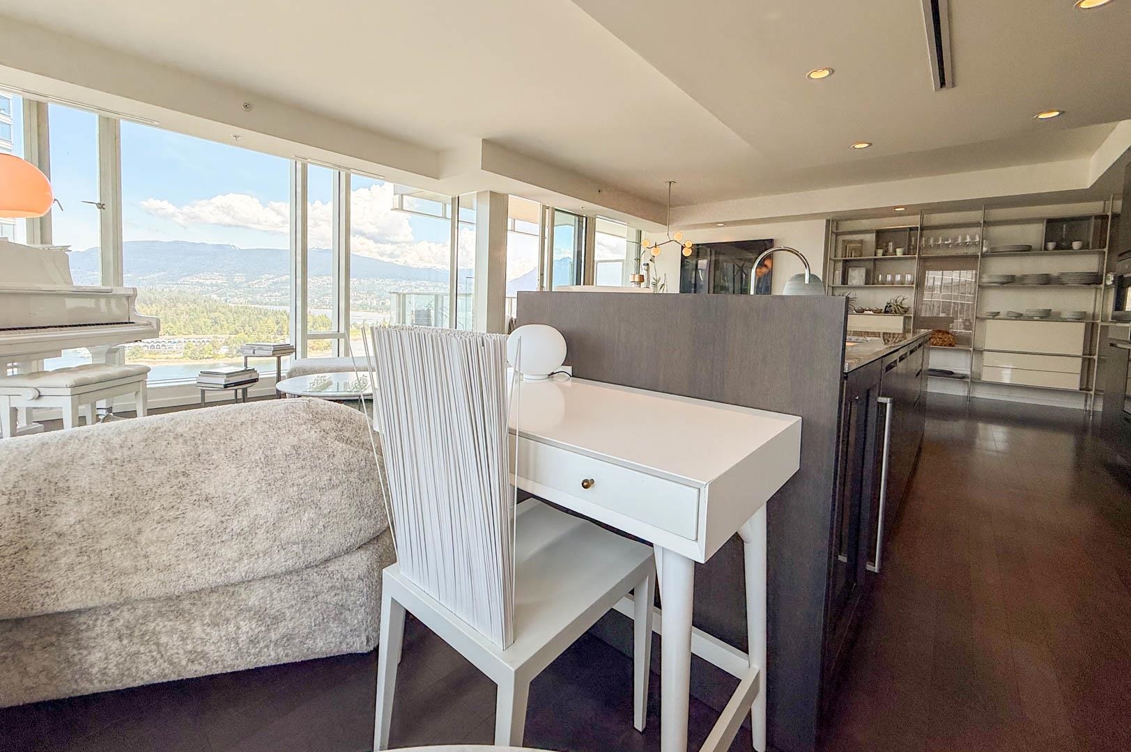 MIN. 6 MONTH TERM - FURNISHED 2 bdrm and den, 2.5 bath condo at the Fairmont Pacific Rim offers 1,800 sq ft of luxury living with unobstructed views of Coal Harbour, North Shore mountains, and Lions Gate Bridge. Kitchen features all s/s Miele appliances, gas cooktop, warming oven, built-in cappuccino maker, and sleek white cabinetry. Open-concept living/dining area includes a Seiler piano, glass dining table with seating for 8. Private terrace with plush outdoor seating. King bed master with spa-like ensuit...