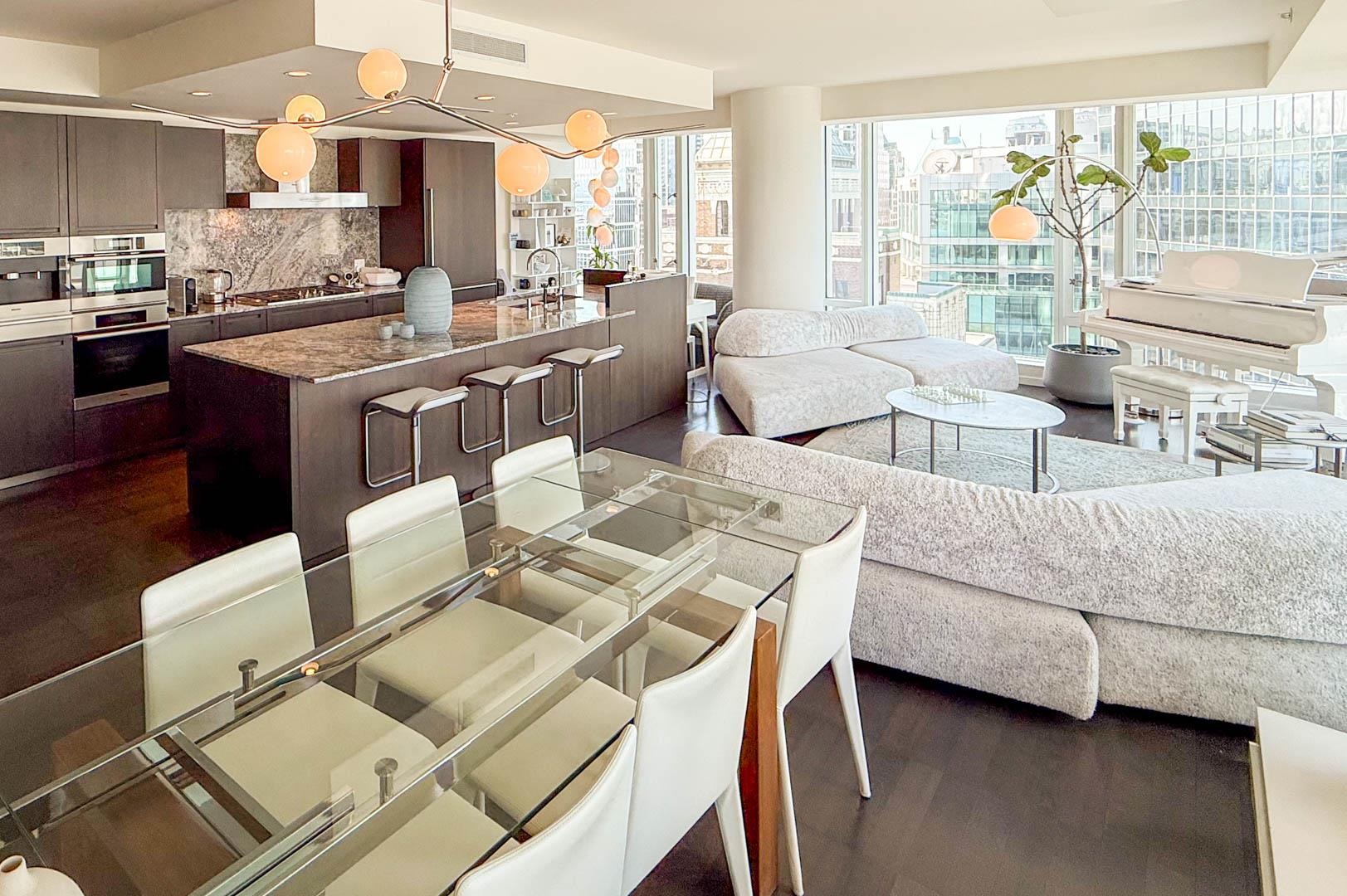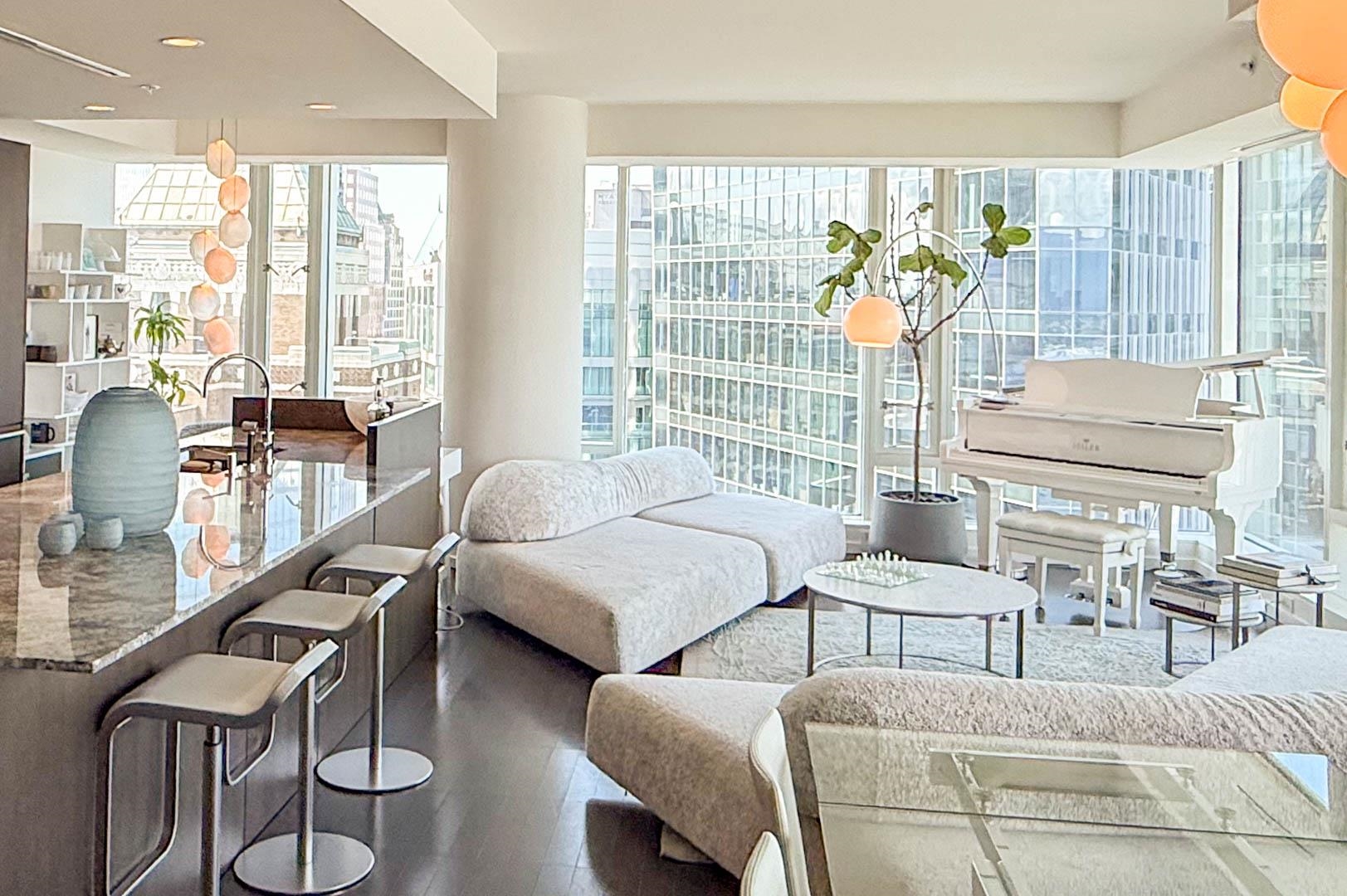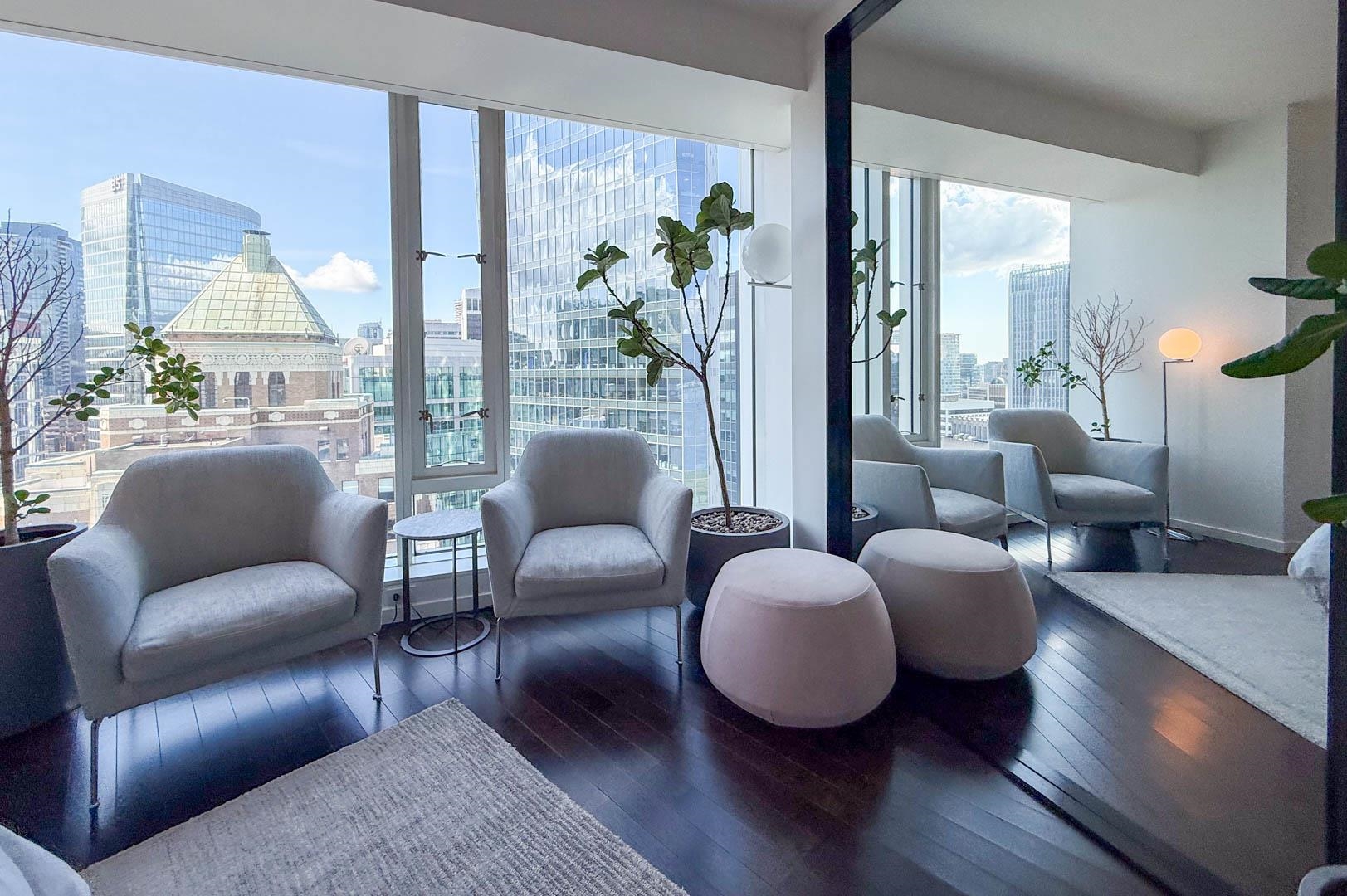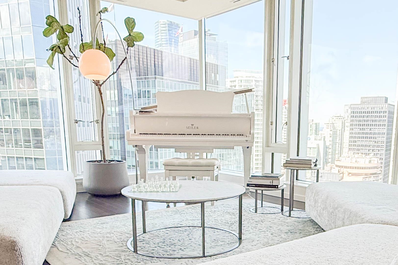 MIN. 6 MONTH TERM - FURNISHED 2 bdrm and den, 2.5 bath condo at the Fairmont Pacific Rim offers 1,800 sq ft of luxury living with unobstructed views of Coal Harbour, North Shore mountains, and Lions Gate Bridge. Kitchen features all s/s Miele appliances, gas cooktop, warming oven, built-in cappuccino maker, and sleek white cabinetry. Open-concept living/dining area includes a Seiler piano, glass dining table with seating for 8. Private terrace with plush outdoor seating. King bed master with spa-like ensuit...