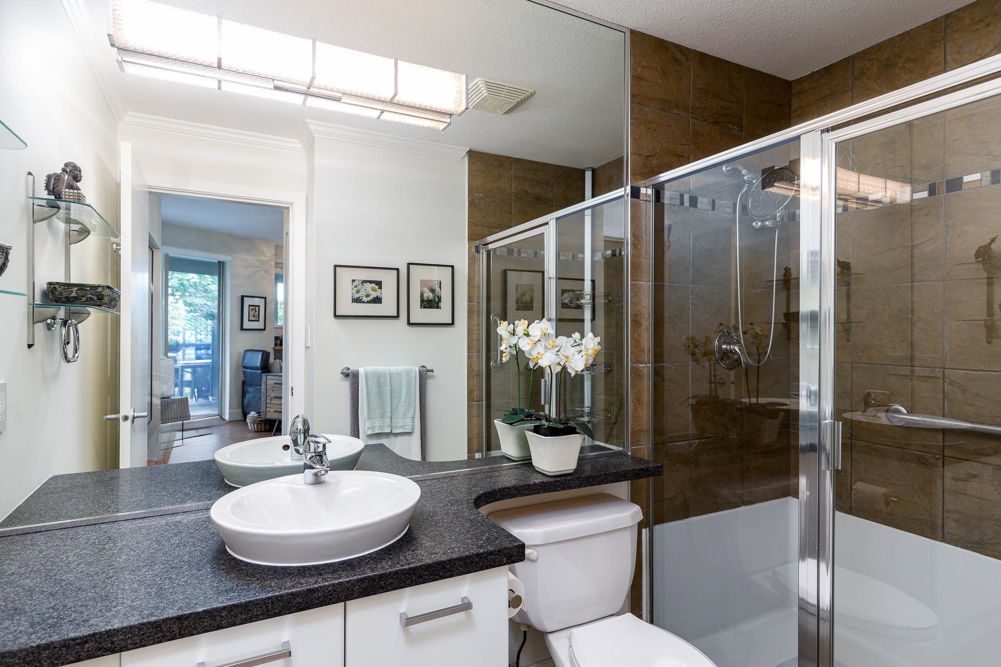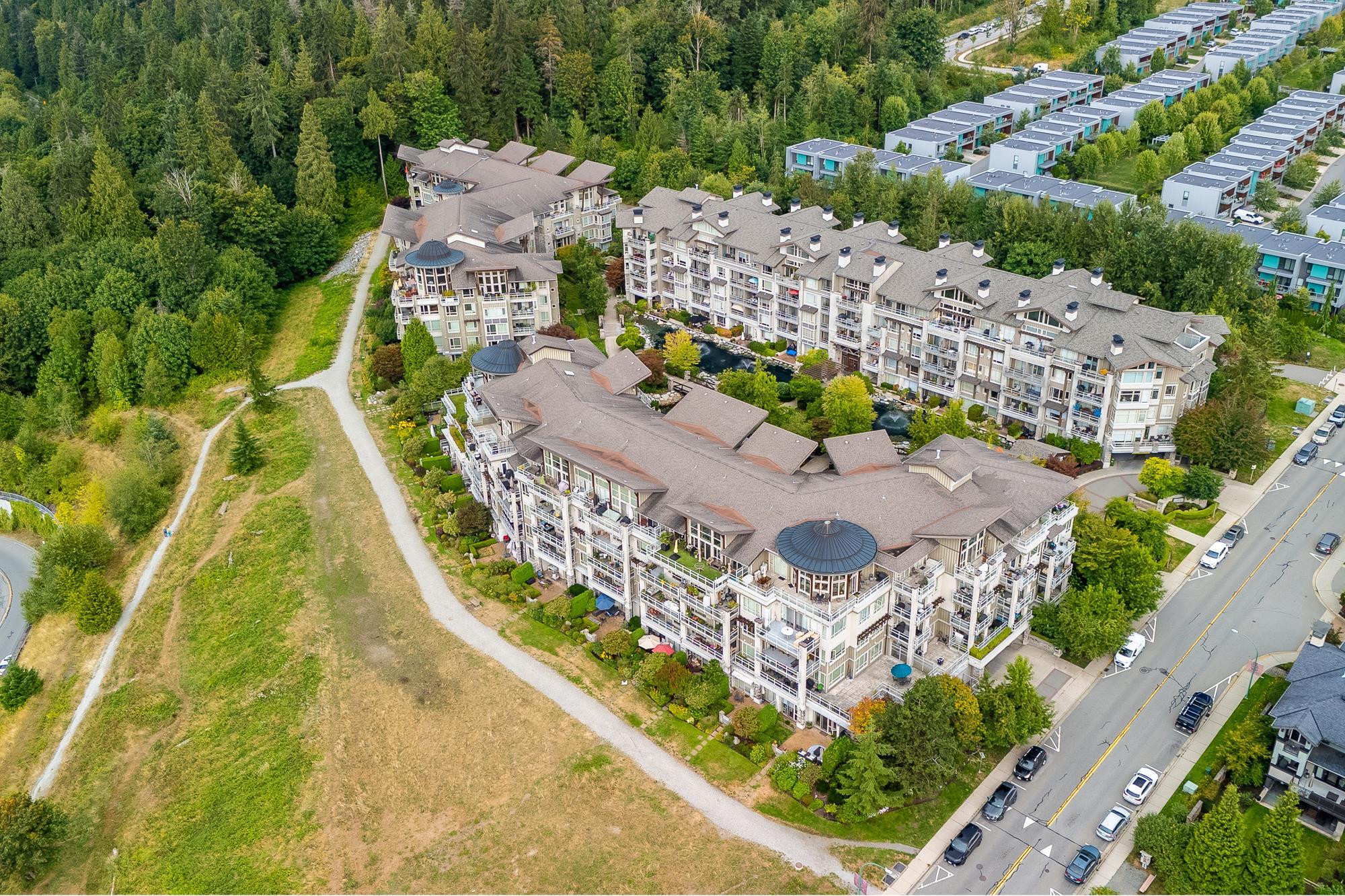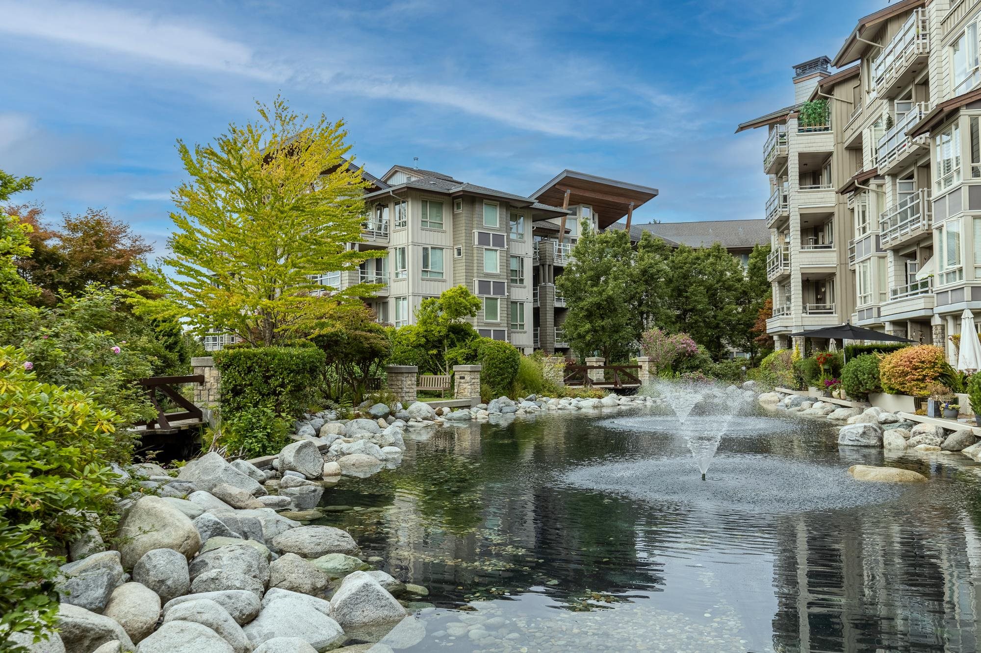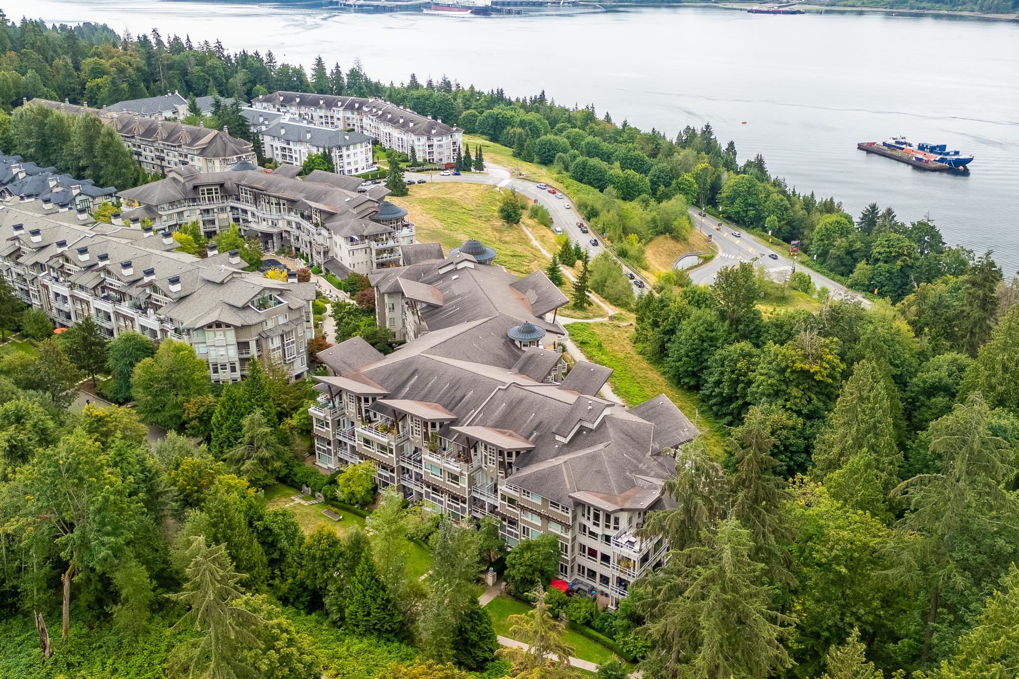 Exceptional RARELY AVAIL END UNIT showcasing breathtaking water/forest views! Bright and private. Open floor plan features 2 bedrooms on opposite sides for optimal privacy, plus a den perfectly situated to capture the scenery, ideal for a home office. The modern kitchen with a centre island makes entertaining easy, keeping connected with family/guests. 2 spa-inspired bathrooms include a large walk-in shower in second and a luxurious ensuite in the primary suite. Quality upgrades throughout, inc. blackout So...