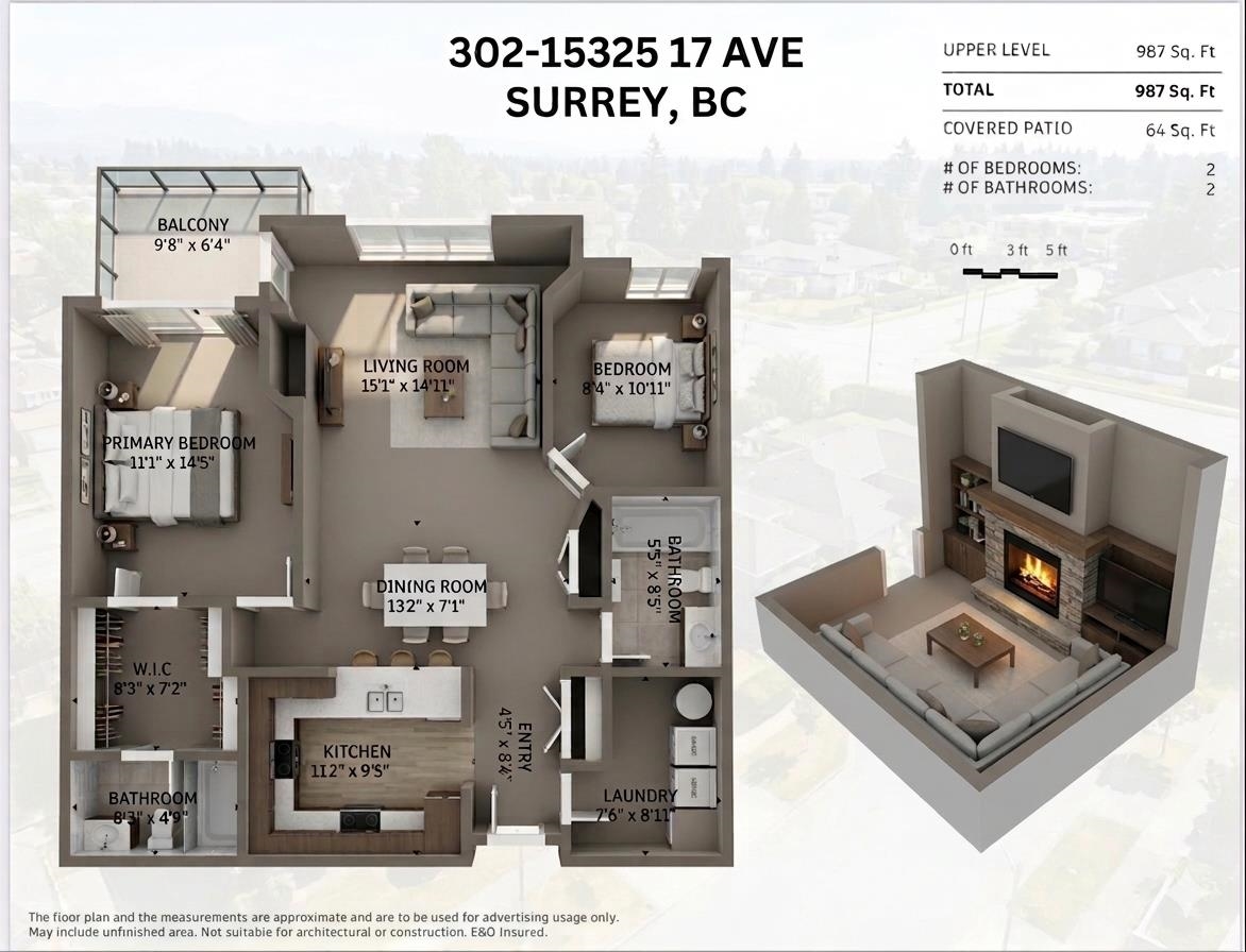Bright and spacious 2-bedroom, 2-bathroom home offering a functional layout with bedrooms are separated by living room for added privacy. Tucked away on the quiet side of the building, enjoy serene views of lush landscaping from your oversized windows. Perfect for downsizers or someone looking for a well-maintained unit to move right in! Highlights include a large laundry room with bonus storage, a generous primary bedroom with massive walk-in closet & private ensuite, soft cork flooring, cozy gas fireplace...