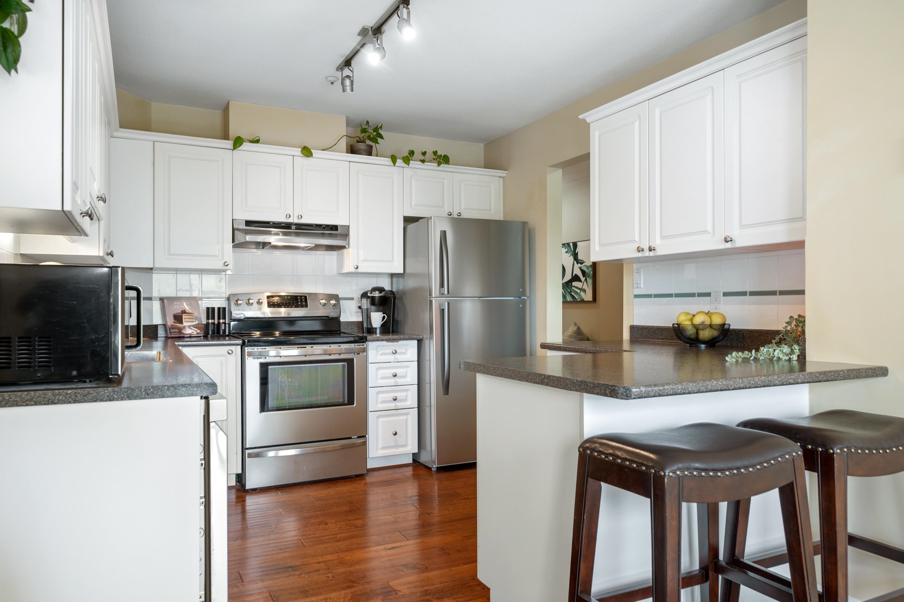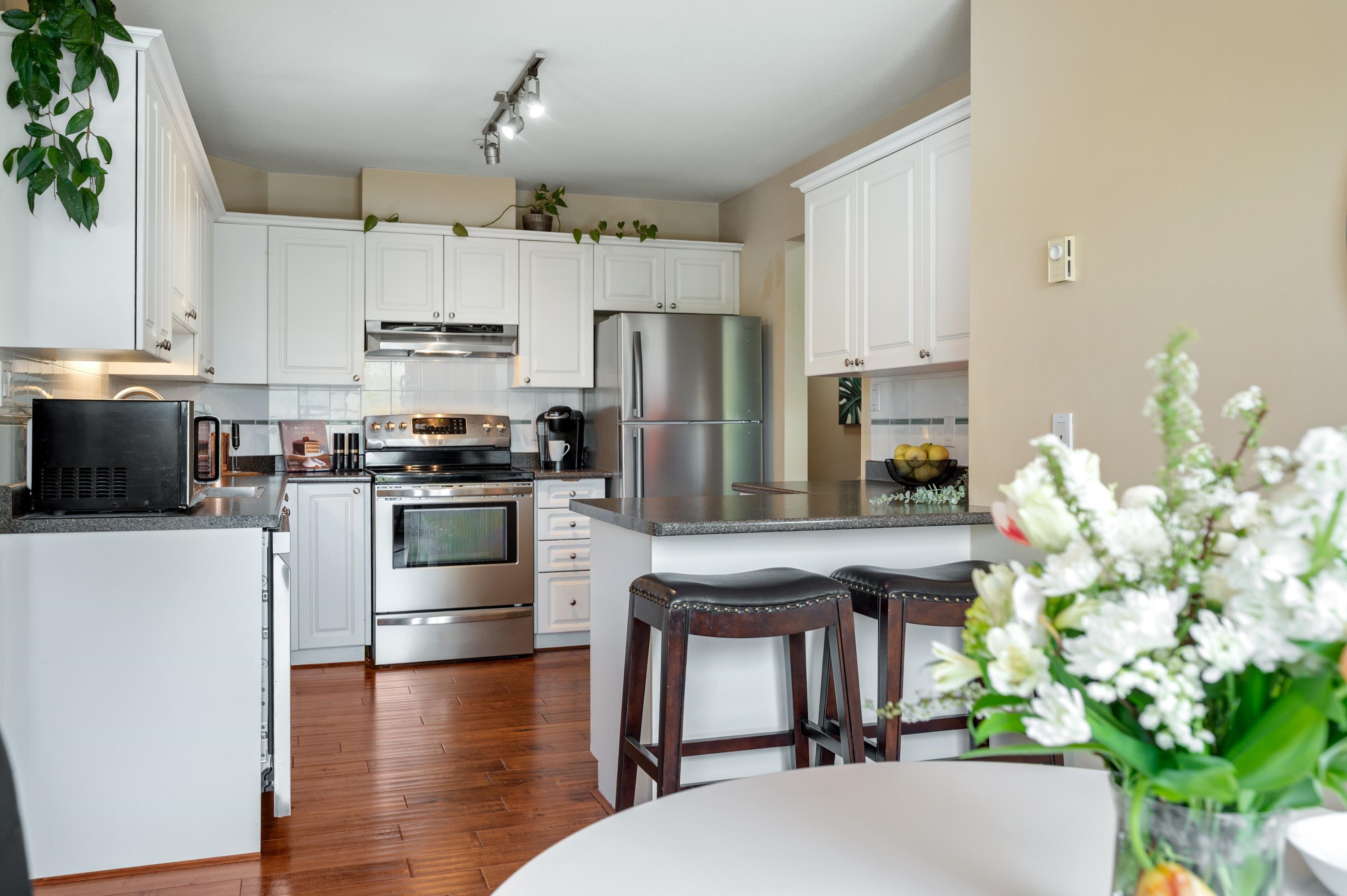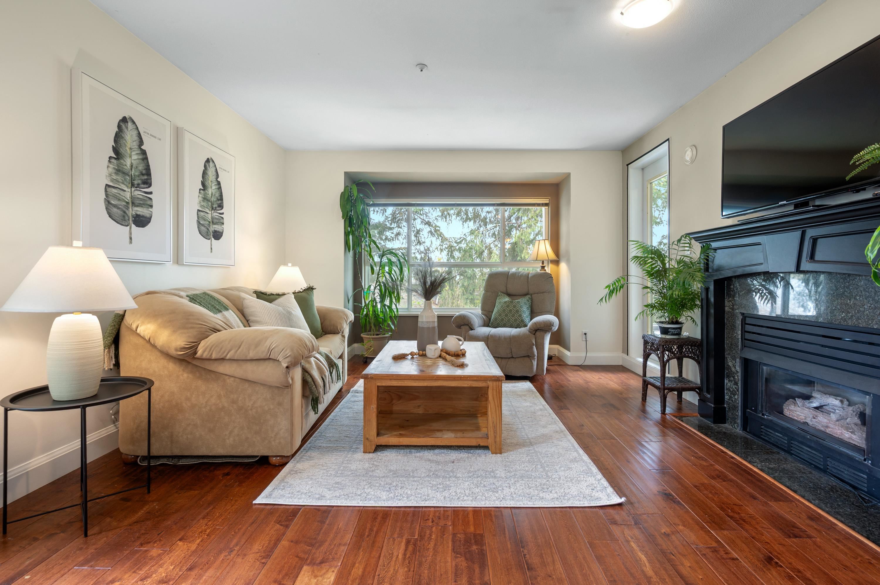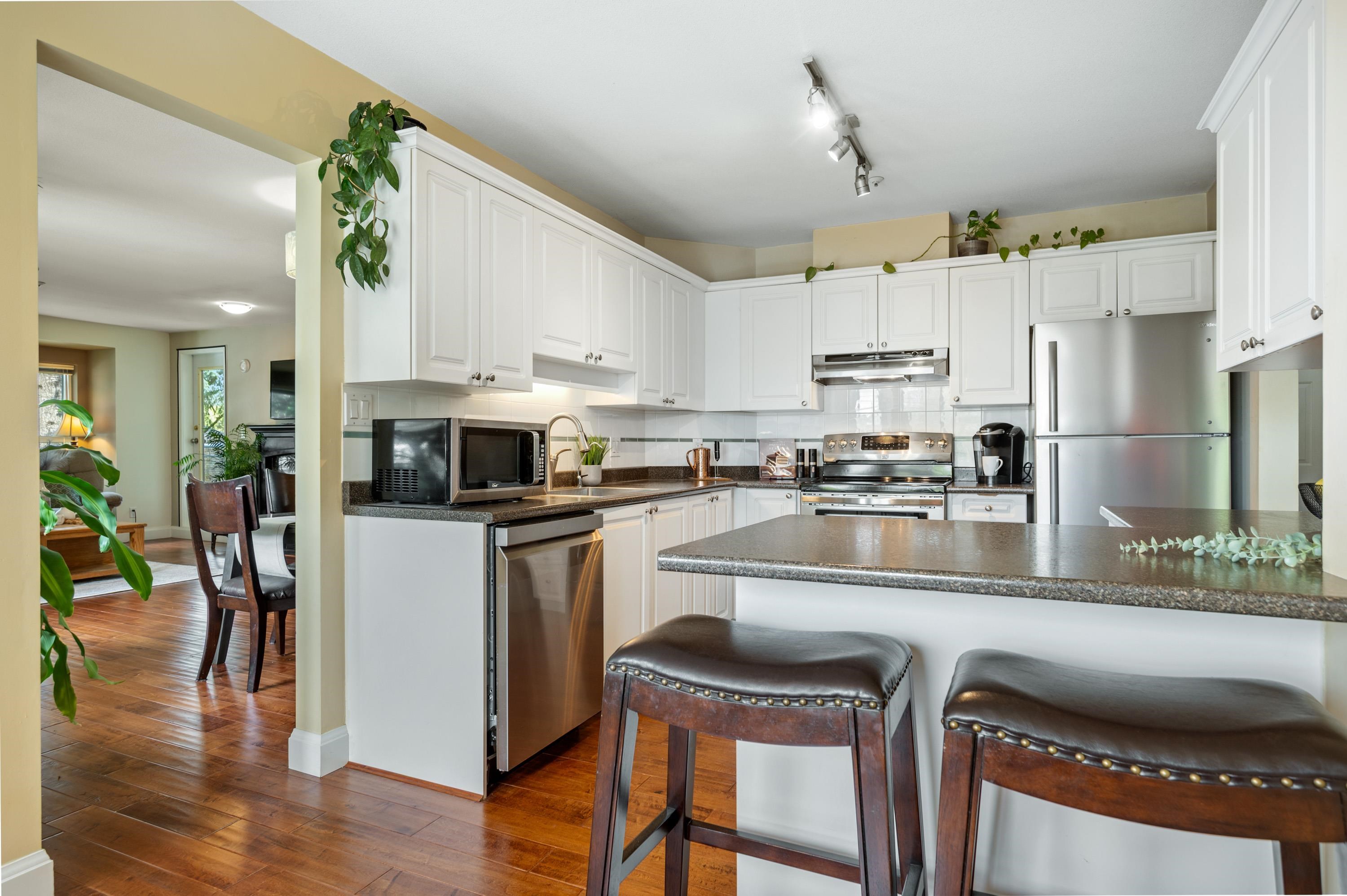 VERY RARE. TOP FLOOR and CORNER 3-BEDROOM, 2 full Bath condo that is as big as a townhouse 1454 sq. ft w/ oversized rooms throughout. Large kitchen & eating area w/ newer ss appliances. Freshly painted Living area w/ a cozy gas fireplace (gas included in strata). 2 Sundecks (west and north facing). Meticulously-maintained building, pet friendly, re-sided w/ hardi-plank & fully rain-screened, new trim, windows, decking and asphalt roof redone as well. Location is incredible -Right outside your door are walk...