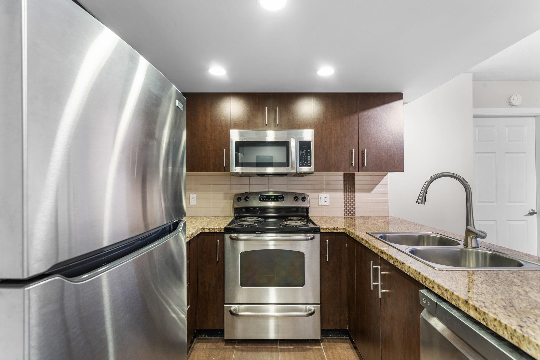 Discover exceptional comfort and thoughtful design in this beautifully updated 1,030 sq. ft. 2-bed, 2-bath home in the heart of Sapperton-just steps from the SkyTrain. Fully renovated in 2025, this residence features brand-new high-quality vinyl flooring, fresh paint, modern lighting, new window coverings, updated appliances, and new baseboard heaters throughout. Enjoy a bright and airy living space with stunning mountain and river views from both the living room and the balcony. Included are two parking st...