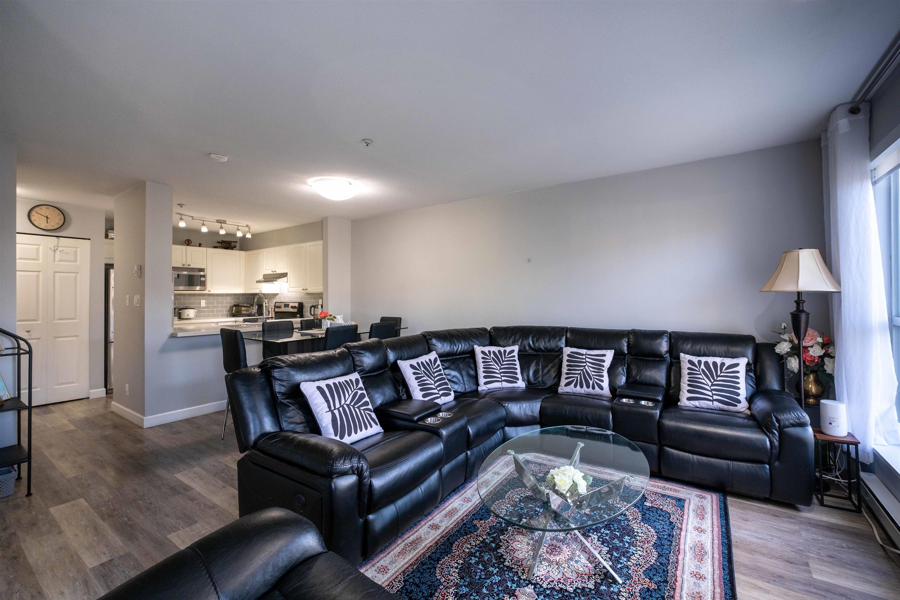 Completely updated 2 bed, 2 bath home with 2 parking! Centrally located and move-in ready, this spacious unit features a large open-concept kitchen with quartz counters, updated baths, cozy gas fireplace, and in-suite laundry. Enjoy an oversized 120 sq.ft. covered private deck with partial views, perfect year-round. Generous rooms fit full-sized furniture with ease. Upgrades include laminate floors, appliances, designer paint, and fireplace surround. Well-maintained complex offers a party room and modern gy...
