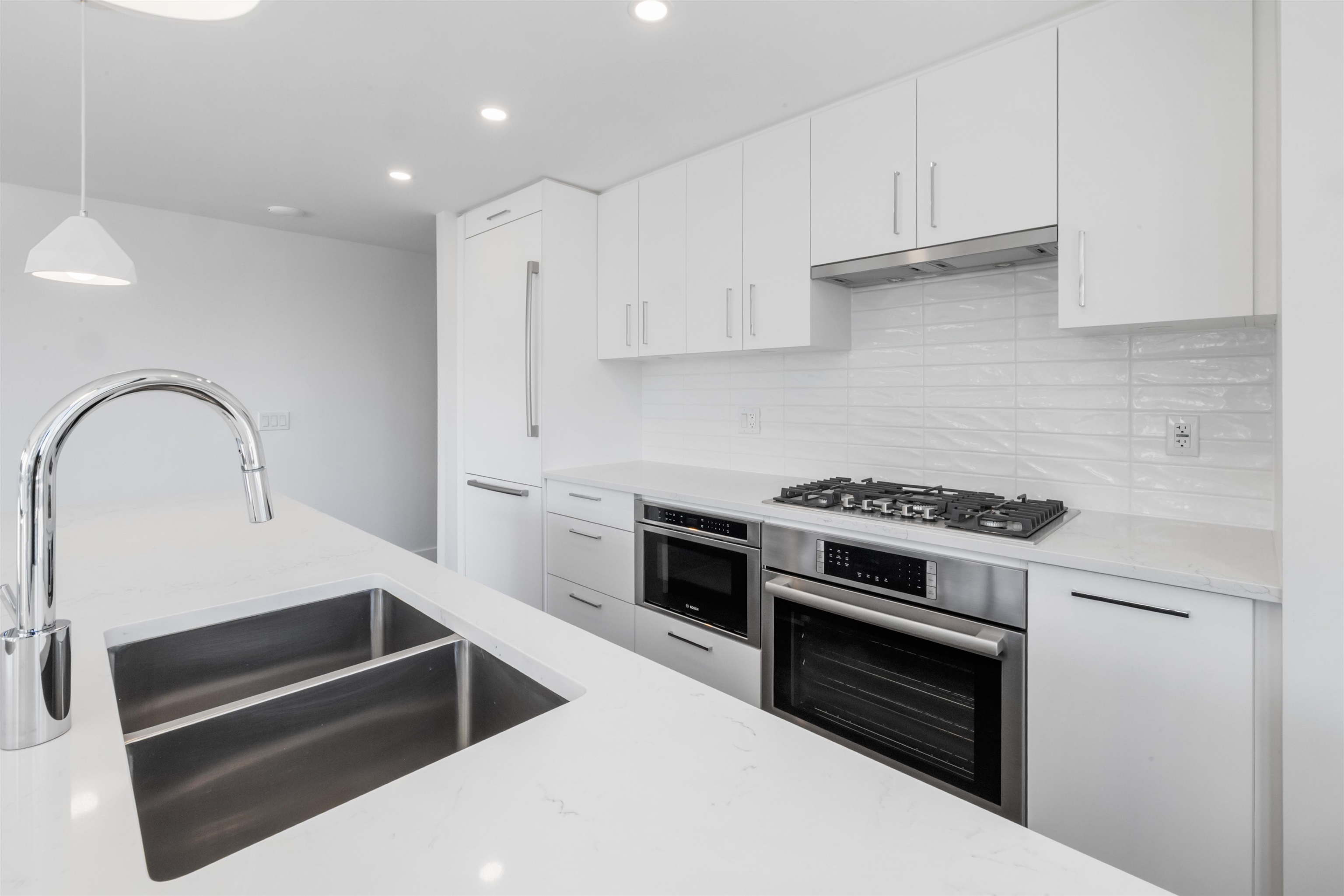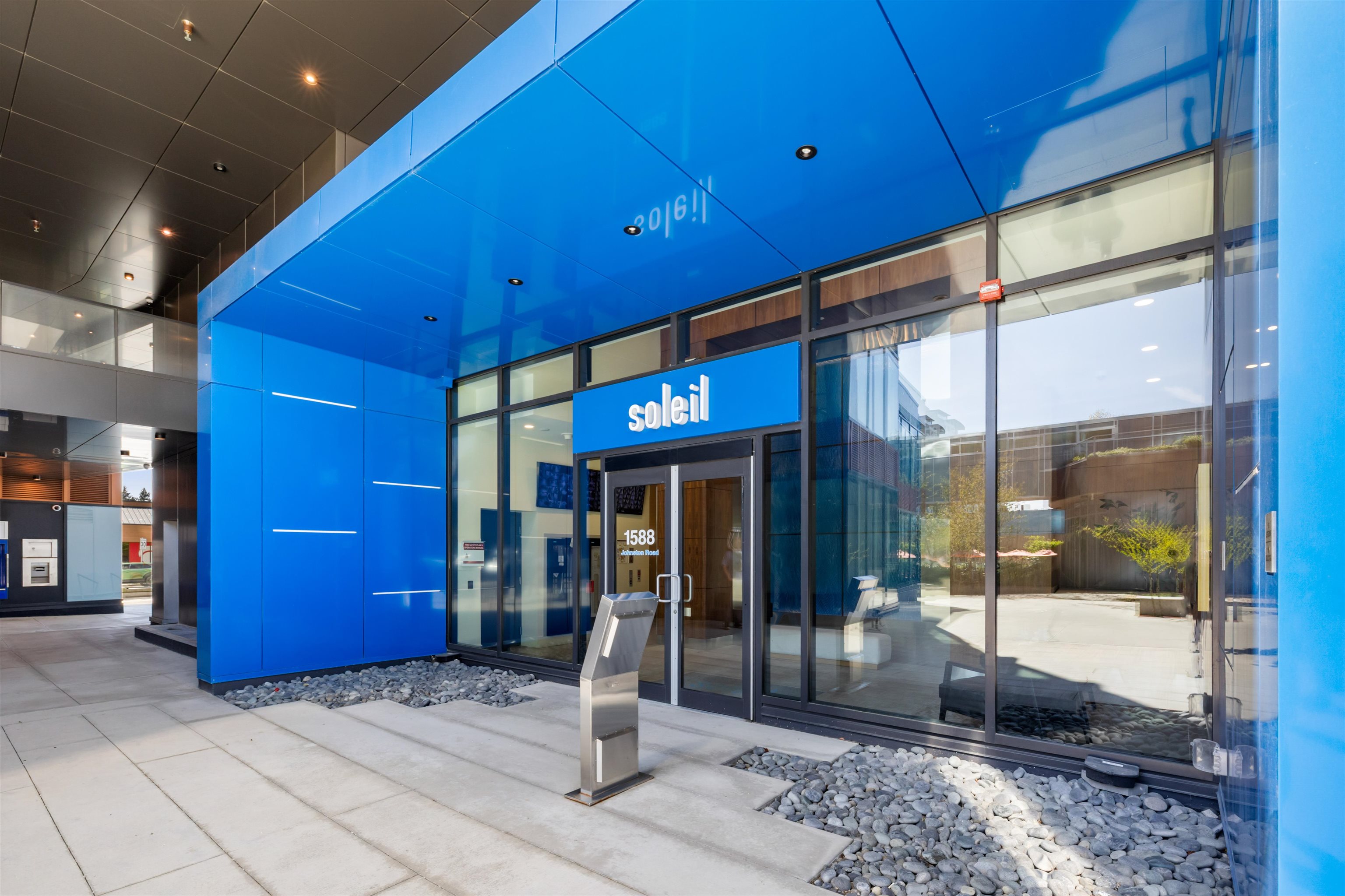 Welcome to SOLEIL in the heart of White Rock! This 929 sq ft 2 bedroom, 2 bath CORNER unit blends elegance and comfort. One of the largest Patios in complex 20'x17'9 (360 SQ FT) to entertain and host dinner parties with Peek a poo ocean view. The gourmet kitchen is outfitted with premium quartz counter-tops and top-of-the-line Bosch Benchmark appliances. Loaded with oversized windows with air conditioning. Laundry room has loads of extra storage area. Additional features include 2 SIDE BY SIDE parking s...