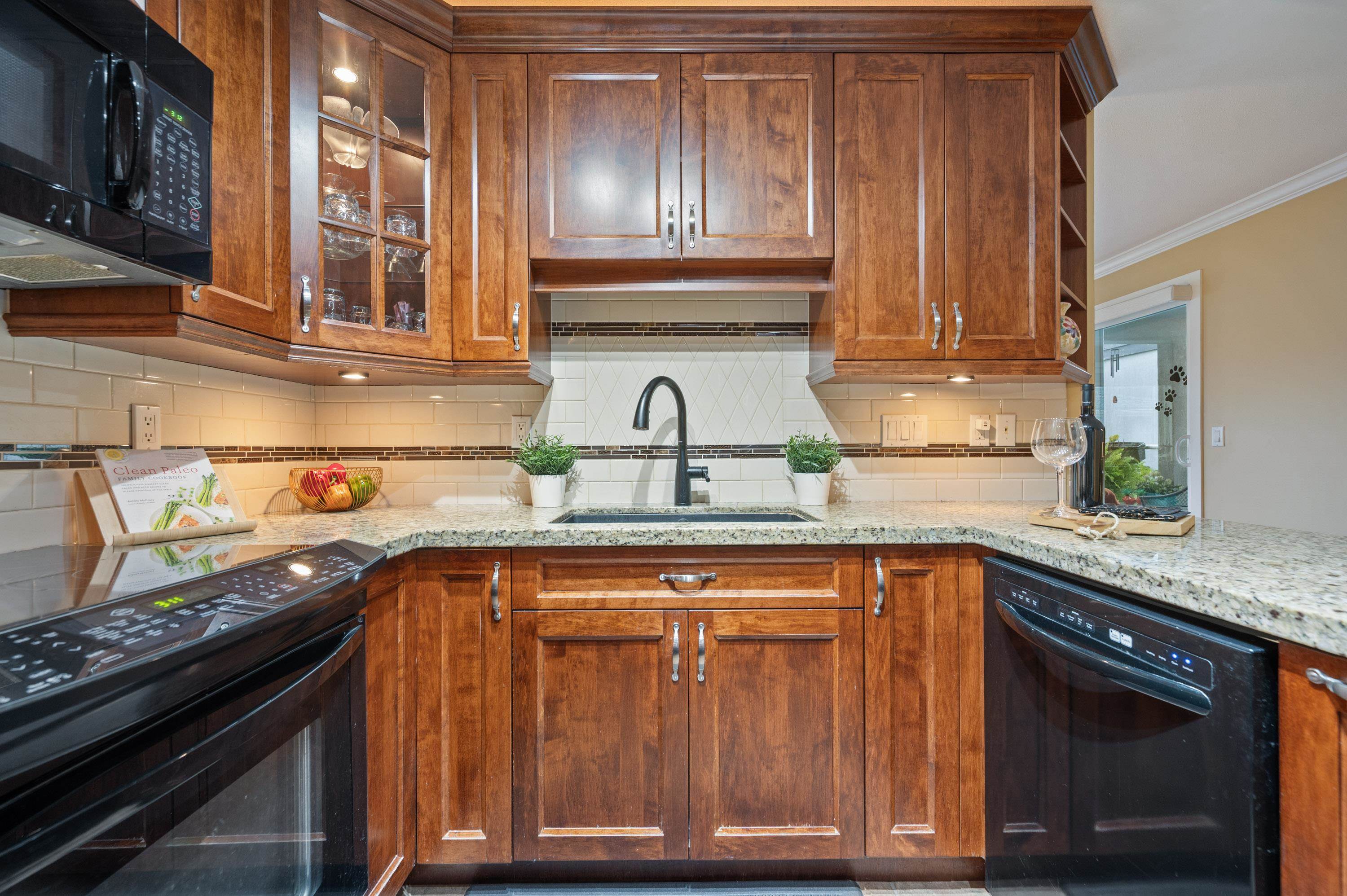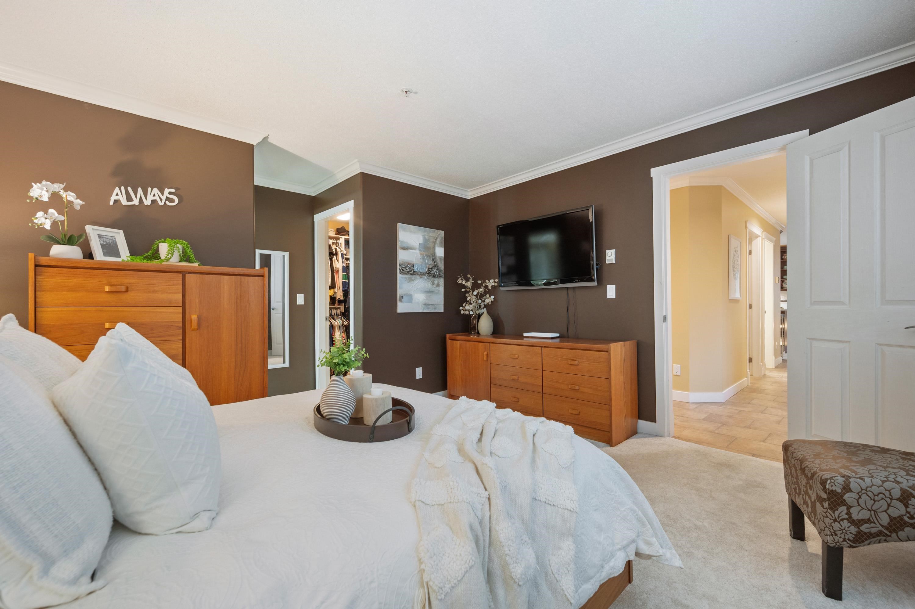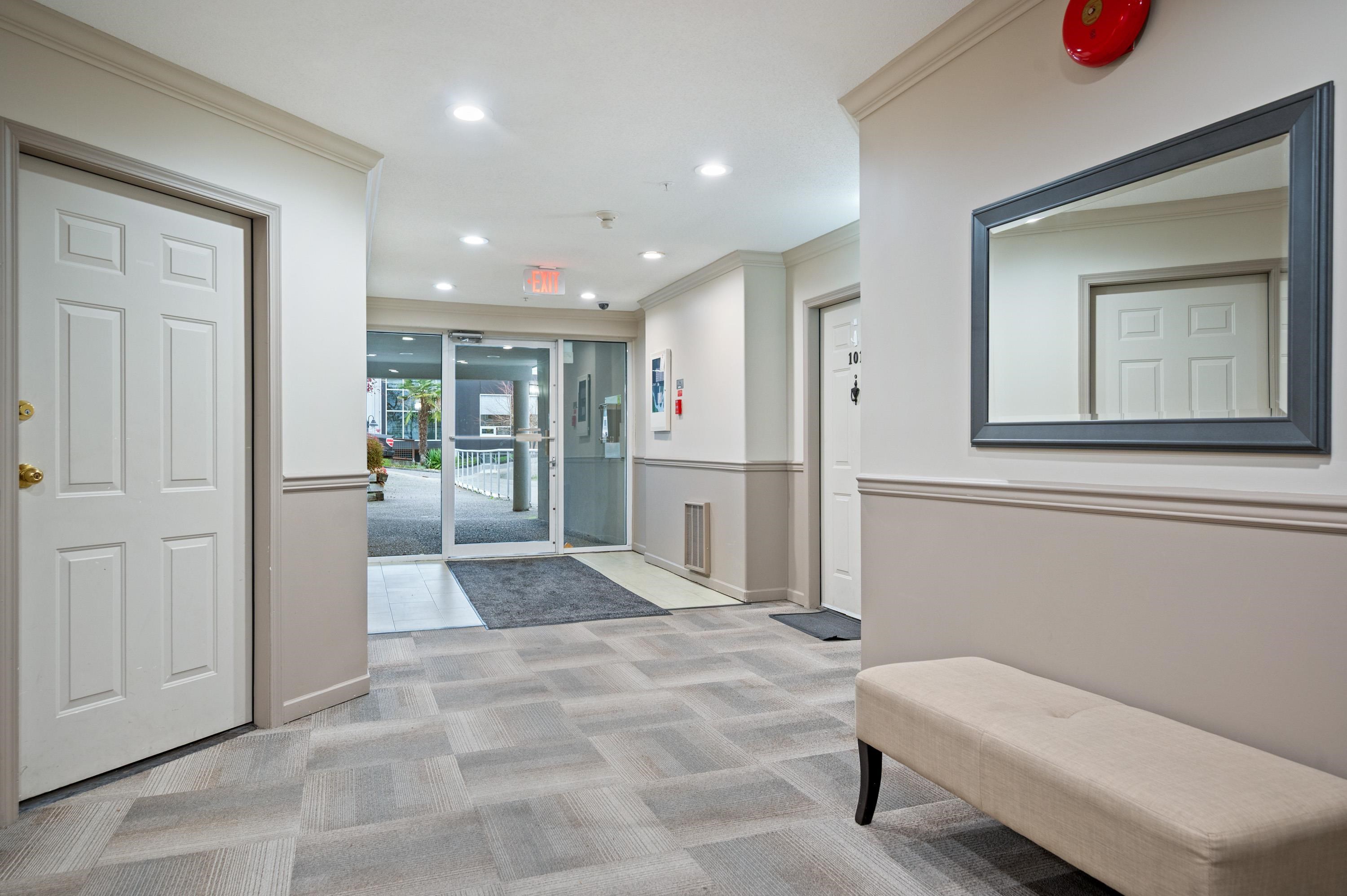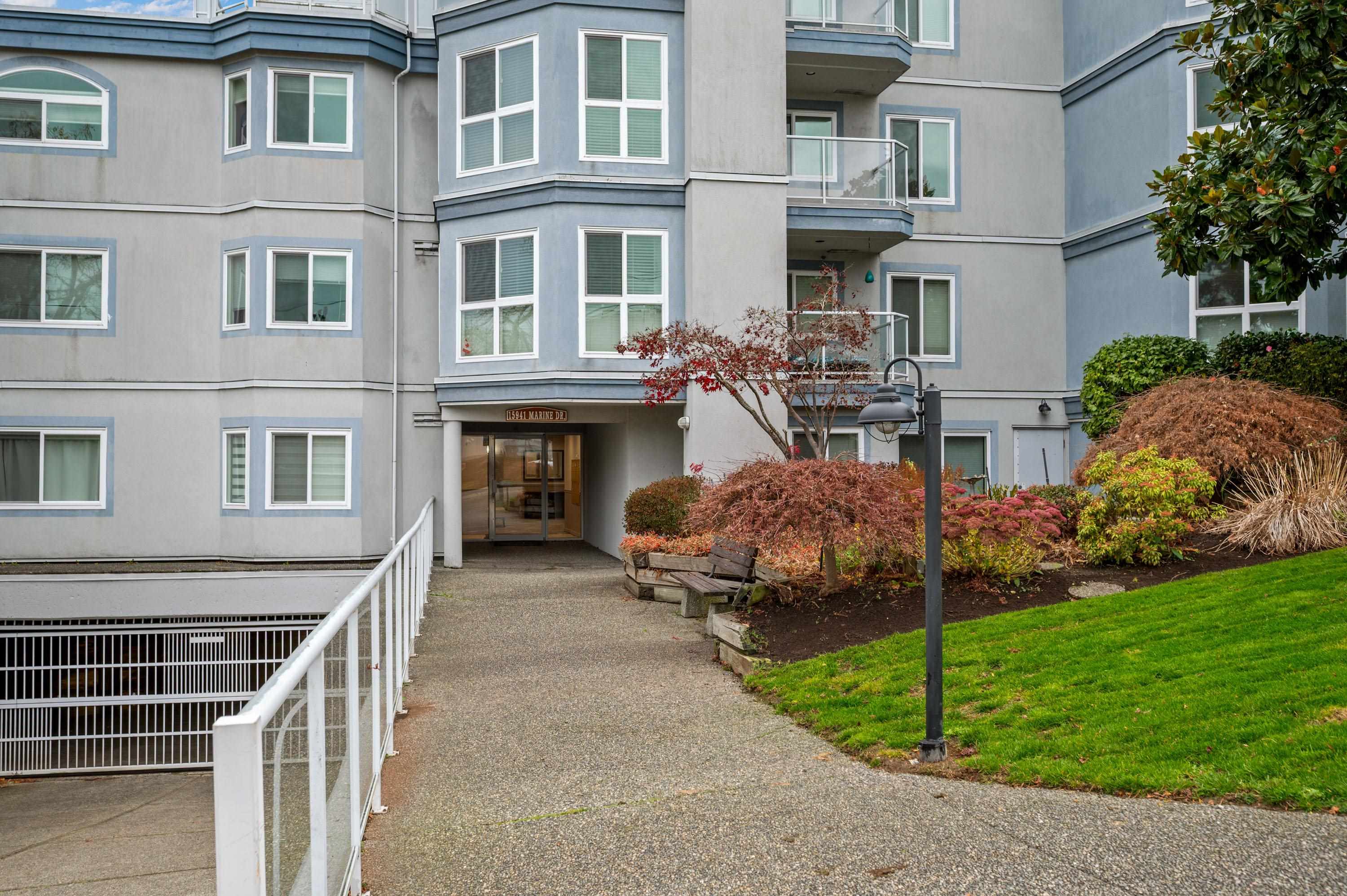 East Beach stunning 2 bed, 2 bath updated condo in White Rock! CORNER END unit is located on the quiet side of the building w/large windows on all sides for lots of natural light. Beautiful solid cherry hardwood floors, crown moulding, remodelled kitchen w/custom cabinetry & lighting, granite counters, wine fridge. Spacious & bright family room w/gas fireplace & large dining area for entertaining. Washer and Dryer new in 2022. Impressive sunny western exposed covered deck for BBQing. Lots of in-suite storag...