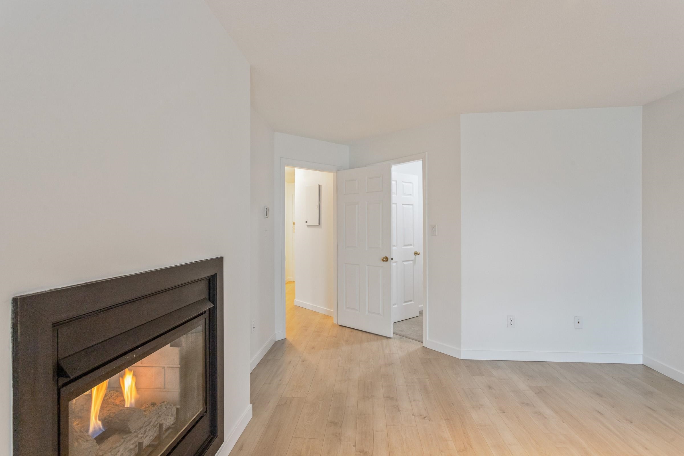 Spacious and bright 1 bedroom condo in a highly desirable location. This well designed home features a generous primary bedroom that easily accommodates a king-sized bed, along with a cozy 2 sided fireplace enjoyed from both the living room and bedroom, located just steps away from downtown Poco restaurants, grocery stores, coffee shops, craft brewery, new recreation center, bus loop and more. Outstanding access to nature with trails, parks and a dog park only 5 minutes away. This home is ideal for dog owne...