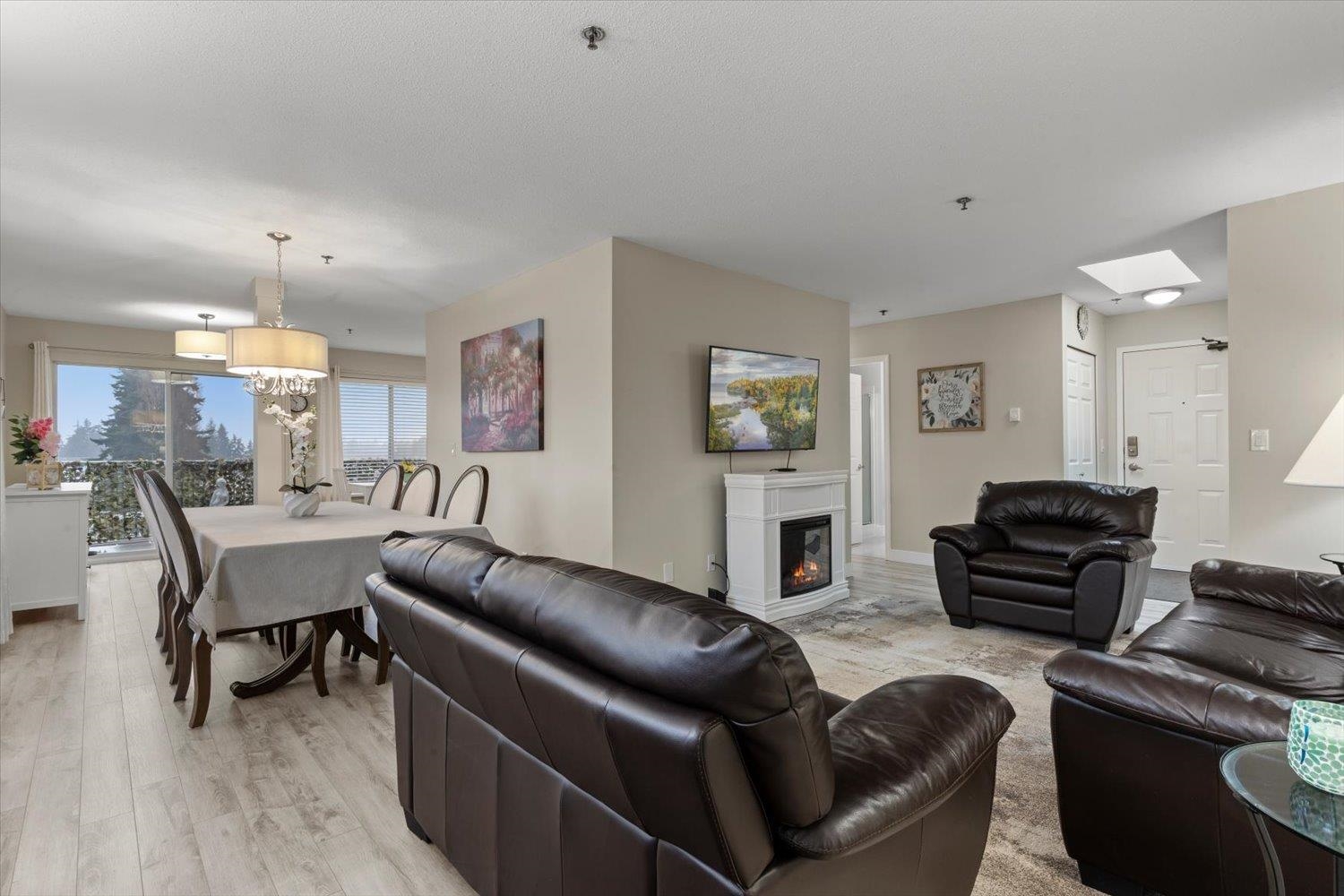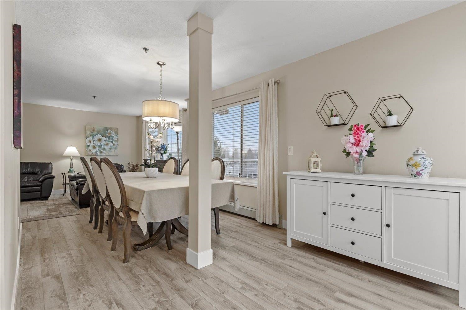 TOP FLOOR CORNER UNIT in the well-maintained 55+ Central Heights. Bright and spacious with 1,181 sq ft, 2 bedrooms, 2 full baths, wraparound balcony, and North Shore mountain views. TASTEFULLY UPDATED with newer flooring, fresh paint, refreshed kitchen, stainless steel appliances, renovated bathrooms, and modern lighting. Large living and dining areas offer a cozy living area and excellent natural light. Includes 1 underground parking stall and 2 storage lockers. Heat pumps have already been approved by str...