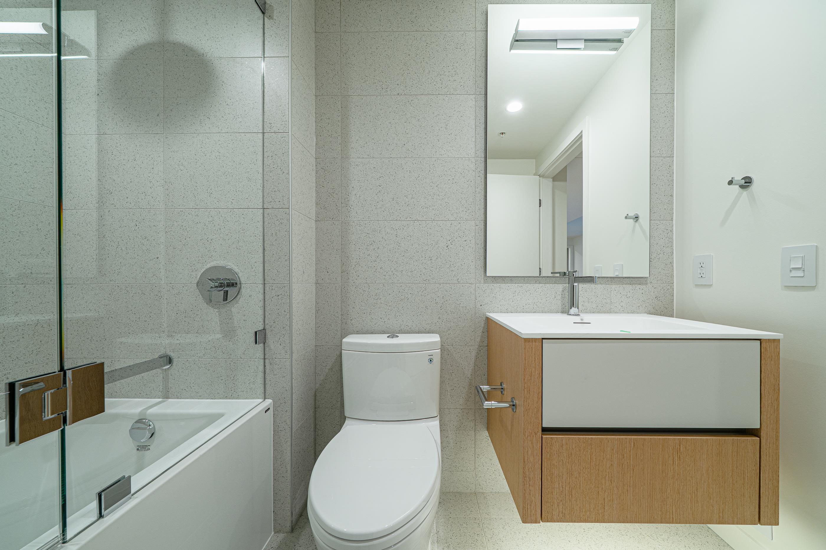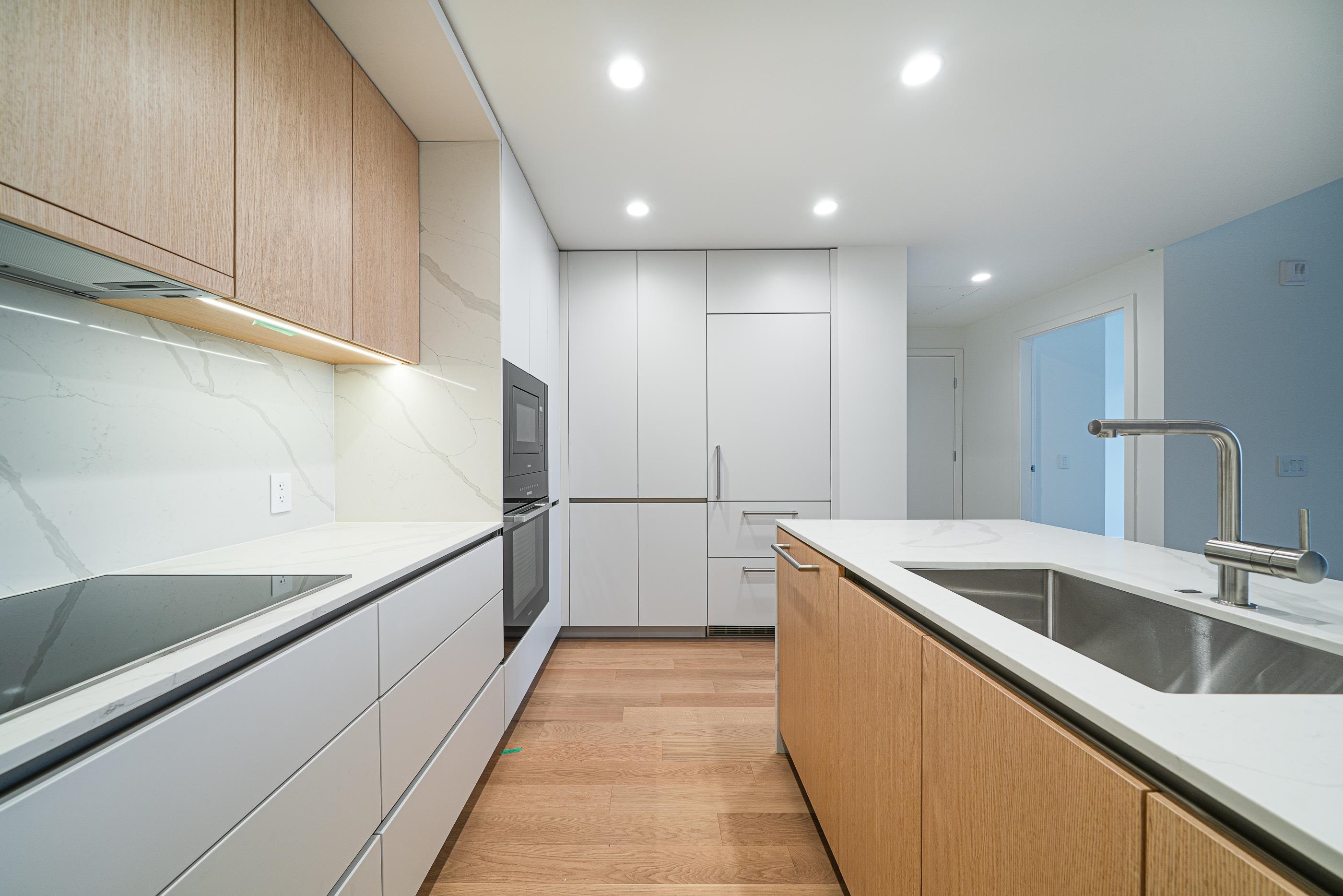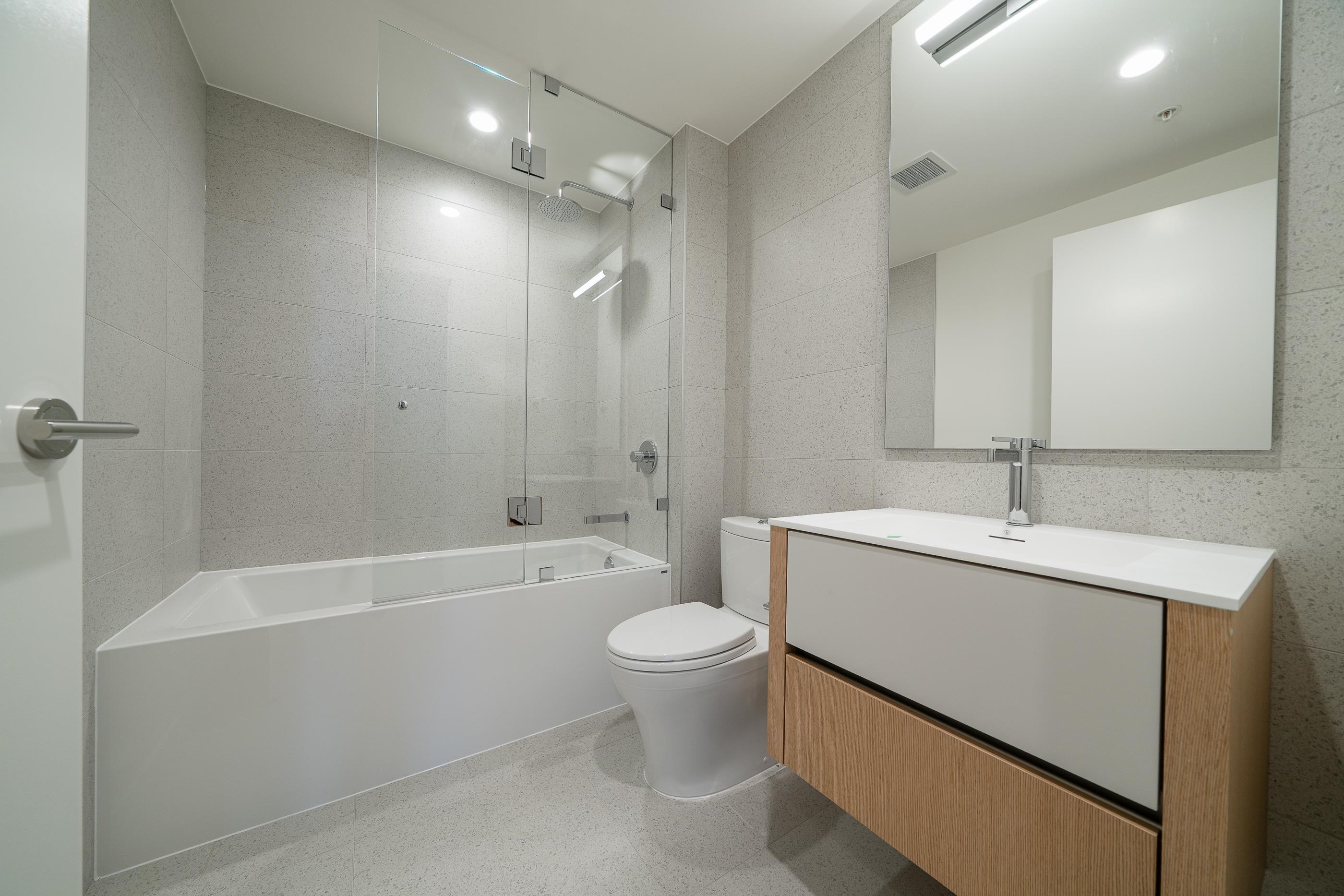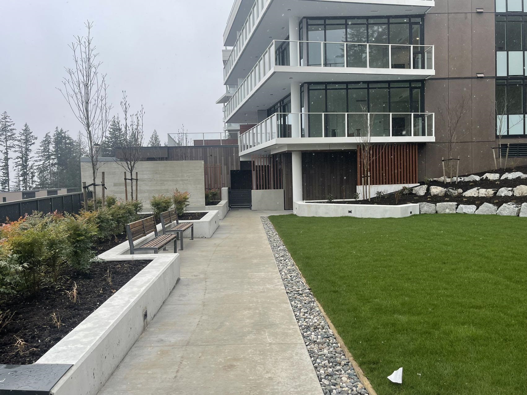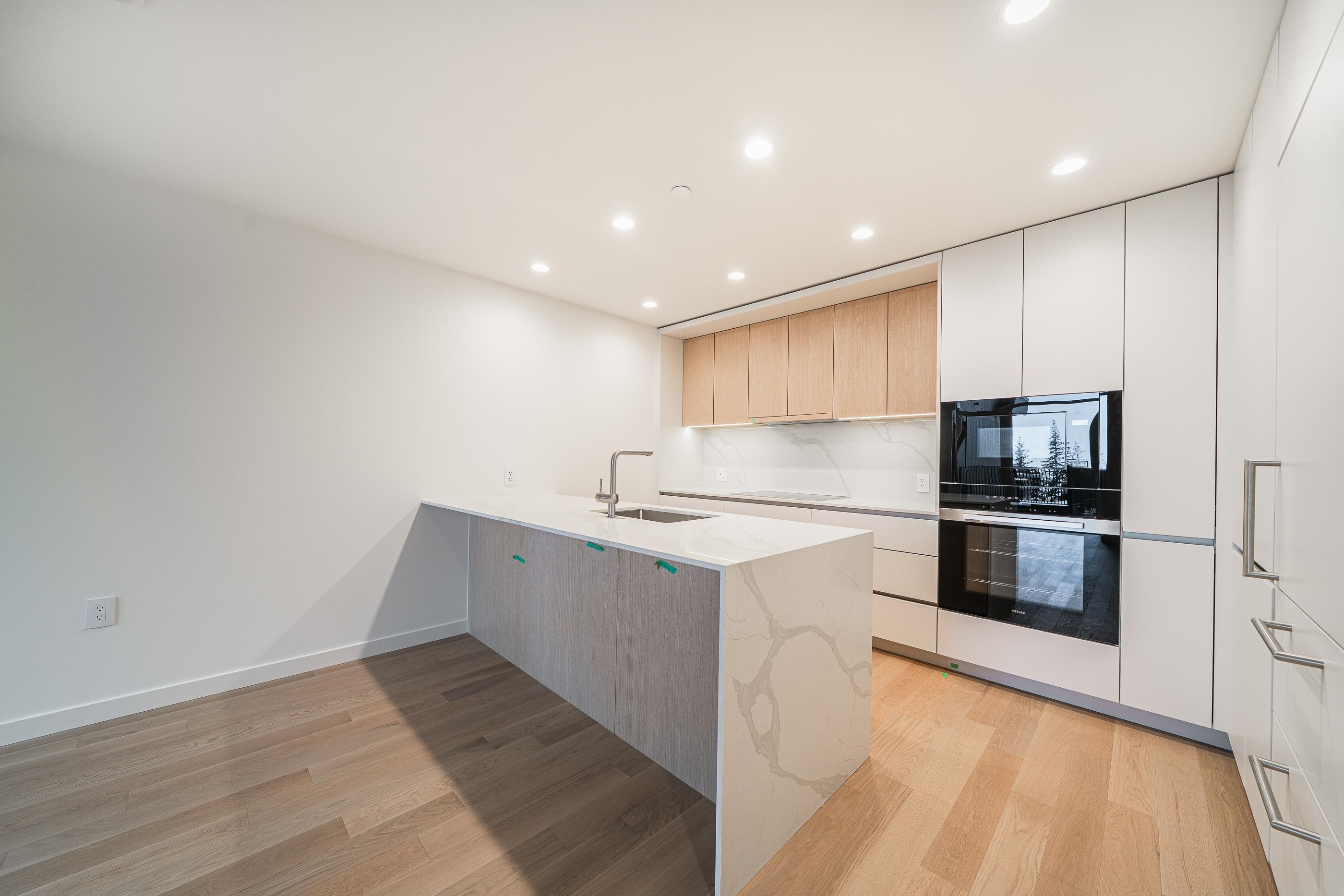 Brand new 1,058 sq. ft. home featuring 2 bedrooms, 2 bathrooms, and 2 parking stalls (with EV charging). Located above the parkade with a private entrance and oversized garden patio, offering a unique garden-home feel. Includes engineered hardwood flooring, AC, expansive windows with forest views, and in-suite washer & dryer. Kitchen equipped with Miele & Liebherr appliances. Building amenities include a co-working lounge, piano/music room, fitness centre, bike share & repair workshop, pet wash station, an...
