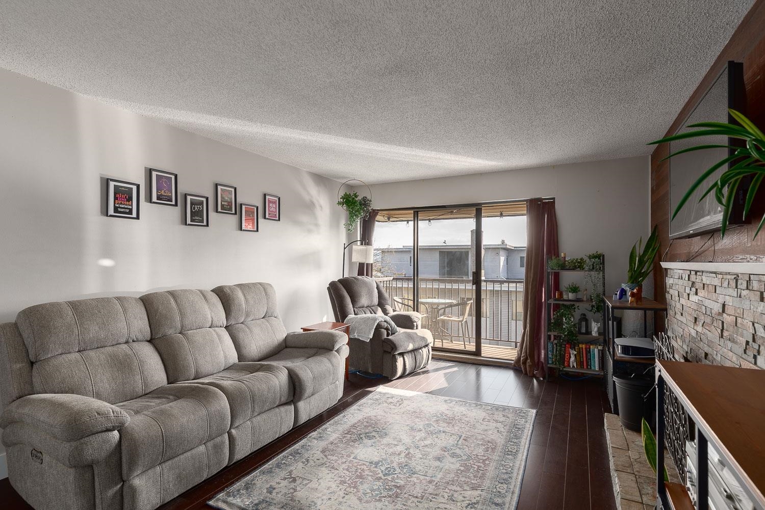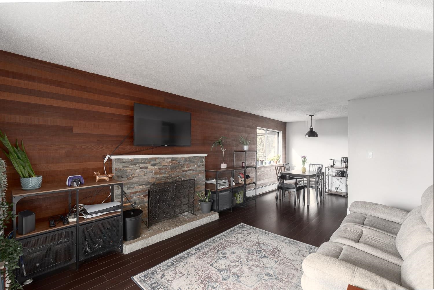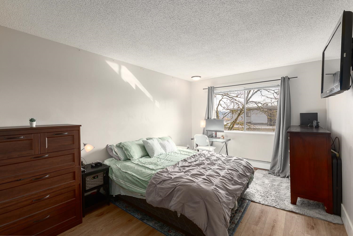 EXCEPTIONAL VALUE FOR MONEY in this updated, bright and spacious TOP floor CORNER 2 bedroom – 871 Sq. Ft. – suite on the QUIET South side of PARK VILLA. Newer renovated kitchen and appliances plus a nicely updated 4 piece bathroom. Open plan kitchen, dining and living area with laminate flooring and cozy wood burning fireplace. Balcony off the living room has views of the Fraser River and bridge. Pro-active strata and your maintenance fees include heat, hot water AND laundry. Parking, storage, bike room and...