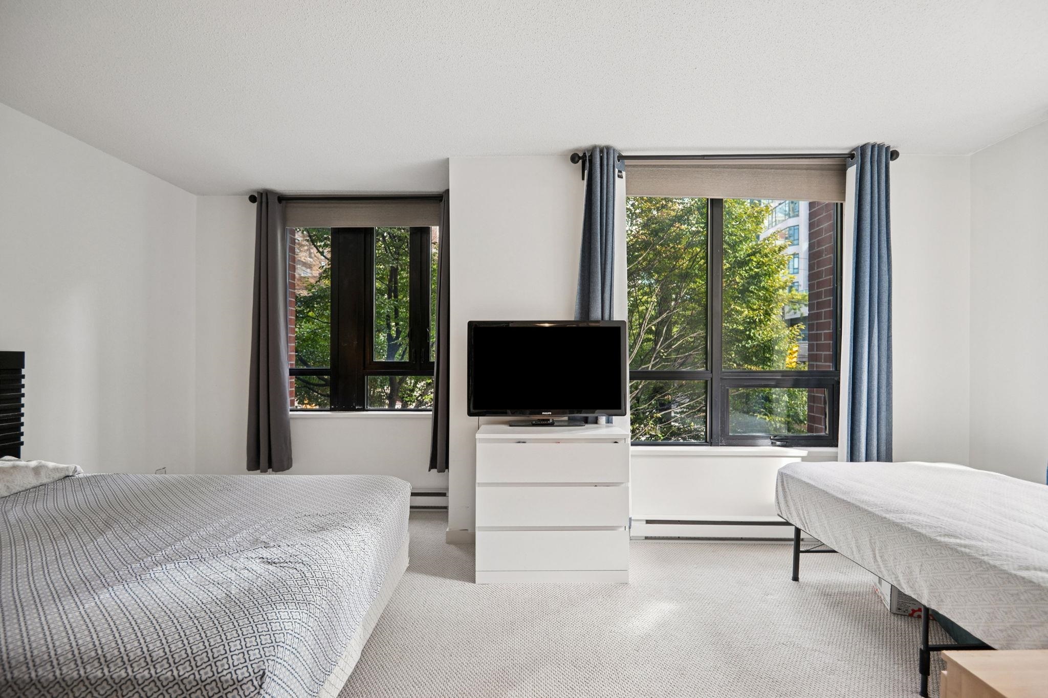 BRIGHT YALETOWN TOWNHOUSE! CORNER UNIT with TONS OF BIG WINDOWS on North & East sides with a lovely treed outlook. Recently updated with new paint & carpets. Features include bamboo flooring, stainless steel appliances, granite countertops, DEN & bathroom on main floor. 2 bedrooms upstairs both with ensuite 4-piece bathrooms. Large primary bedroom & walk-in closet with its own window can also be used as SECOND DEN/office. EXTRA LARGE parking spot & storage locker. Yaletown Park II has undergone a complete e...