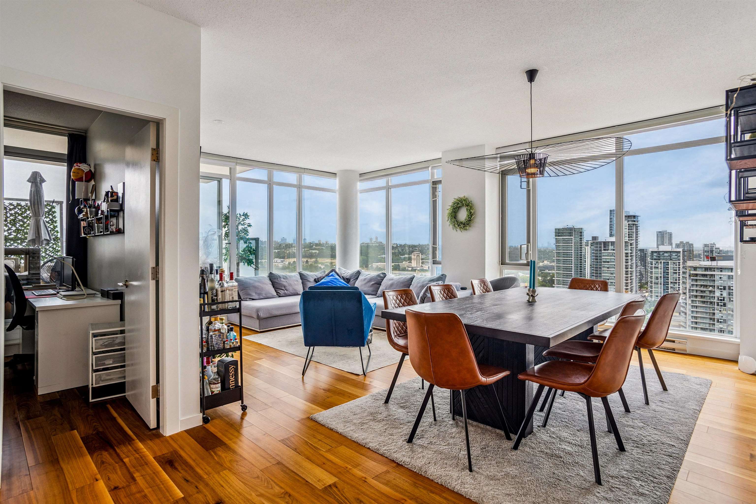 This rare corner home in Brentwood offers 3 bedrooms, 3 bathrooms, and an impressive 1,354 sq ft of well-designed living space. Enjoy spectacular southwest views from the oversized terrace, accessible from both the living room and primary suite. Inside, the open-concept layout features floor-to-ceiling windows, hardwood floors, and a sleek kitchen with granite counters, designer stainless steel appliances, and a huge centre island. The primary suite includes a walk-in closet and a spa-like 5-piece ensuite....