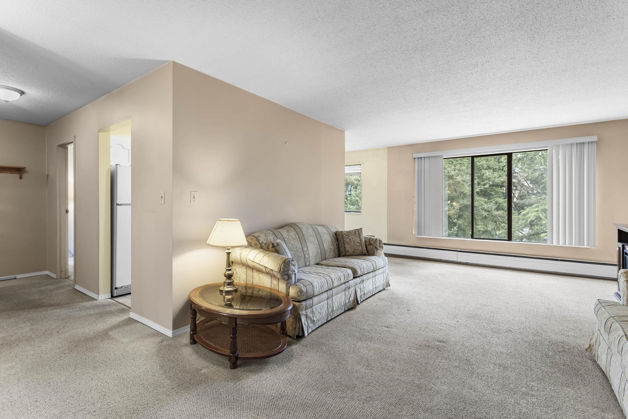 Welcome to this charming 2-bedroom, 1-bathroom home featuring a spacious living space and a large private balcony. This well-managed complex has a brand new roof (2024) and is pet-friendly with great amenities including shared laundry, gym, sauna, workshop, meeting rooms, and secure underground parking. Strata fees include heat and hot water. Centrally located just steps to transit, shopping, and dining—offering comfort, convenience, and value. Great opportunity for first time buyers or investors and it is ...