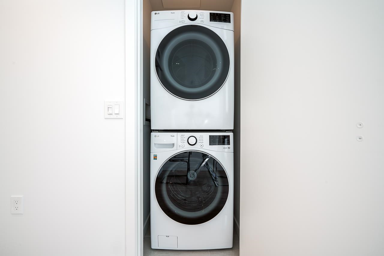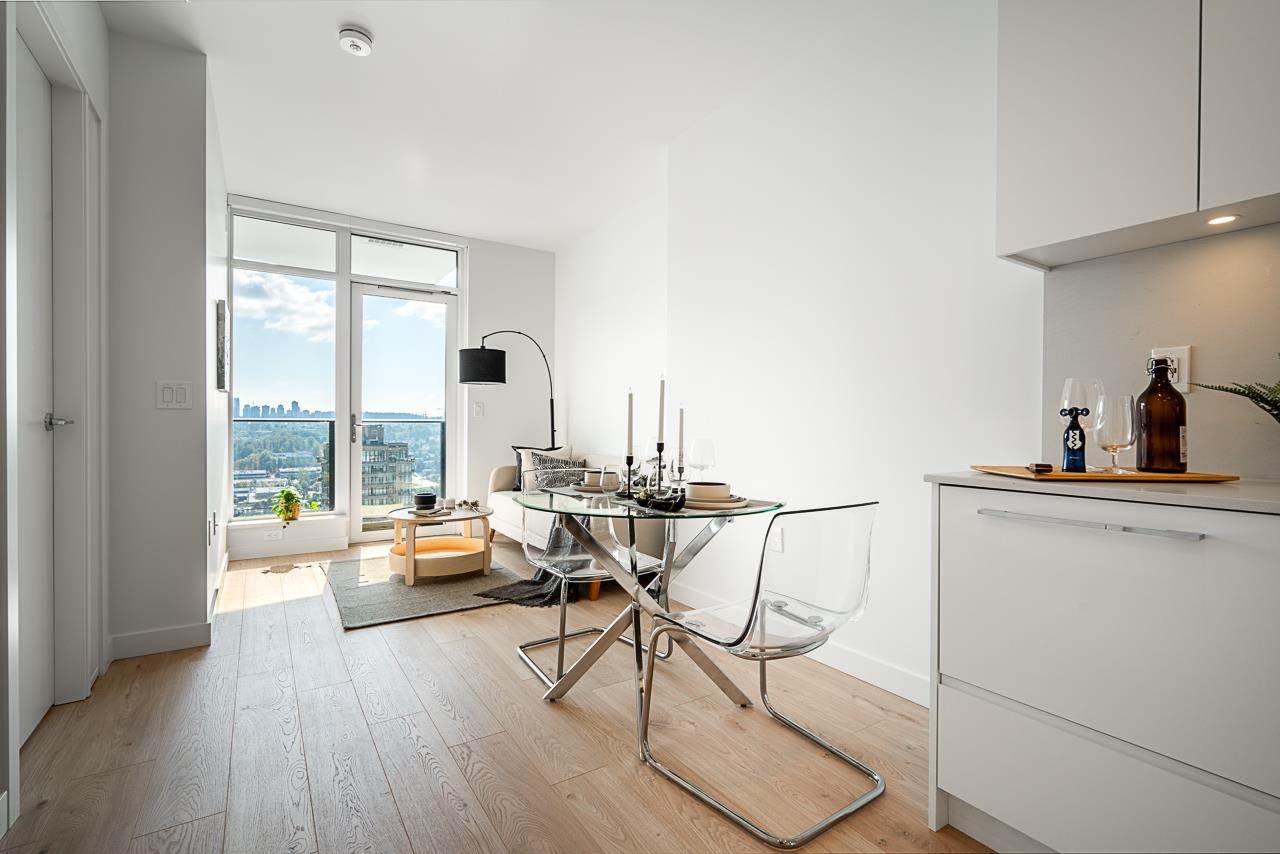 Experience elevated living at Akimbo in Brentwood! This stunning south facing 1 bedroom on the 31st floor offers panoramic city views, floor to ceiling windows, 9’ ceilings, and a spacious balcony. The open concept layout features quartz countertops, stainless steel appliances, and a full size washer/dryer. A family member currently resides in the unit, allowing for a quick and flexible move in. Includes 1 parking and 1 storage locker. Amenities include concierge, gym, guest suite, party lounge, BBQ terrace...