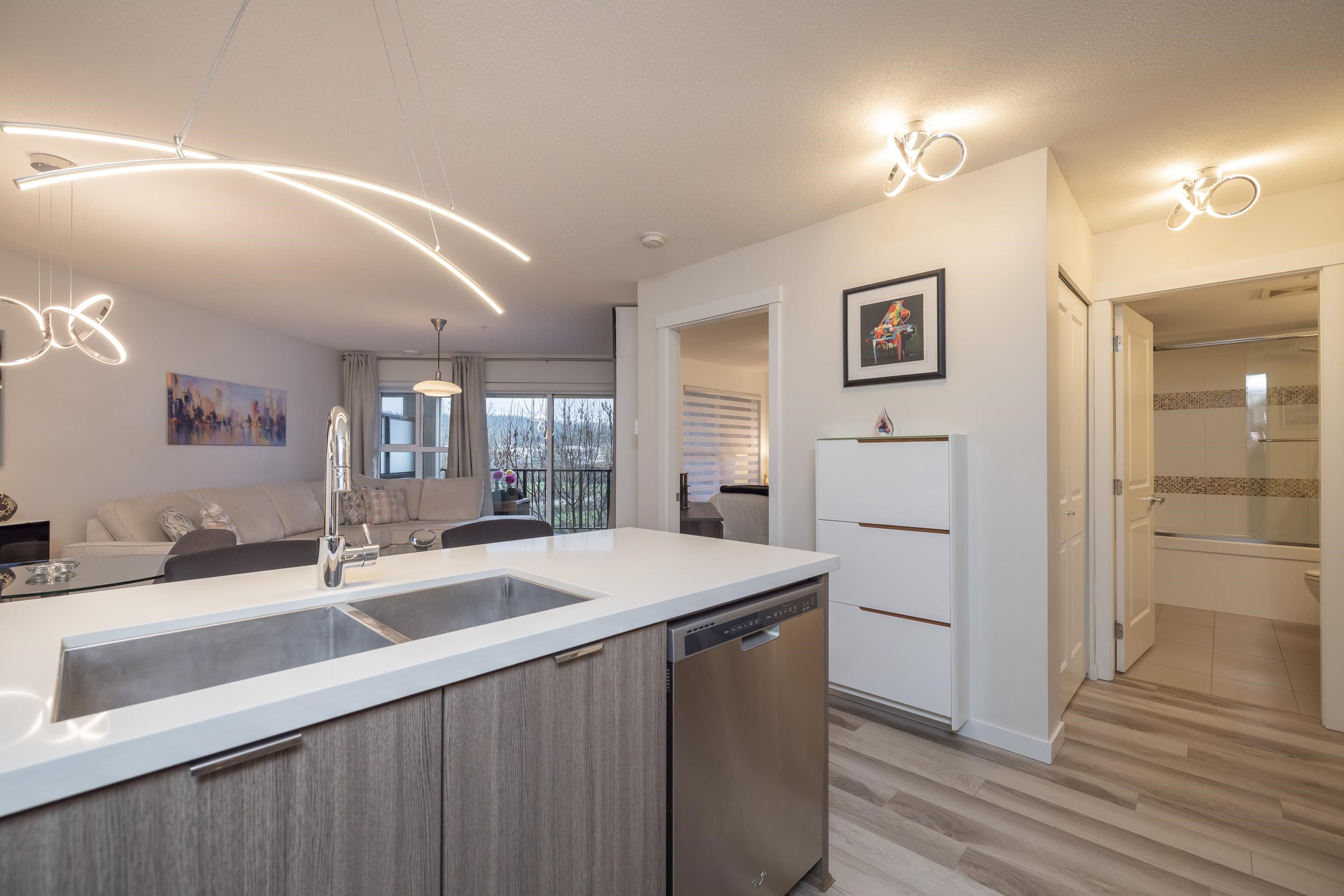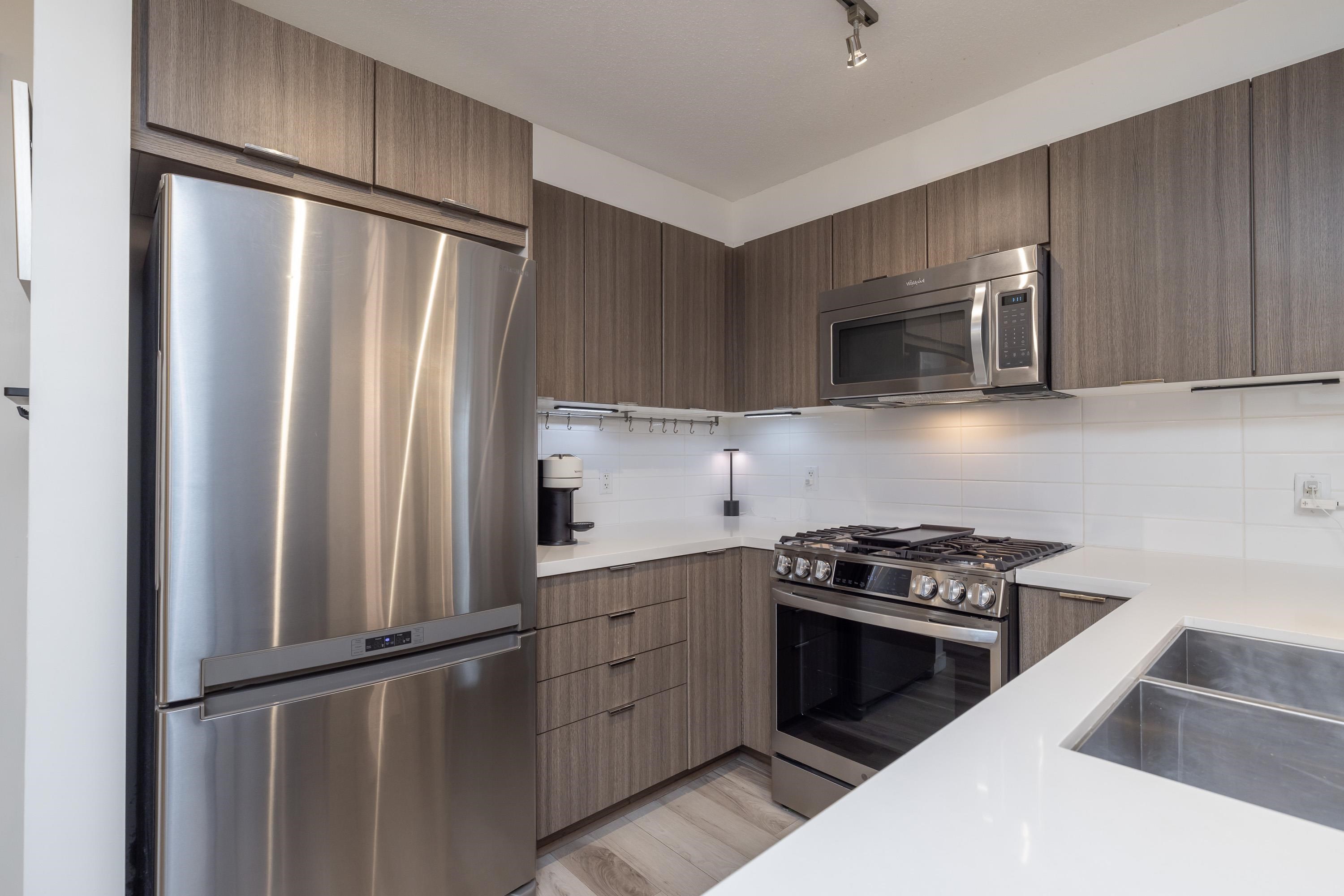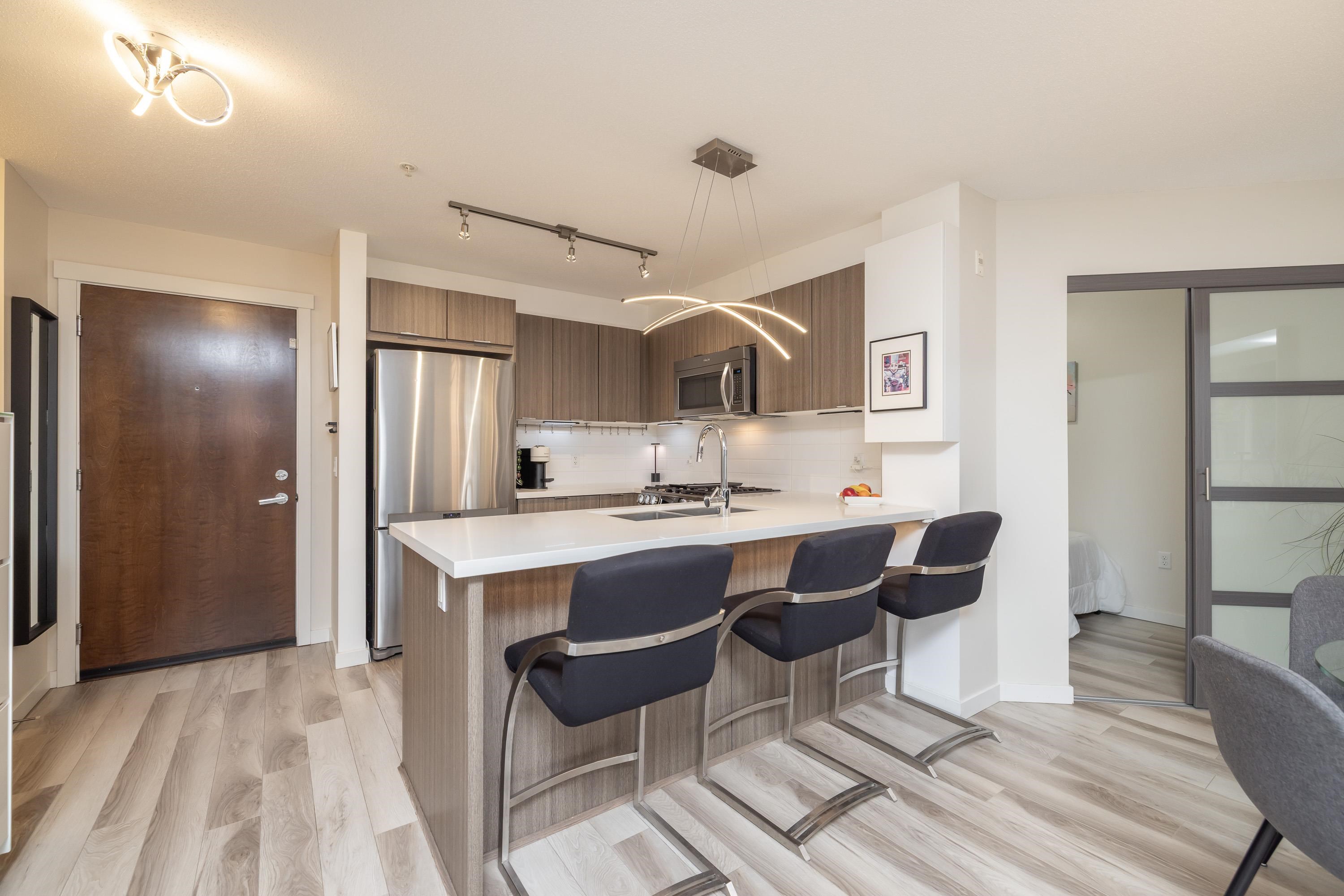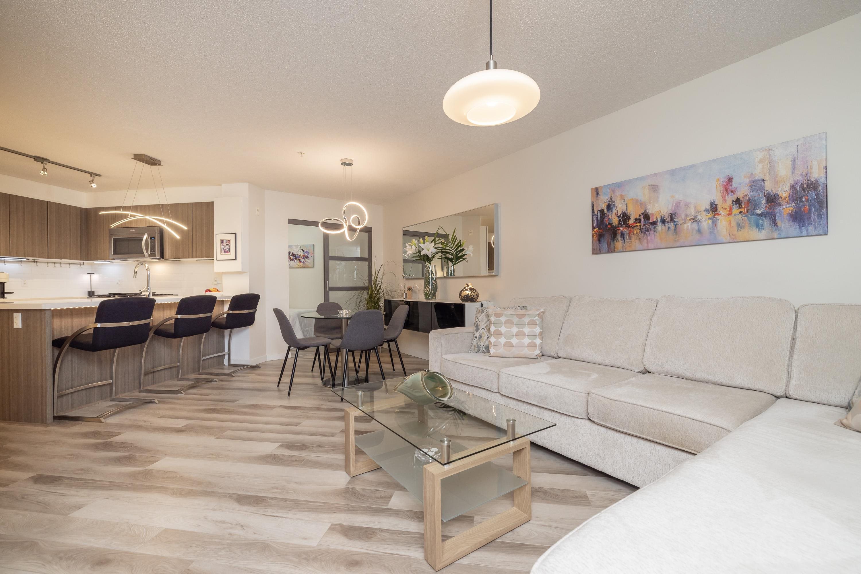 Resort-style living awaits at Harvard Gardens. This immaculate...PRISTINE home shows like a 10! featuring 1 bedroom plus a full-size den/spare room, 1 bathroom, and a show piece electric fireplace providing an elgant ambiance. Stylish finishes include georgeous stone countertops, stainless steel appliances, impressive laminate flooring. Enjoy a spacious SW-facing deck that’s fully covered—an ideal outdoor living space in every season—overlooking beautiful greenery. Residents love the 9,000 sq ft clubhouse w...