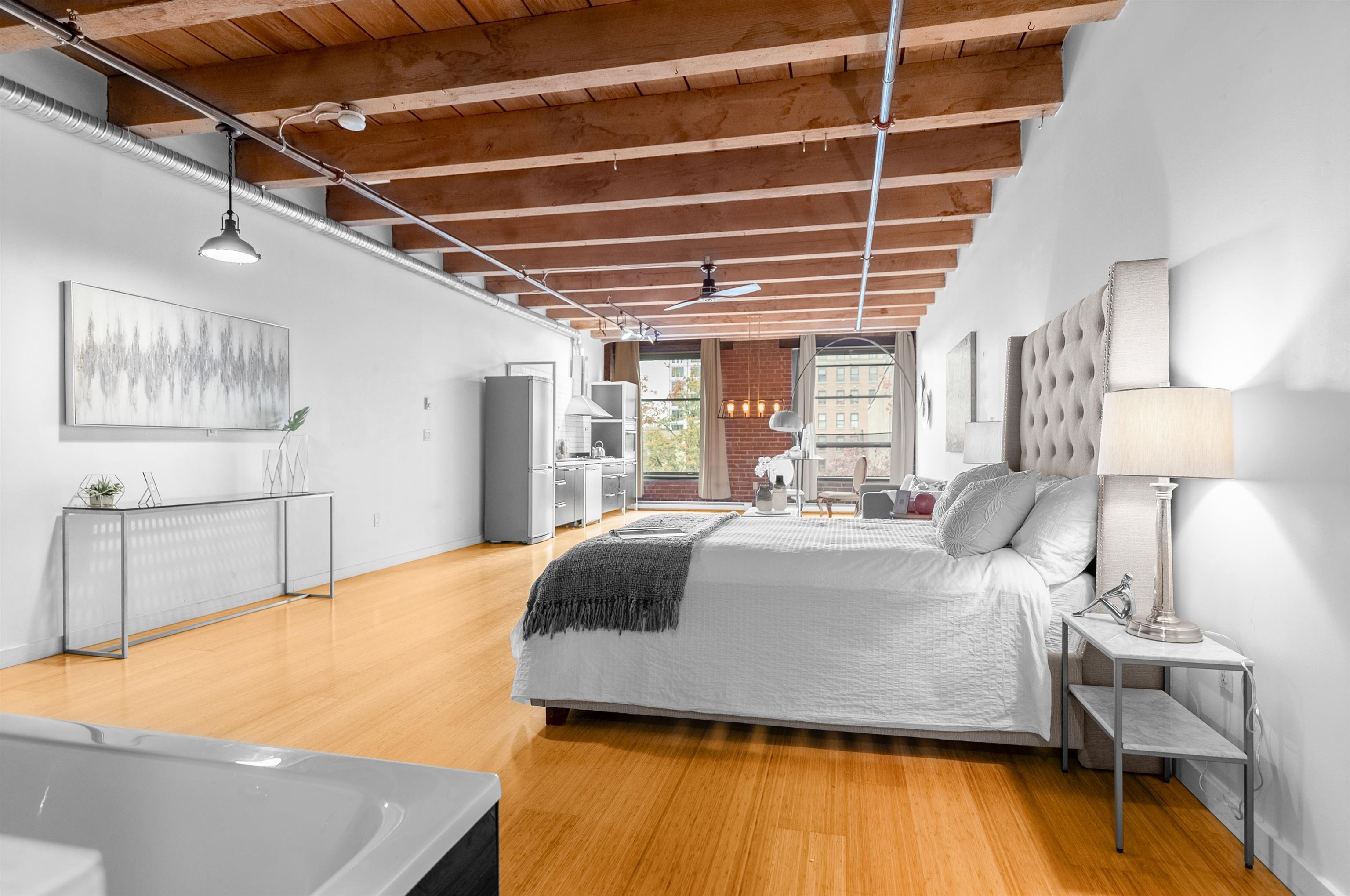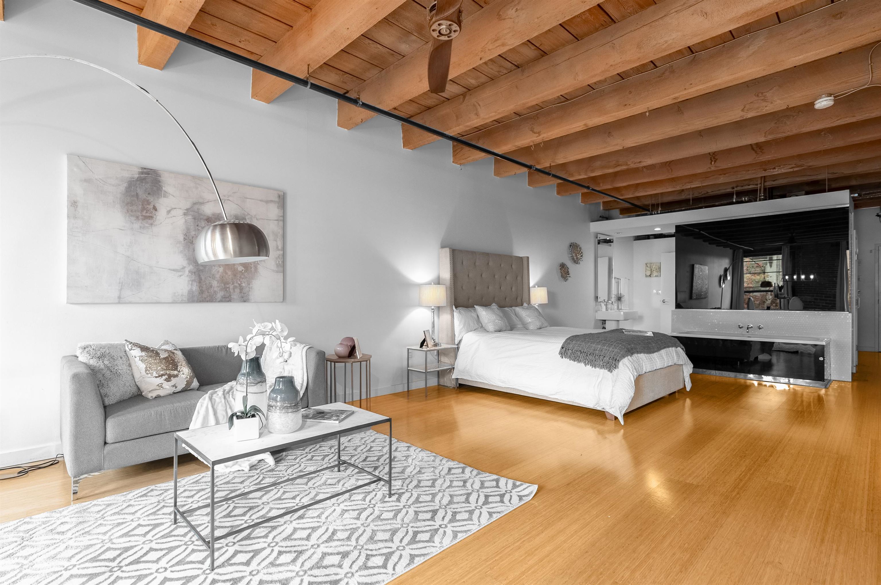 Fantastic Live/Work Loft in The Heart Of Gastown! Professionally designed with Flare by one of Vancouver Best Interior Designers Alda Pereira! Koret Lofts is a true brick and stick warehouse conversion. Open loft space with original brick wall and solid wood beams. Full open concept with 10' high ceilings, gas range in the kitchen, Bamboo laminate flooring, a mosaic tiled shower hall, and exposed tub, all surrounded and framed with translucent black glass panels. A truly special home! Koret lofts are zoned ...