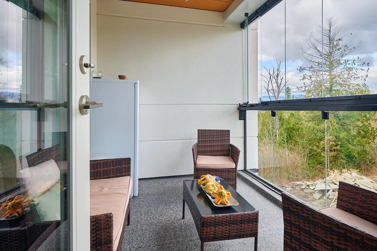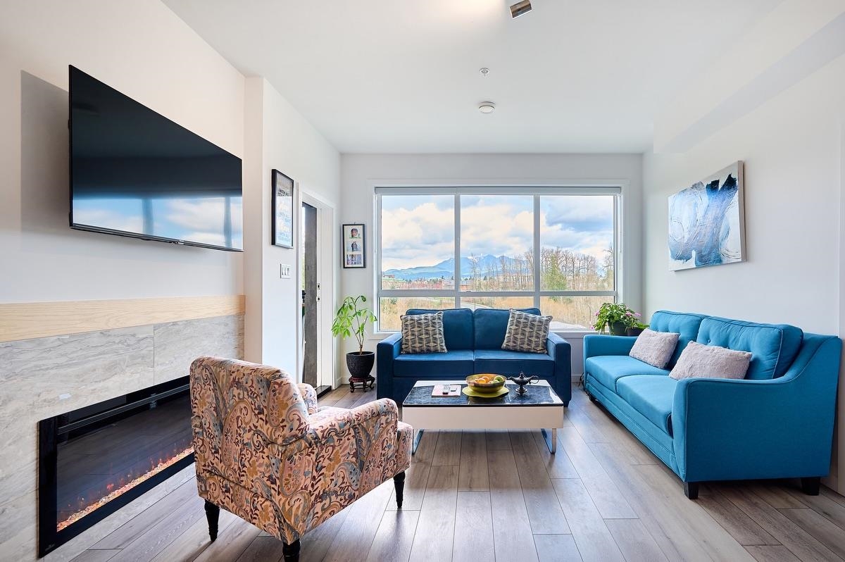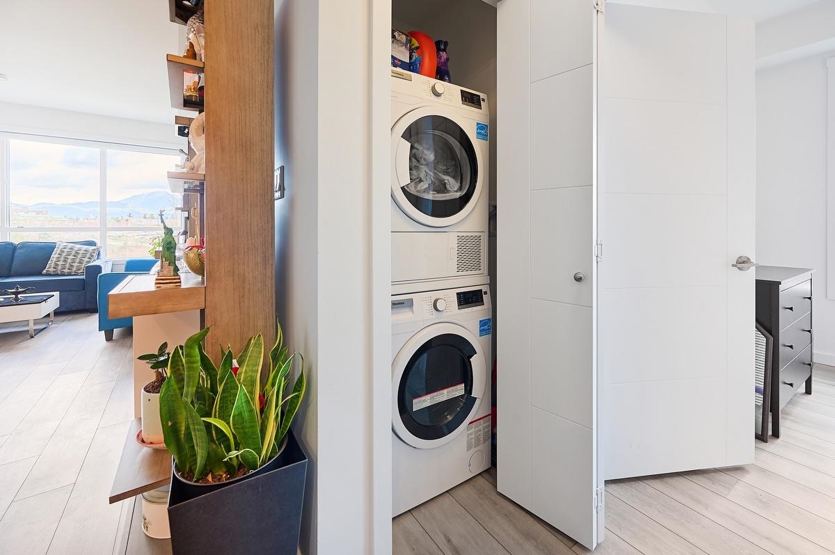 Experience modern condo living at Highpointe in Maple Ridge with this well-designed 2-bedroom, 2-bathroom home offering 992 sq. ft. of functional space. Featuring 9’ ceilings, quartz countertops, premium appliances, and central heating and cooling, the unit blends comfort with contemporary style. Enjoy a bright open layout, a versatile den, and a private balcony with peaceful greenbelt views. Built with durable concrete and steel construction and located on 7 acres of park-like grounds just steps from downt...