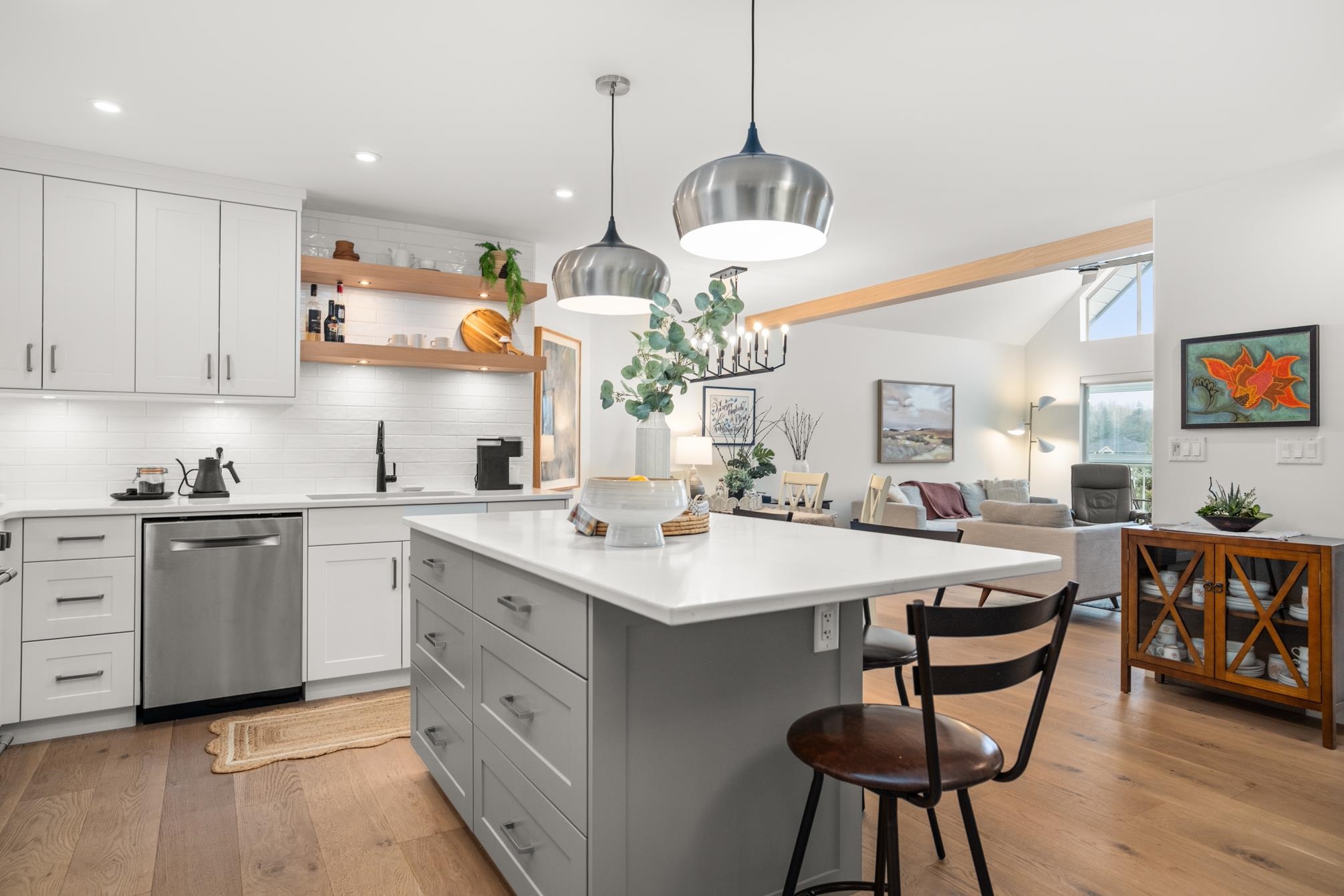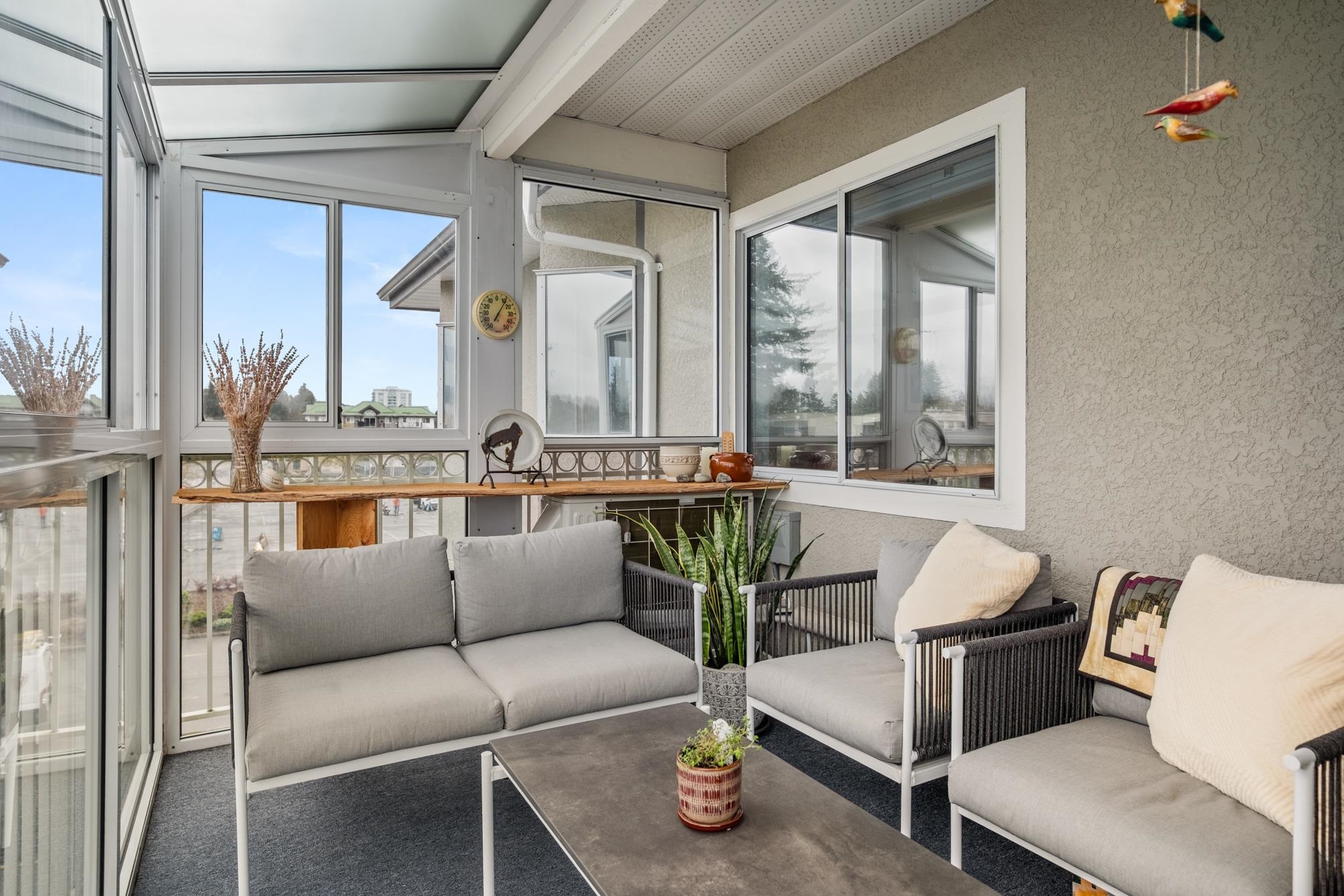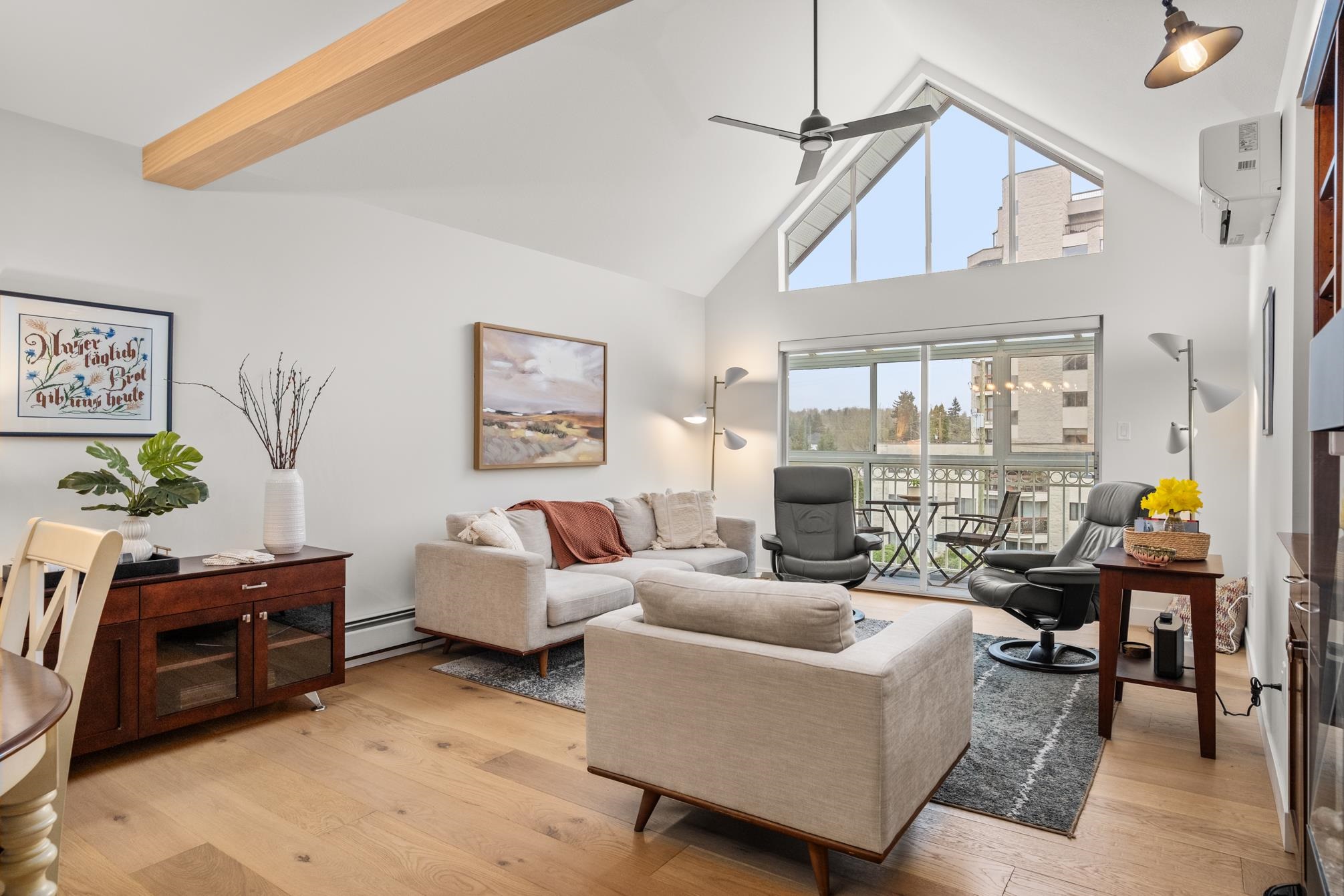 ABSOLUTELY STUNNING vaulted-ceiling penthouse in Royal Court (55+) in West Abbotsford! Step inside this beautifully & completely renovated home, where open-concept living welcomes you with a custom kitchen—quartz counters, Old World cabinets, stainless appliances, & a spacious island perfect for gatherings. Wide plank engineered hardwood floors flow throughout, complimented by an electric fireplace & a heat pump. The bathrooms feature heated tile floors, under-counter lighting, & a sleek, modern design. Ju...