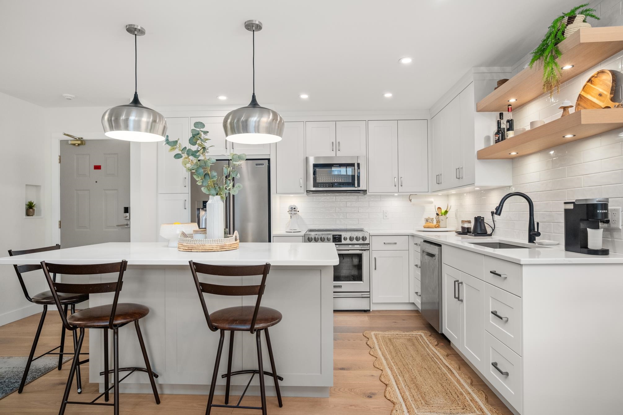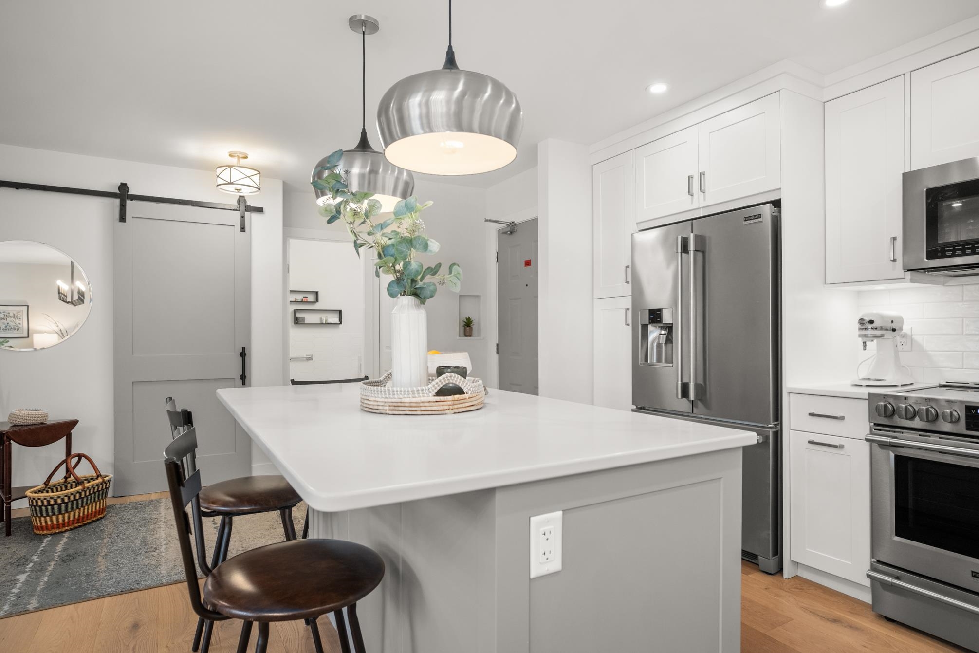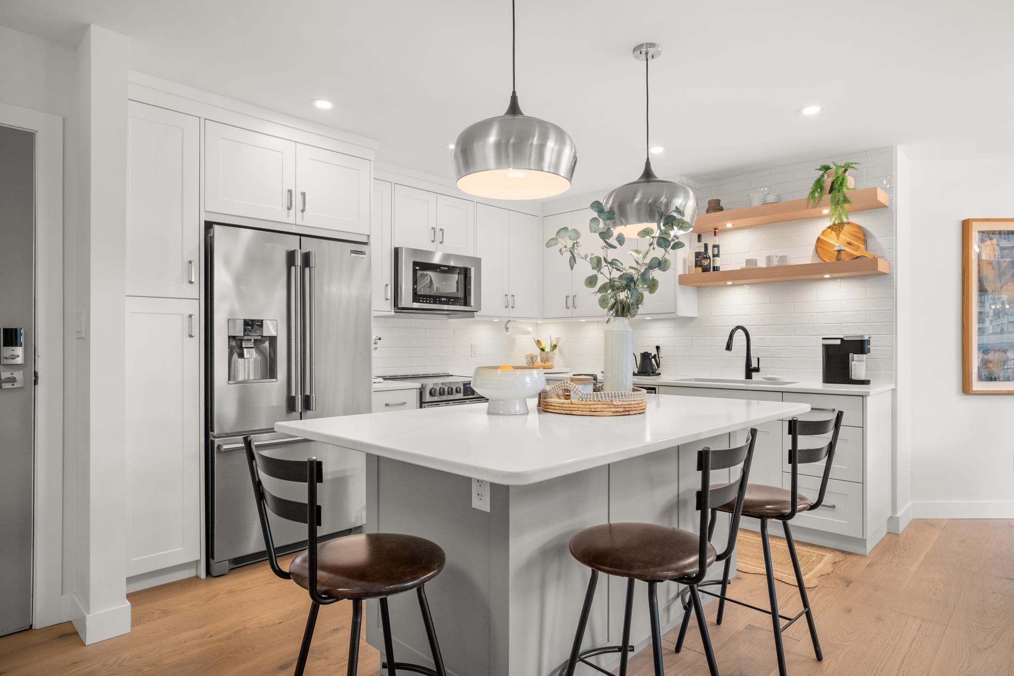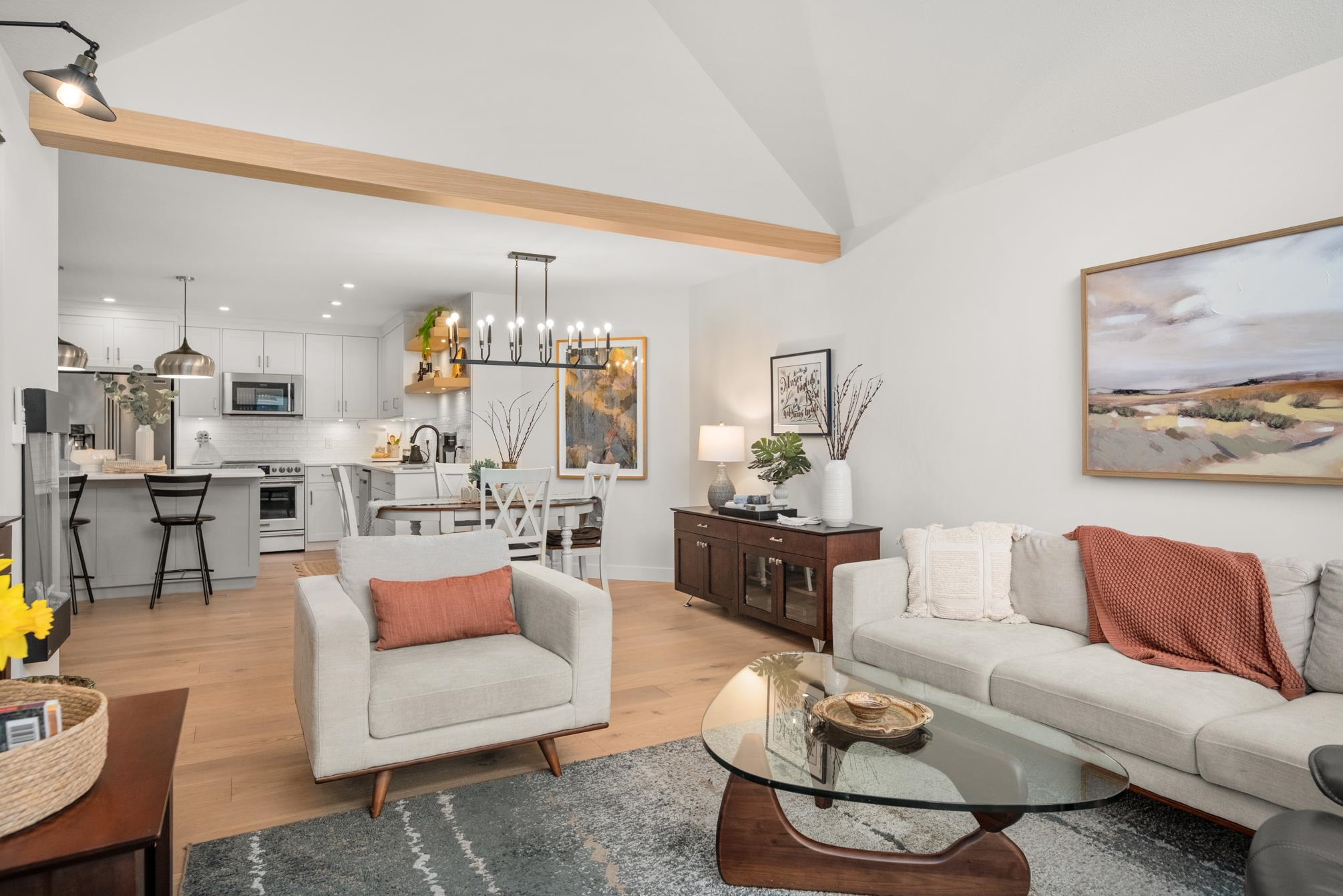 ABSOLUTELY STUNNING vaulted-ceiling penthouse in Royal Court (55+) in West Abbotsford! Step inside this beautifully & completely renovated home, where open-concept living welcomes you with a custom kitchen—quartz counters, Old World cabinets, stainless appliances, & a spacious island perfect for gatherings. Wide plank engineered hardwood floors flow throughout, complimented by an electric fireplace & a heat pump. The bathrooms feature heated tile floors, under-counter lighting, & a sleek, modern design. Ju...