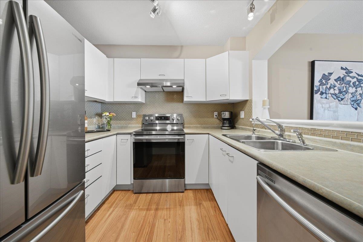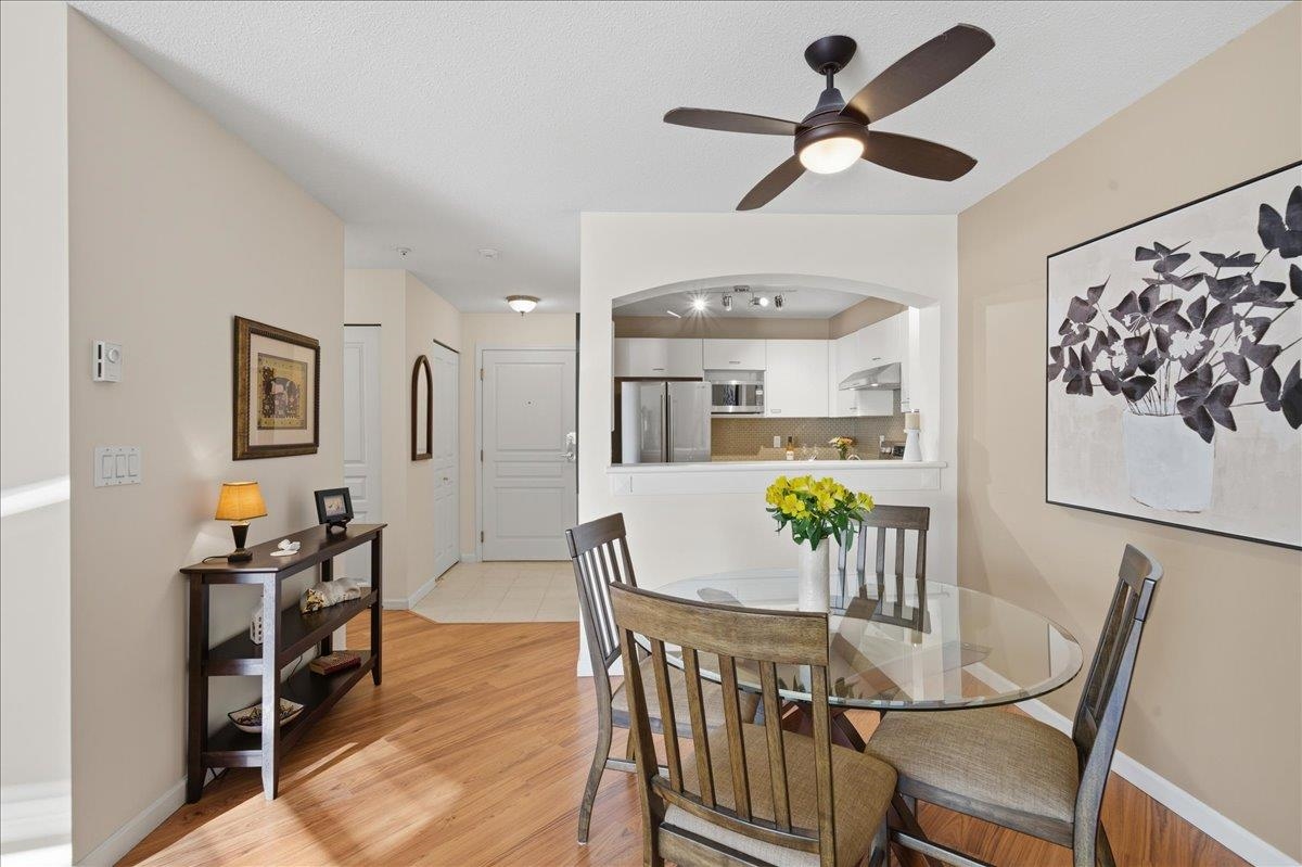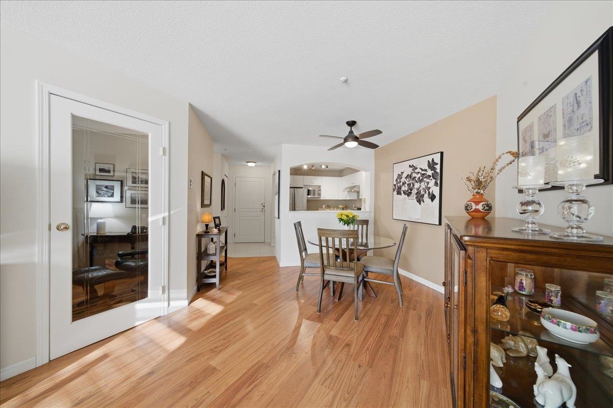 You are invited to fall in love with this elegant & Sun-drenched 1 bed + den home @ The Kennedy by Polygon!! Offering nearly 880 sqft of well-designed living space. The kitchen features S/S appliances, ample cabinet & counter space, an eat-up bar that flows into an oversized living & dining area. Enjoy a fully covered patio—perfect for slow morning coffees or relaxing evenings. Work comfortably from home in the fully enclosed den. Spacious bedroom w/walk-in closet & 4-piece bath complete with soaker tub. Bo...