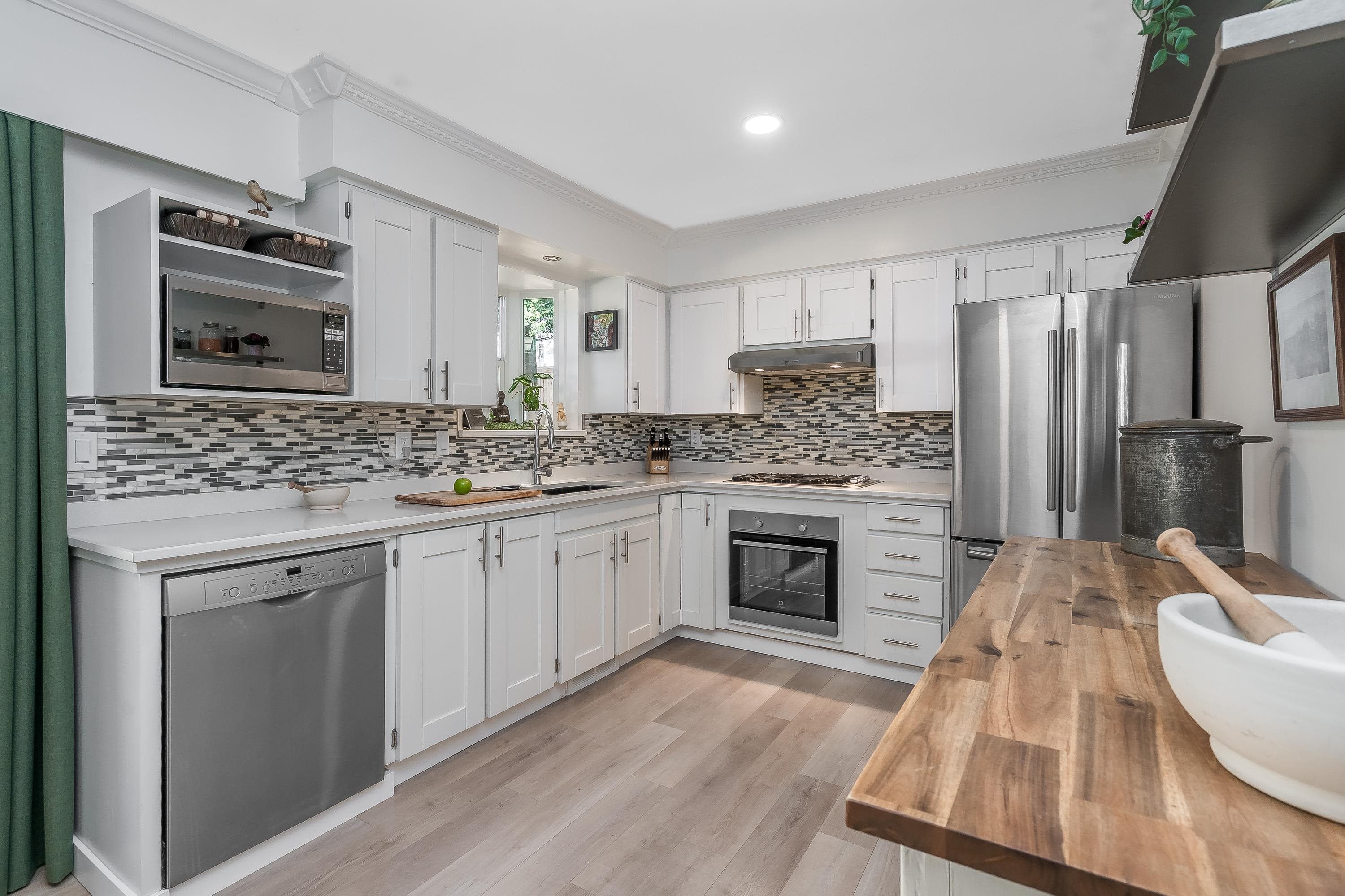 Perfect house for young family or downsizer: Why have a townhome or condo at the same price when you can own this gorgeously renovated rancher without the strata fees? This charming home features 3 bedrooms, 2 bathrooms, spacious kitchen and an amazing private yard. Kitchen boasts 5 burner cooktop and s/s appliances. Move in with peace of mind: New hot water on demand, furnace, perimeter draining/sump, pex plumbing throughout, and a completely re-done backyard with new retaining wall and fencing! Home layou...