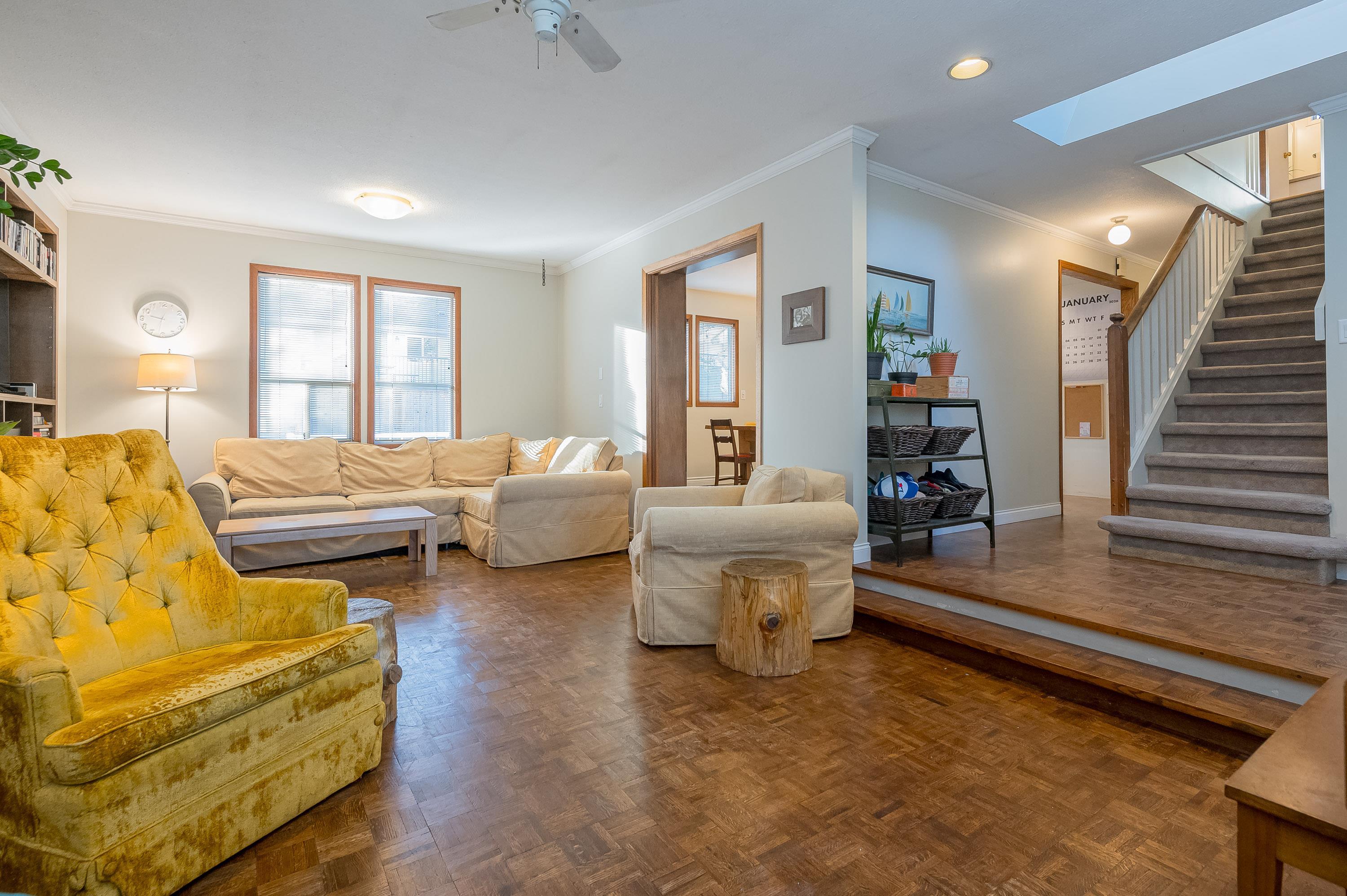 Prime Central Abbotsford location near Mill Lake Park! This 2 storey home with basement features primary bed on the MAIN FLOOR w/walk in closet & ensuite, sunken living/family room with timeless wood flooring, and dining room/kitchen just soak in the sun from the southern exposure - lots of natural light! Back yard access from D/R, or mud room, & laundry also on main floor as well as an office. Upper floor features 3 beds & a large cold storage room in the attic. Open concept bsmt with sep. entrance that is...