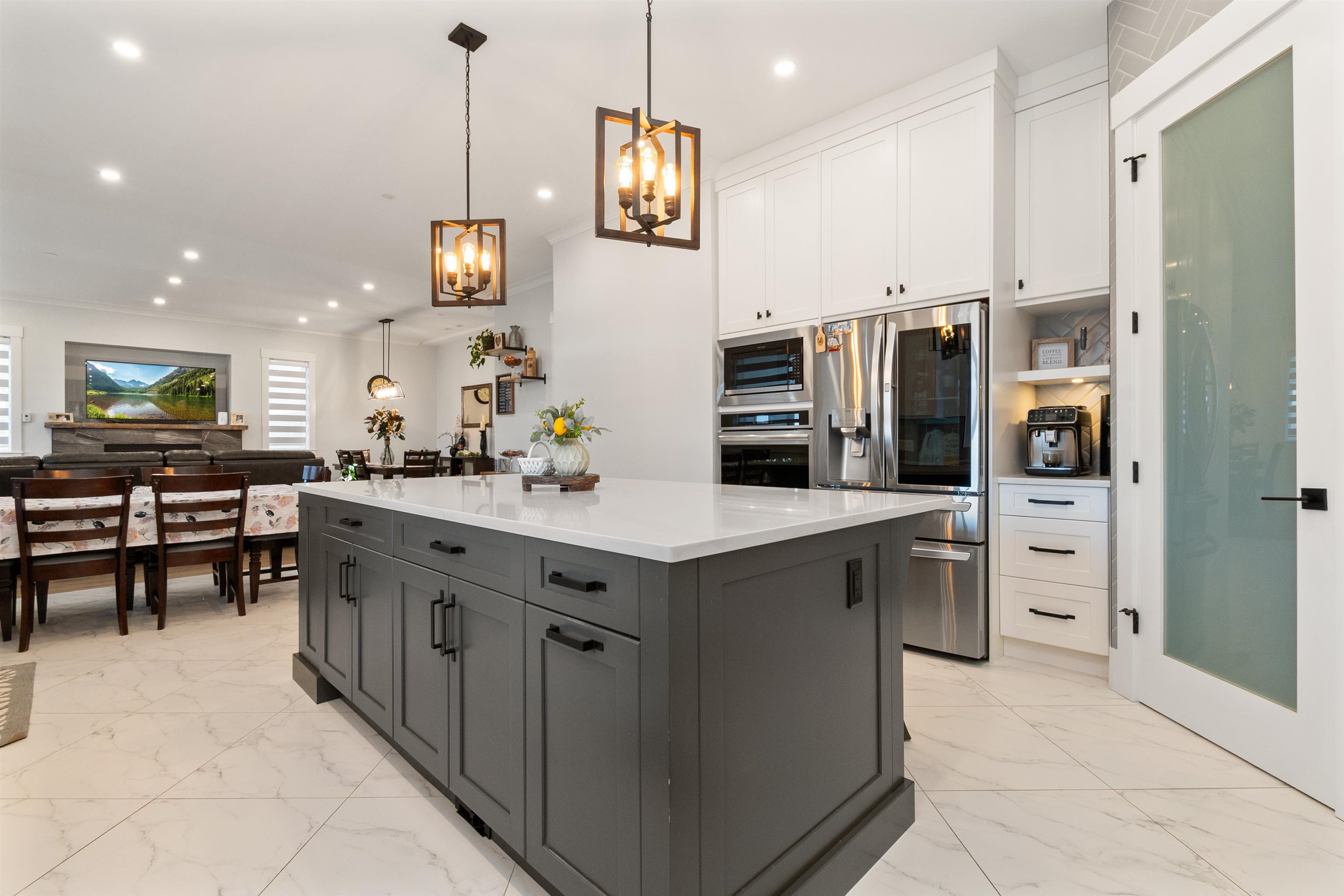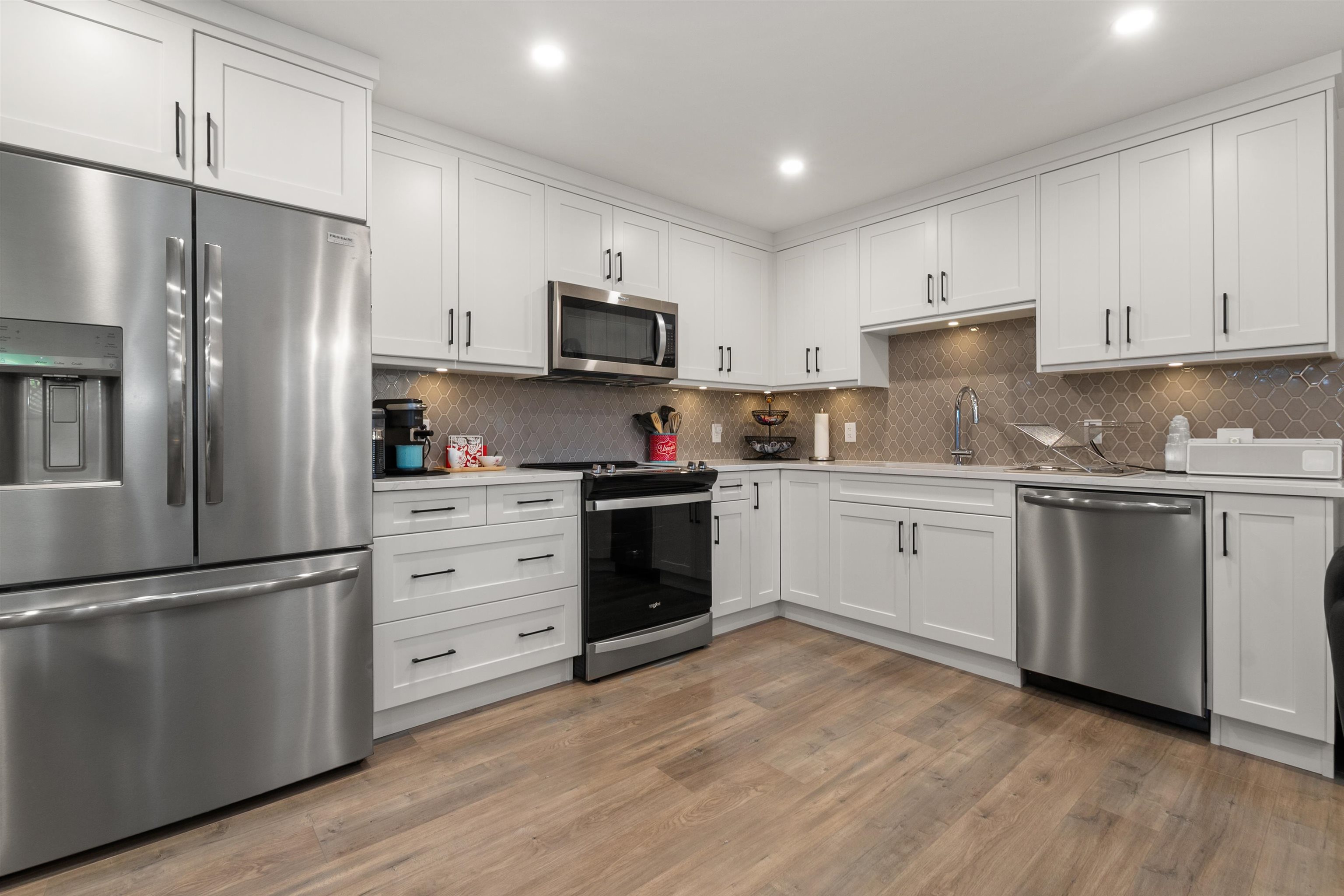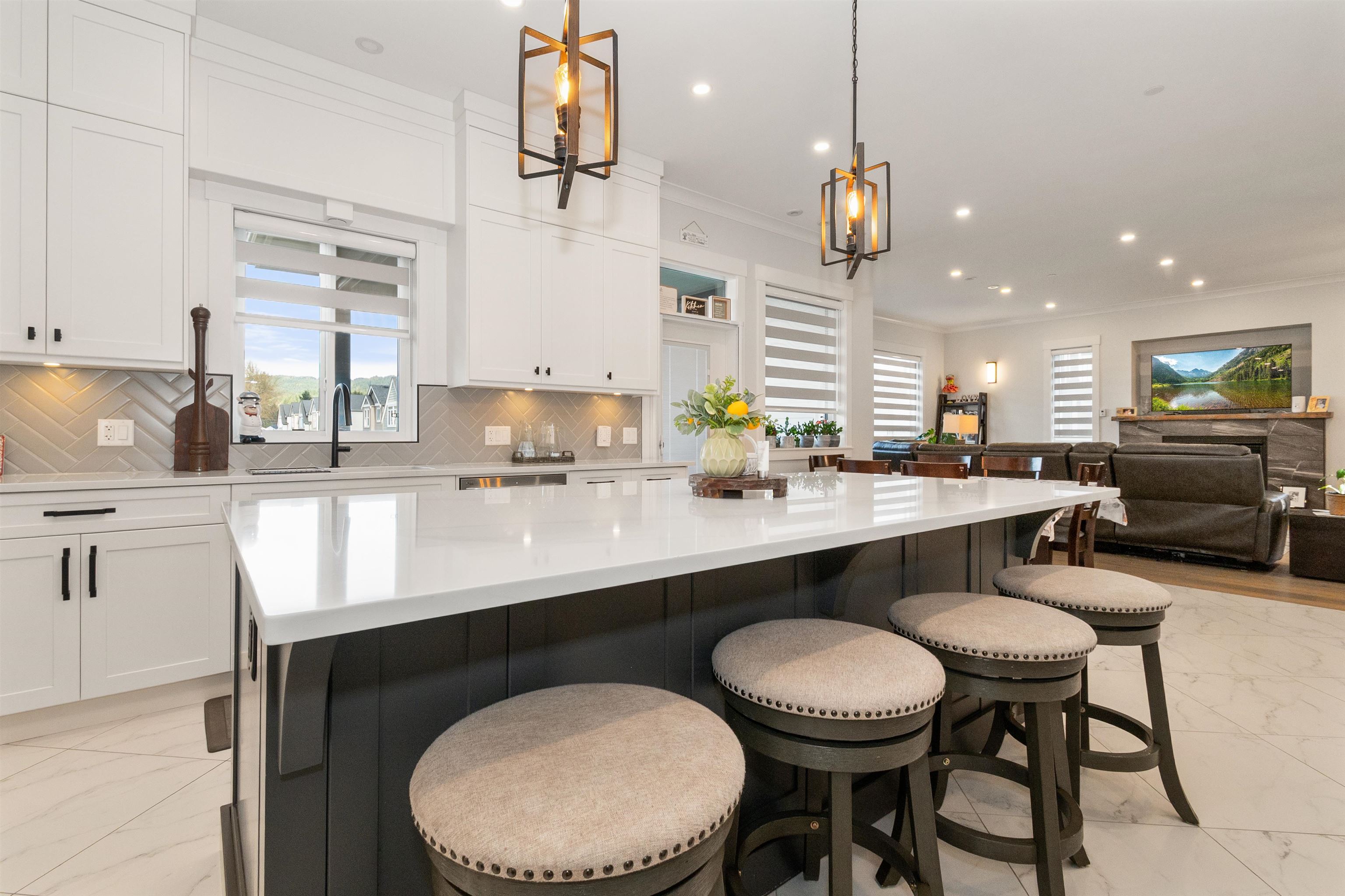 This Beautiful custom-built 2-storey with basement home, offers 7 bedrooms and 4 bathrooms, including a bright 2-bedroom legal suite. This builder’s own home features a stunning kitchen with quartz countertops, hardwood flooring, and heated tile floors, for year-round comfort. Enjoy an oversized double garage and a spacious covered deck perfect for entertaining. Set on a large fenced lot with greenhouse, garden beds, and shed. Conveniently located near parks, transit, and schools. Better than new with no GS...