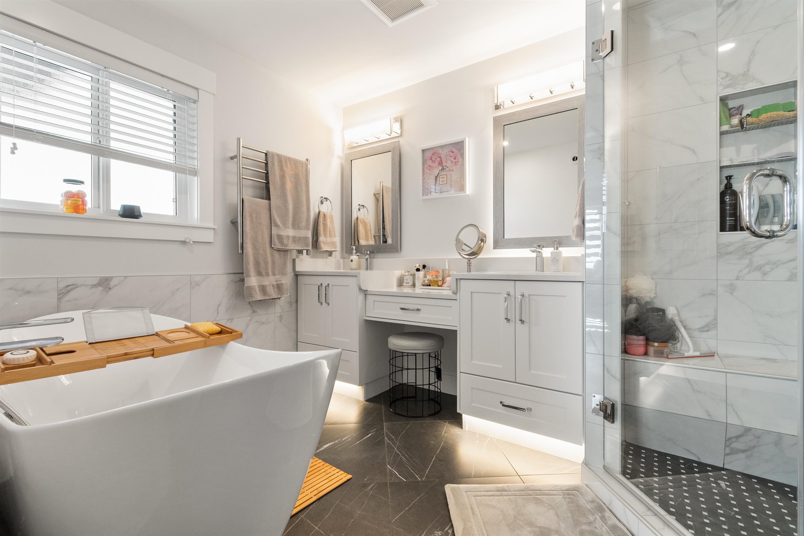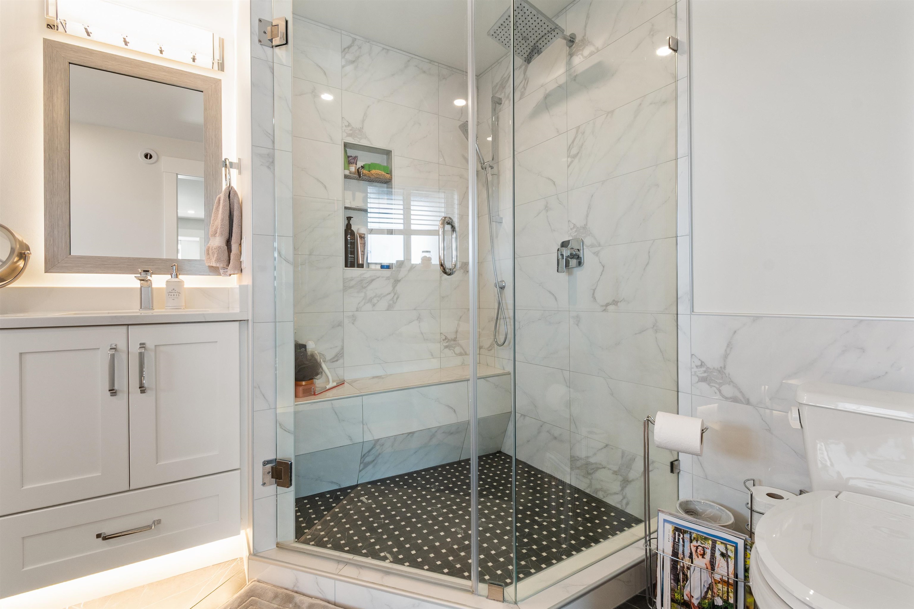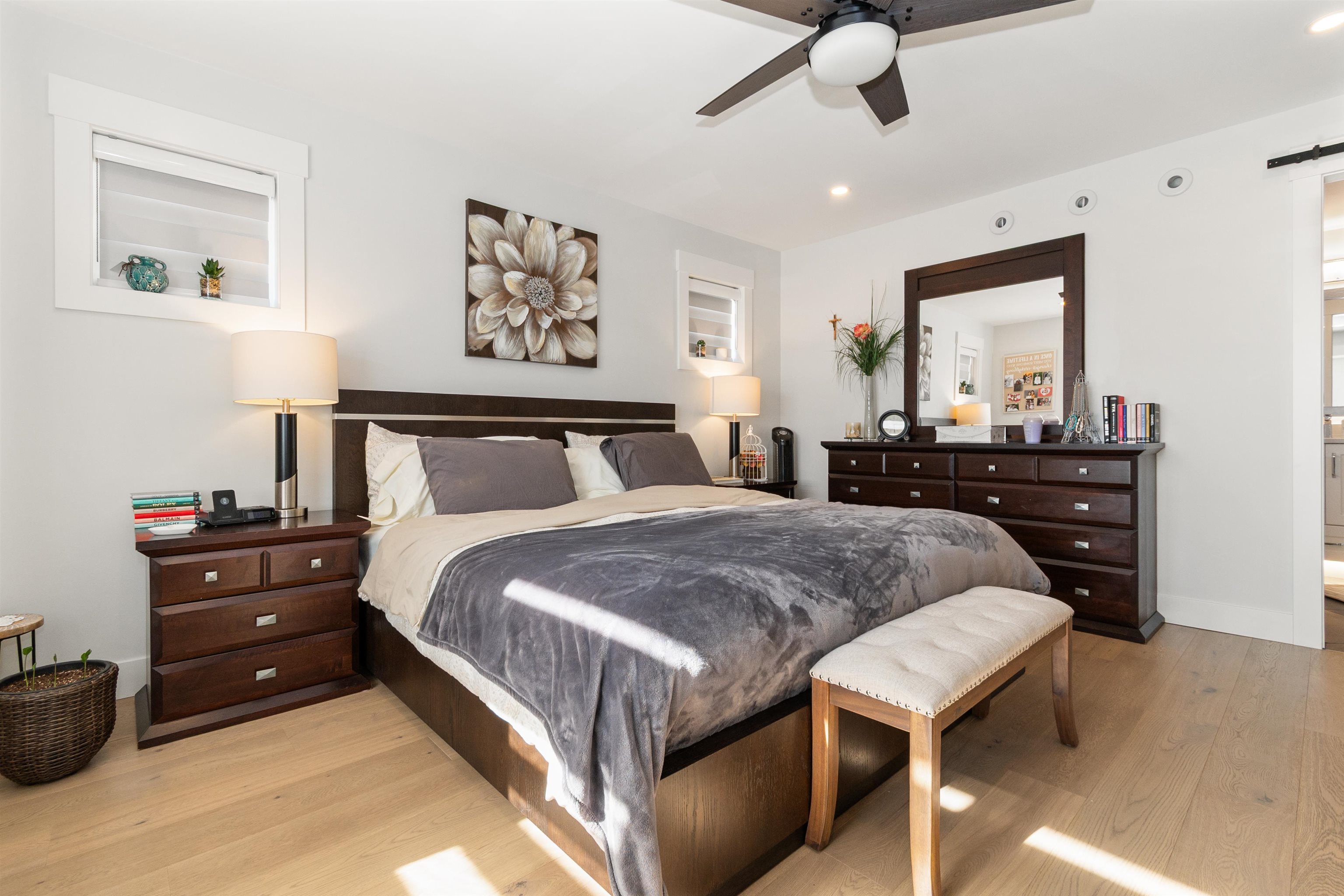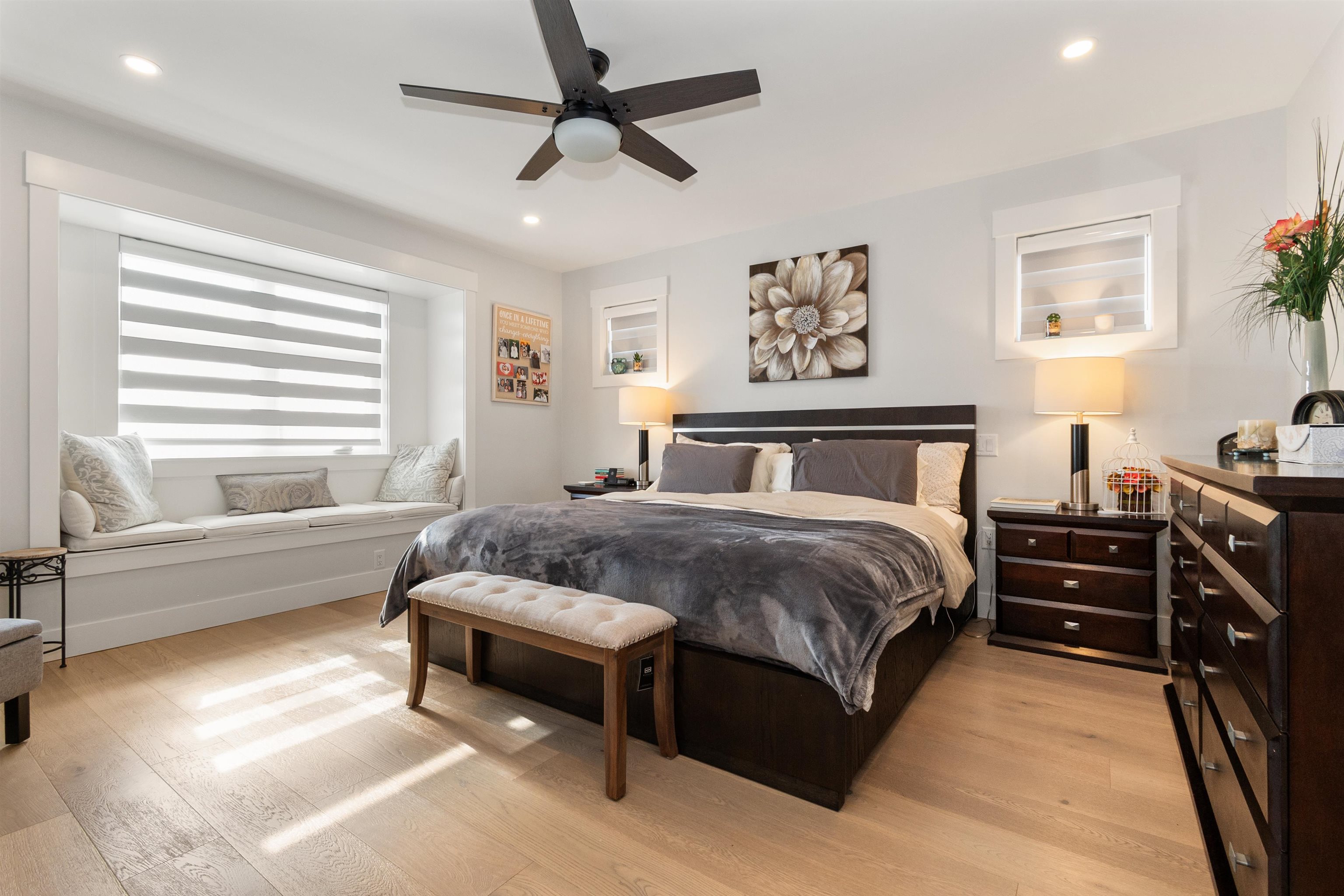 This Beautiful custom-built 2-storey with basement home, offers 7 bedrooms and 4 bathrooms, including a bright 2-bedroom legal suite. This builder’s own home features a stunning kitchen with quartz countertops, hardwood flooring, and heated tile floors, for year-round comfort. Enjoy an oversized double garage and a spacious covered deck perfect for entertaining. Set on a large fenced lot with greenhouse, garden beds, and shed. Conveniently located near parks, transit, and schools. Better than new with no GS...