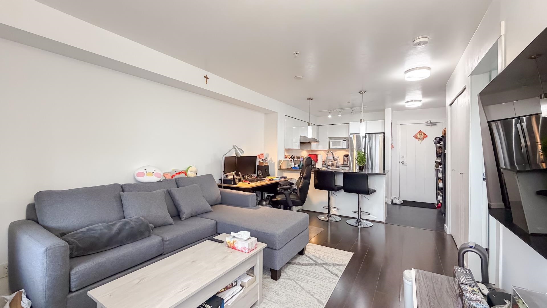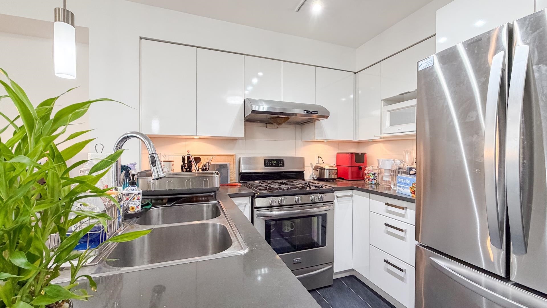 Welcome to this bright west-facing 1 bed, 1 bath home in the heart of Ironwood! Enjoy unobstructed city views from the impressive 80 sq ft full-width balcony - perfect for BBQs and entertaining. Thoughtfully designed with a cheater ensuite and updated refrigerator, washer & dryer. Well-maintained 4-storey wood-frame building over retail with concrete parkade, fitness centre, and storage locker. Steps to supermarkets, everyday services, and popular restaurants including The Keg, Kokoro, Cafe de A, Pho 37, Cr...