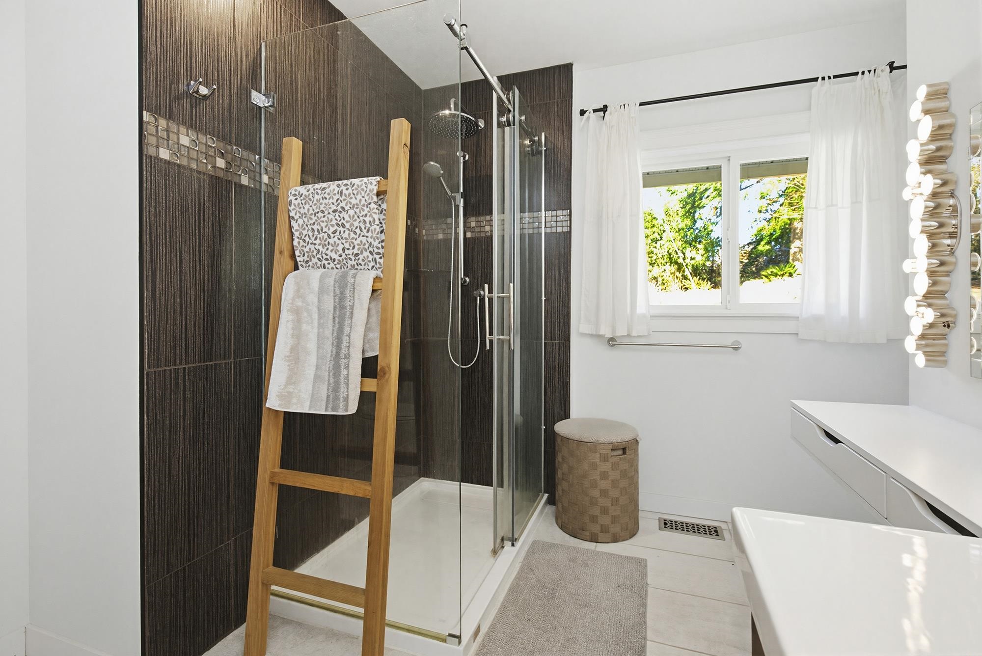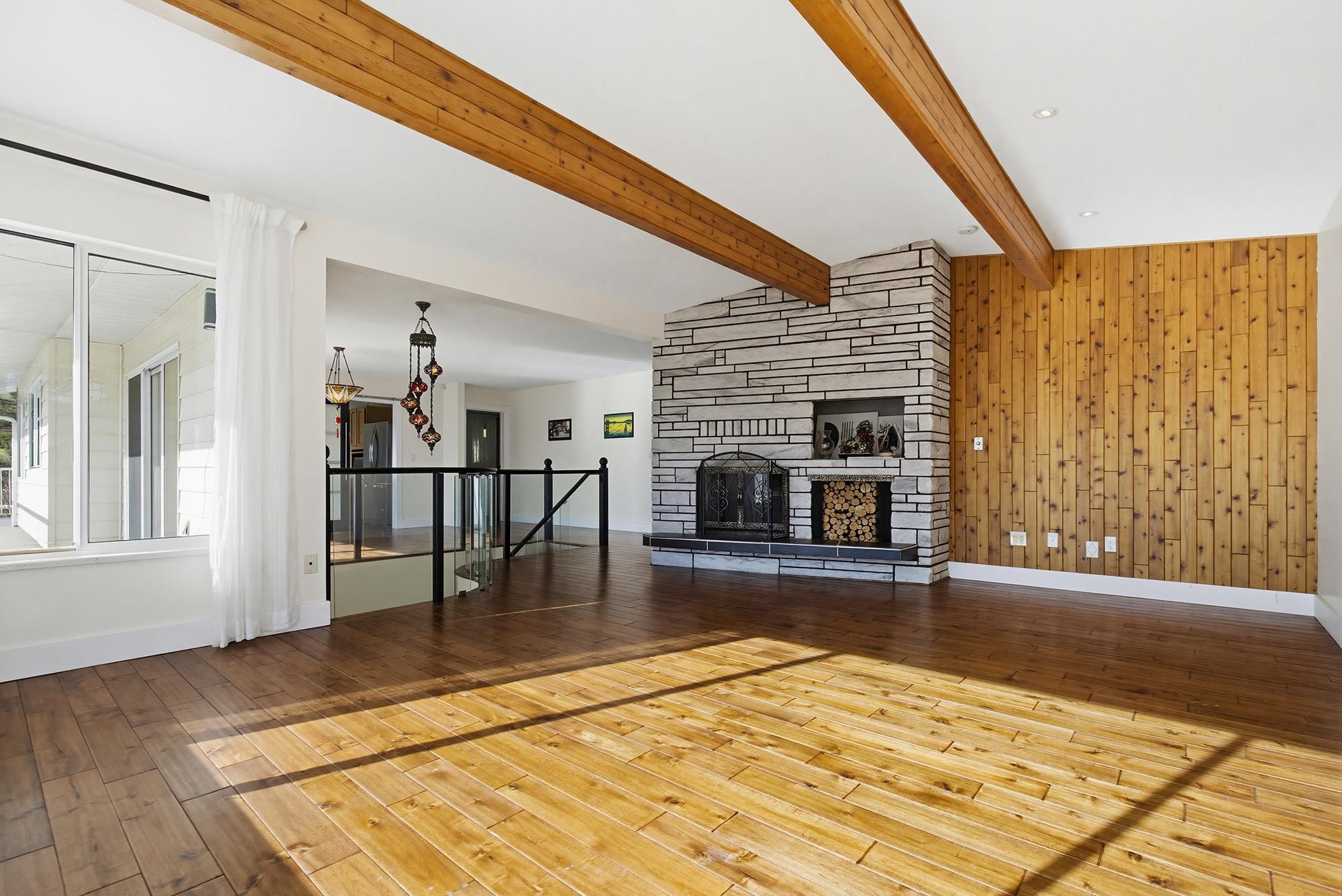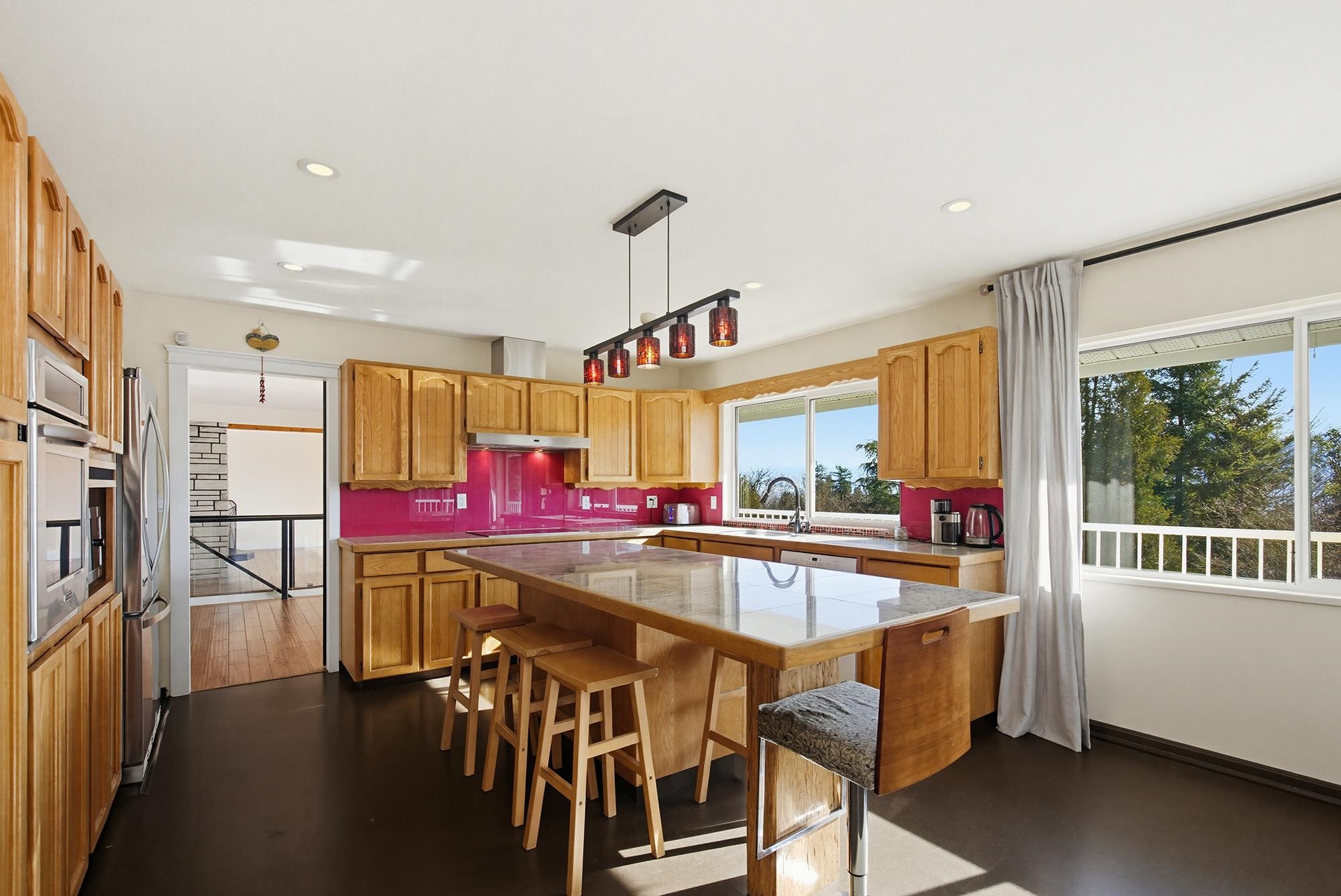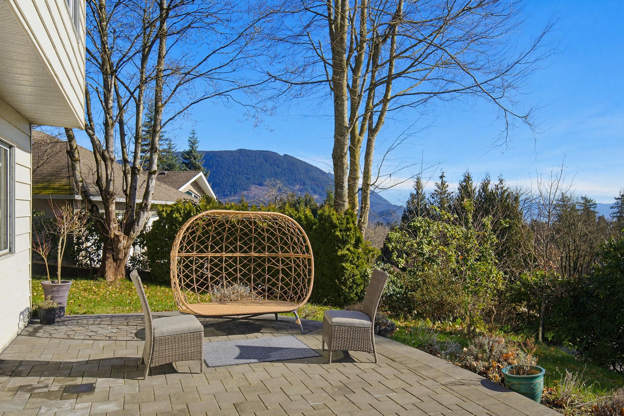 Enjoy sweeping views of Mount Cheam and historic Westminster Abbey from this beautifully updated 4-bedroom home on nearly one acre. The main level showcases a chef-inspired kitchen with heated island countertop and rich red glass backsplash, spacious dining and living areas with exposed beams, fireplace, and acacia hardwood floors. The primary bedroom features a spa-like ensuite with jetted tub, curbless walk-in shower with dual rain heads, and heated tile floors. A second bedroom also includes its own ensu...