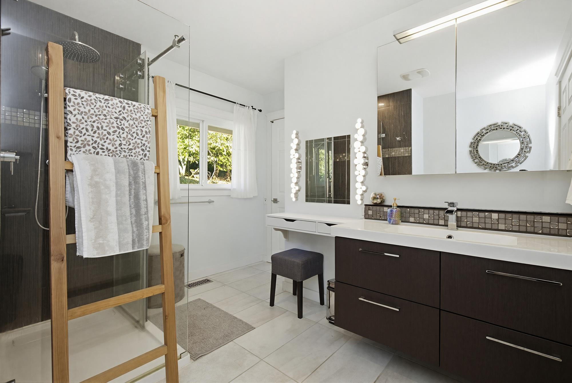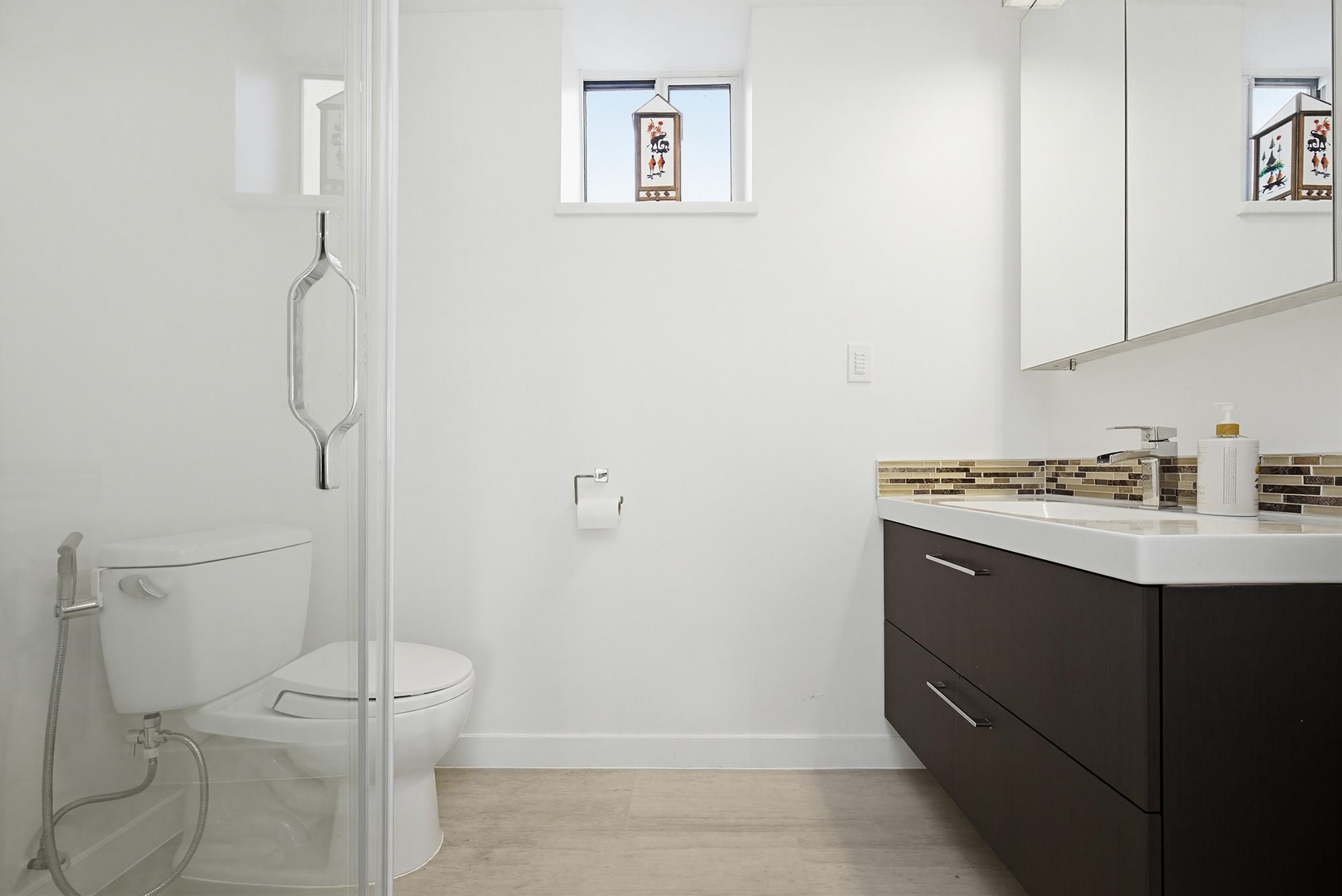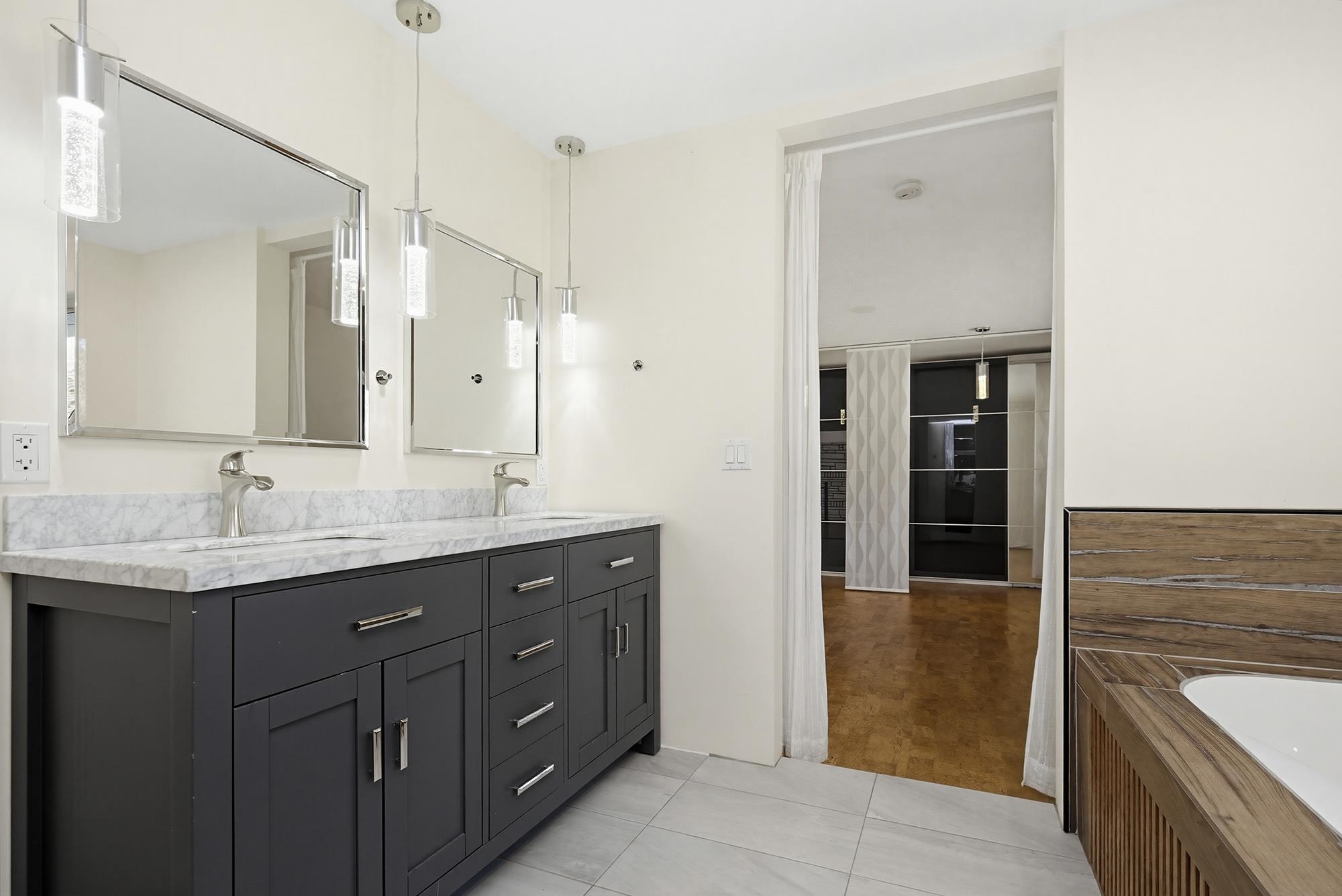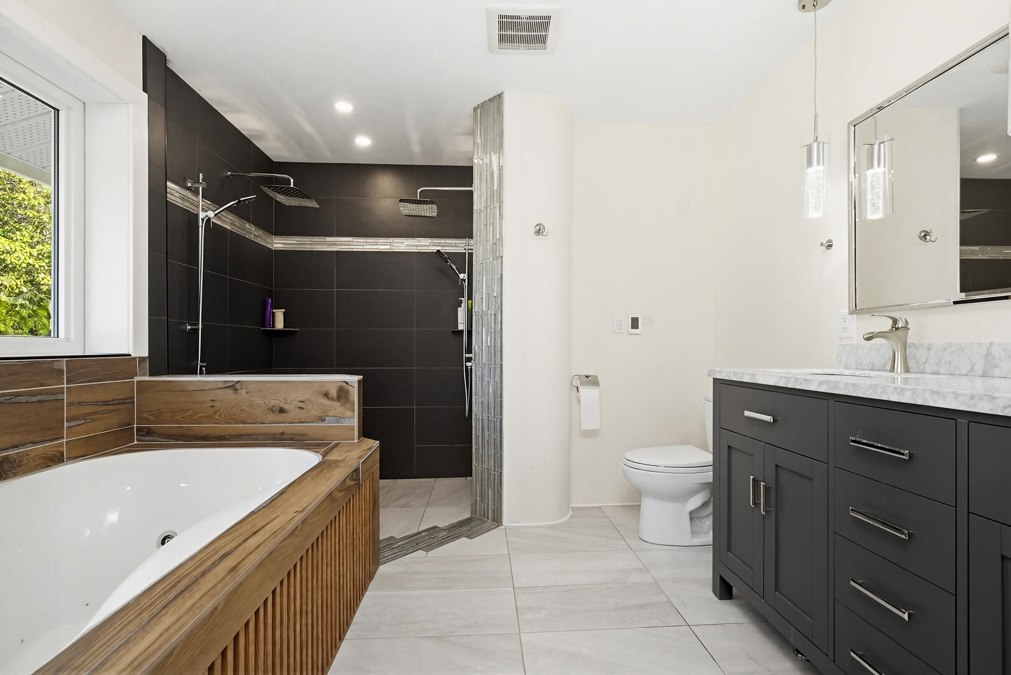 Enjoy sweeping views of Mount Cheam and historic Westminster Abbey from this beautifully updated 4-bedroom home on nearly one acre. The main level showcases a chef-inspired kitchen with heated island countertop and rich red glass backsplash, spacious dining and living areas with exposed beams, fireplace, and acacia hardwood floors. The primary bedroom features a spa-like ensuite with jetted tub, curbless walk-in shower with dual rain heads, and heated tile floors. A second bedroom also includes its own ensu...