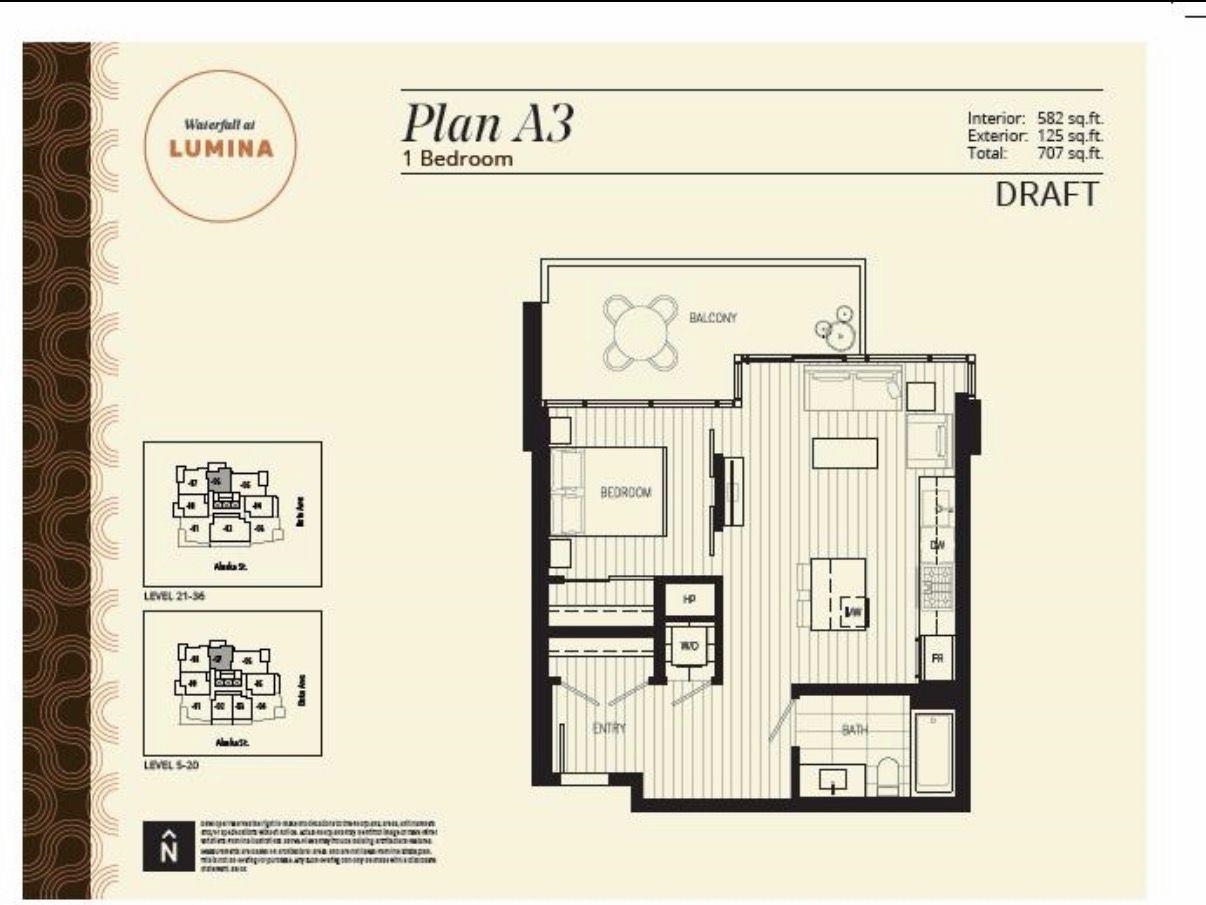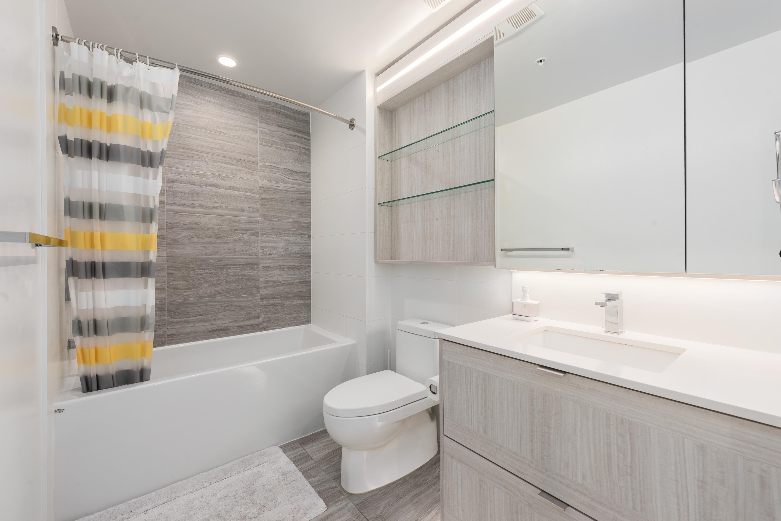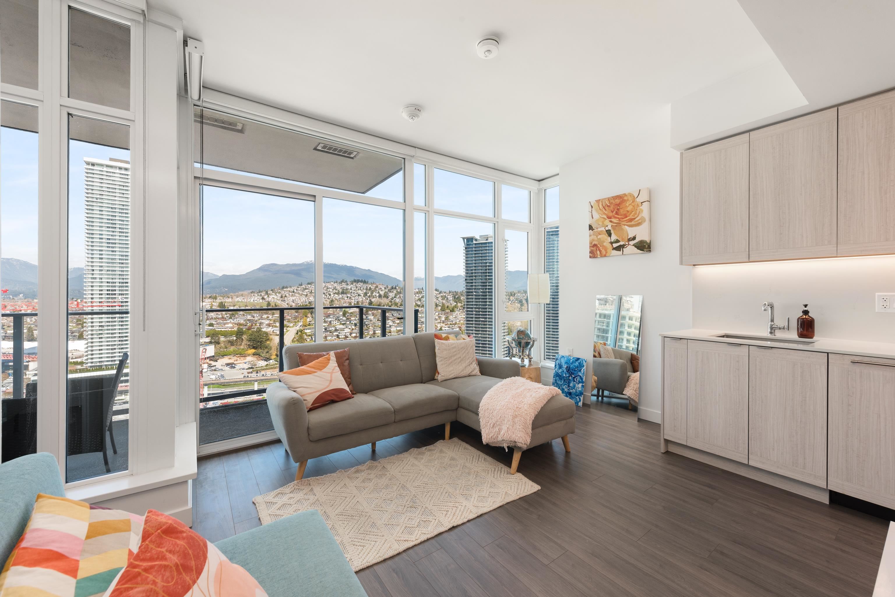 Waterfall At Lumina. Soar above the city from the 35th floor in this bright 1 bed, 1 bath 582 sq.ft. home with sweeping panoramic mountain views. Floor-to-ceiling windows flood the space with natural light, while 9’ ceilings enhance the open, airy feel. The modern kitchen features Bosch stainless steel appliances and gas cooktop, paired with the comfort of built-in A/C for year-round living. Ideally situated in Brentwood, this location is within walking distance to many shops, restaurants, and the SkyTrain,...