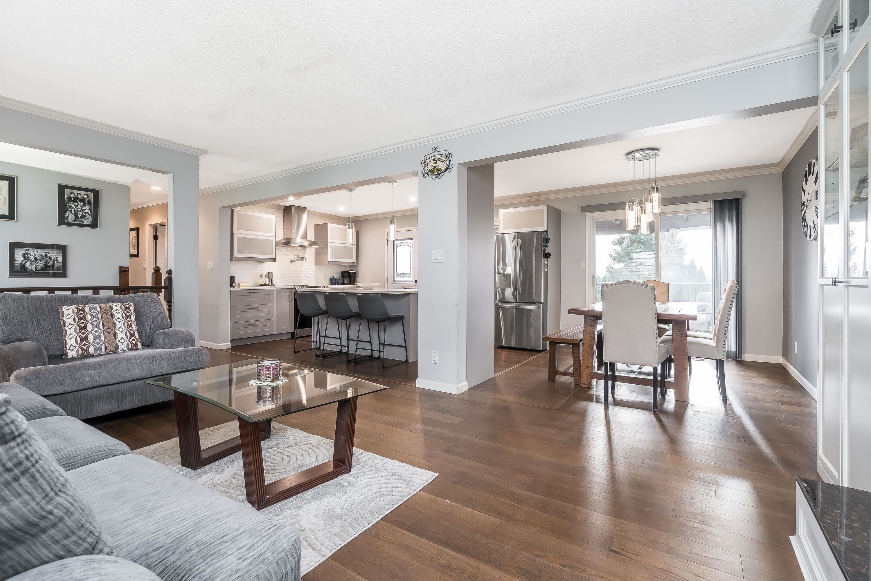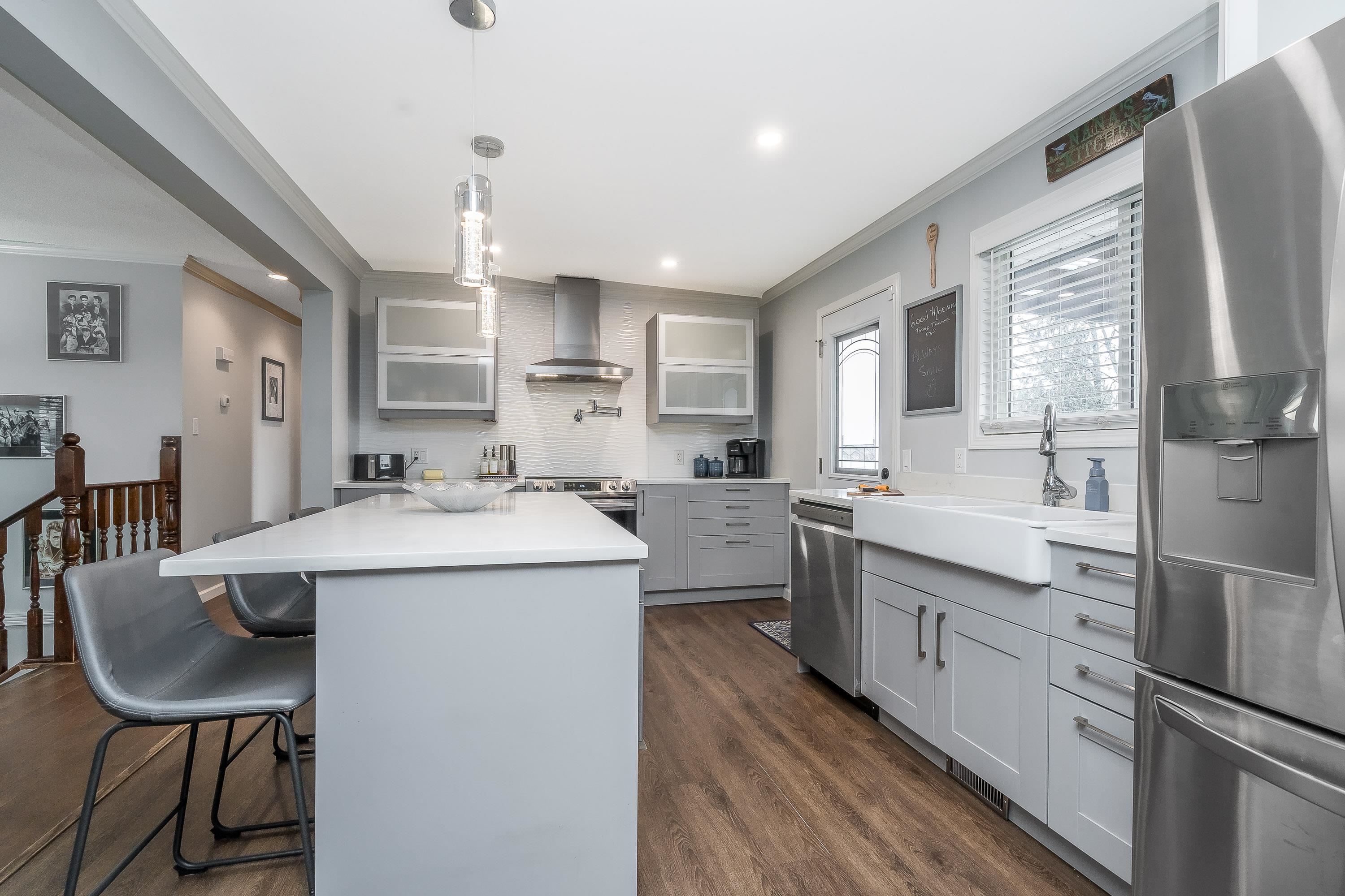 Everett Estates area. Close to Highway #1, this fully renovated home sits on an 8,000+ sq ft RS3 lot with potential for subdivision or a coach home. Featuring 3 bedrooms up with potential for 2 down, an open-concept design, gourmet kitchen, lacking nothing for a chef, quartz countertops, top-tier stainless appliances, custom built-ins, engineered hardwood on the main floor and two fireplaces. Enjoy southern exposure from the covered entertainment deck overlooking a low-maintenance stamped concrete yard with...