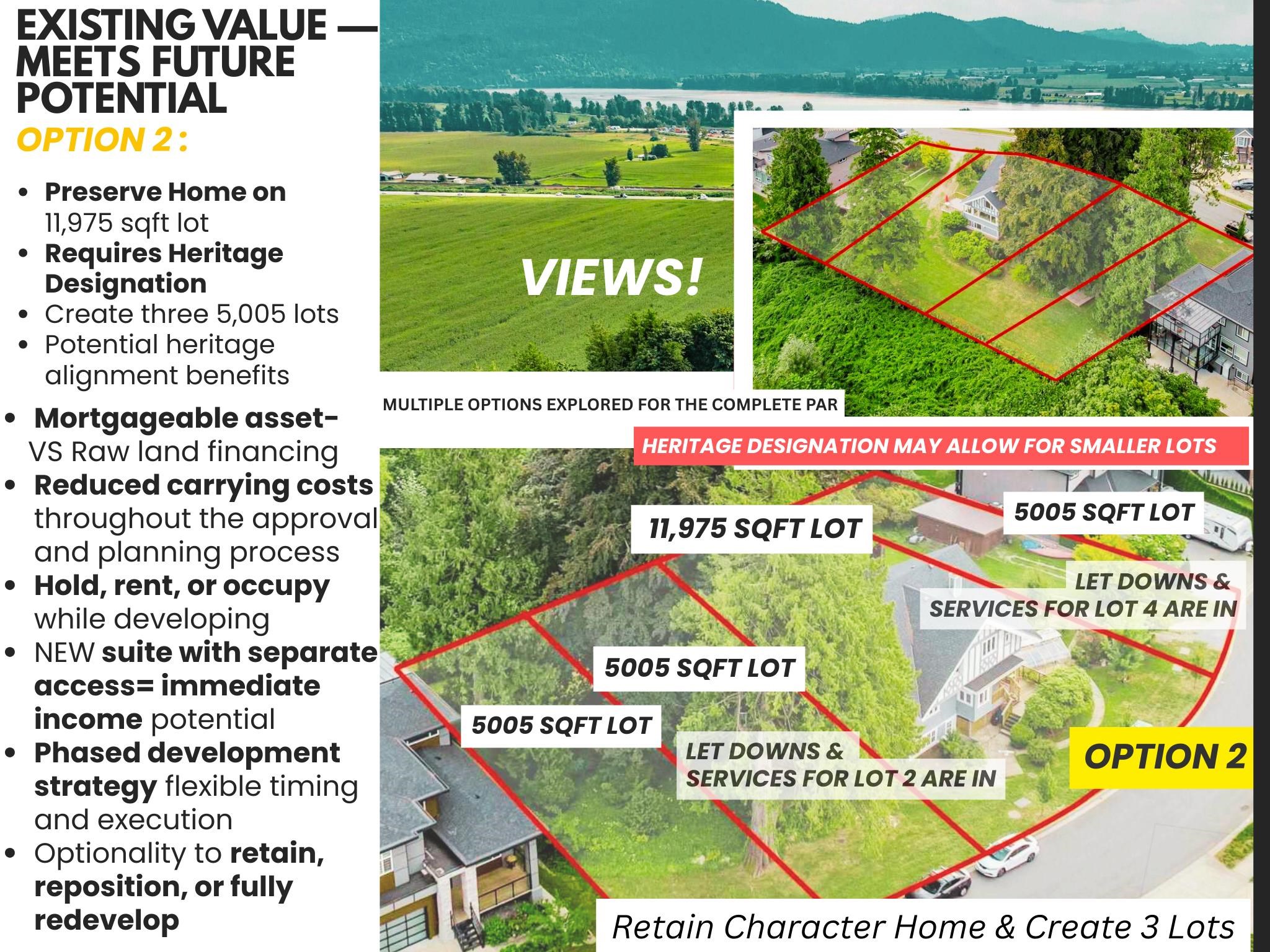 Rare 27,000 sqft Property on Prestigious Hatzic Bench offering Sweeping Valley & Mountain Views. Multiple Development Paths w Completed Preliminary Application Review(PAR). SUBDIVIDE WITHOUT REZONING Retain Existing Residence & Create TWO additional 7,201 SQFT lots. SERVICES & let-downs are IN. Other options incld 3 & 4 Lot Potential. Stunning 5,437 SQFT 6 Bdrm, 7 Bath Historic 1911 Tudor-style Home could apply for Heritage Designation to increase Density(w/ City Support) Beautiful Original finishing. Multi...