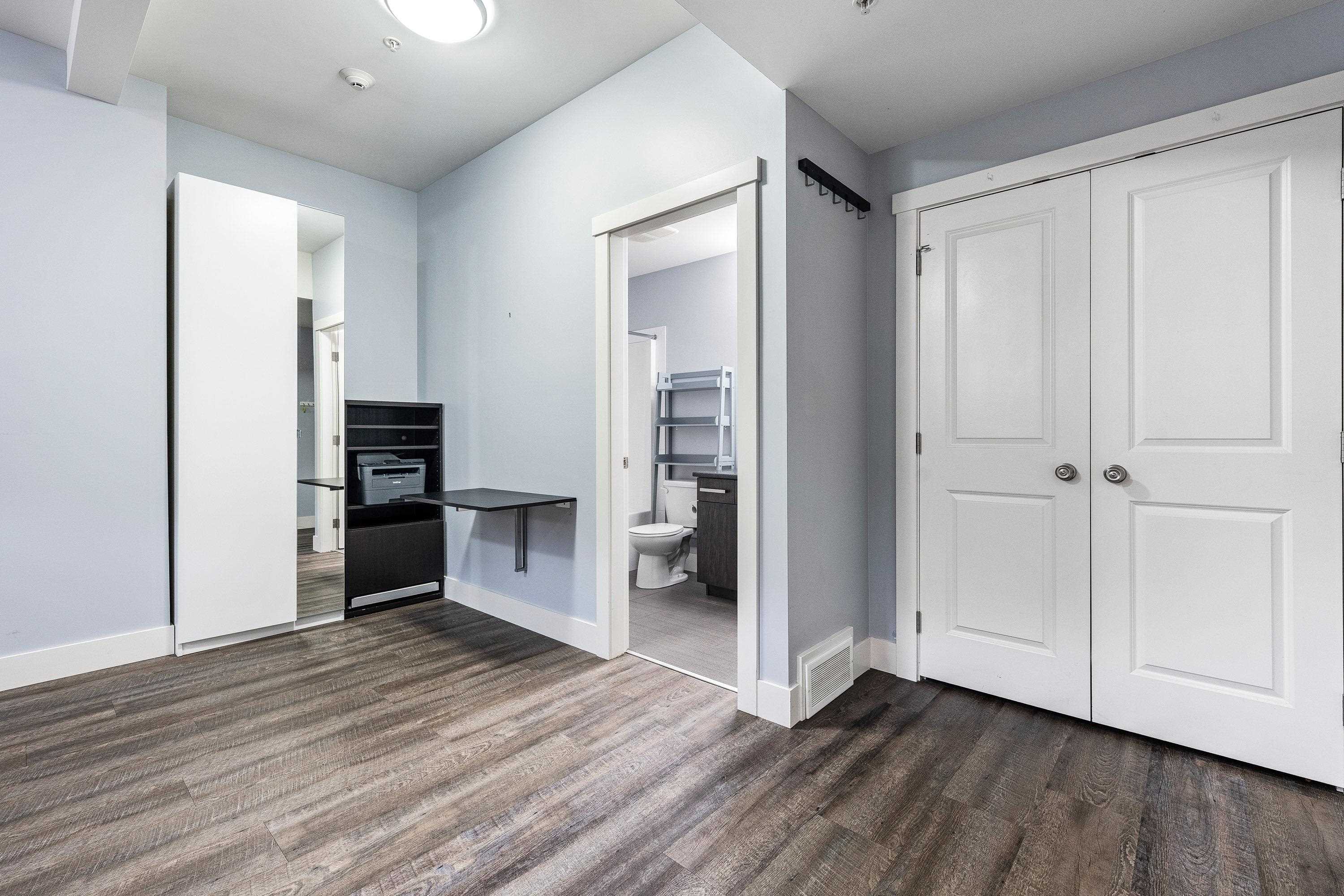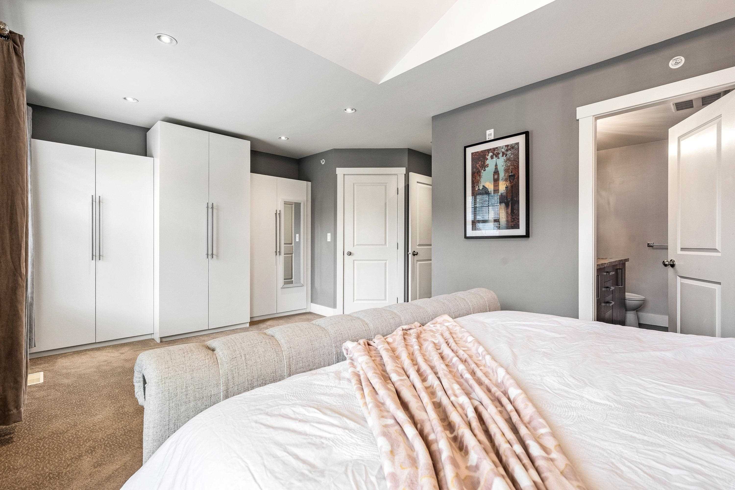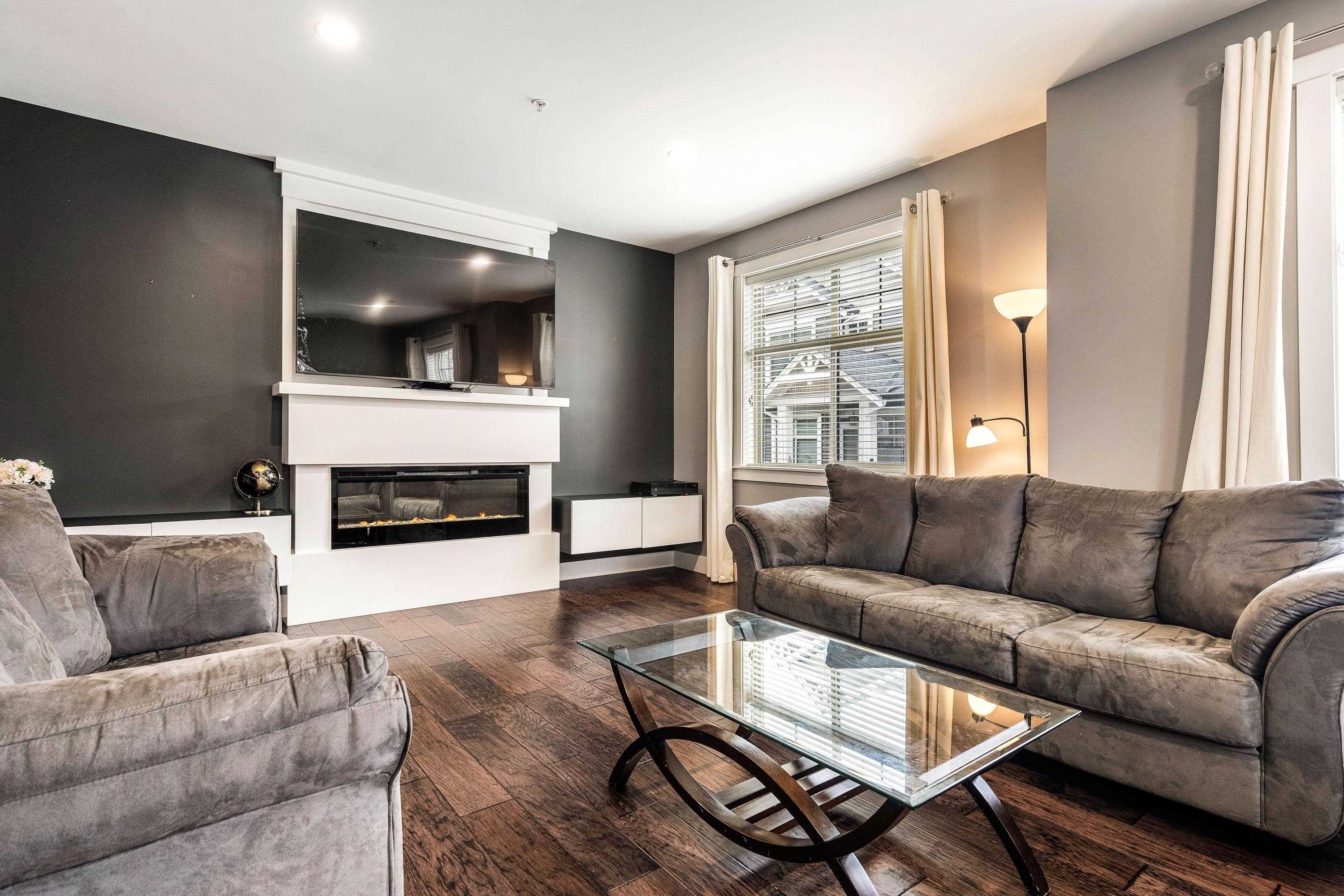 Experience luxury living at Eagles Gate! This 3 bedroom 4 bathroom CORNER UNIT with a double side-by-side garage boasts a private treed backyard, creating a forest-like retreat. Enjoy year-round comfort with A/C and entertain effortlessly with built-in speakers throughout. The kitchen showcases a powered island, granite counters, and stunning hickory wood floors. Step onto the 12x12 deck with mountain views, or cozy up by the fireplace surrounded by built-in custom cabinets. The primary bedroom exudes elega...