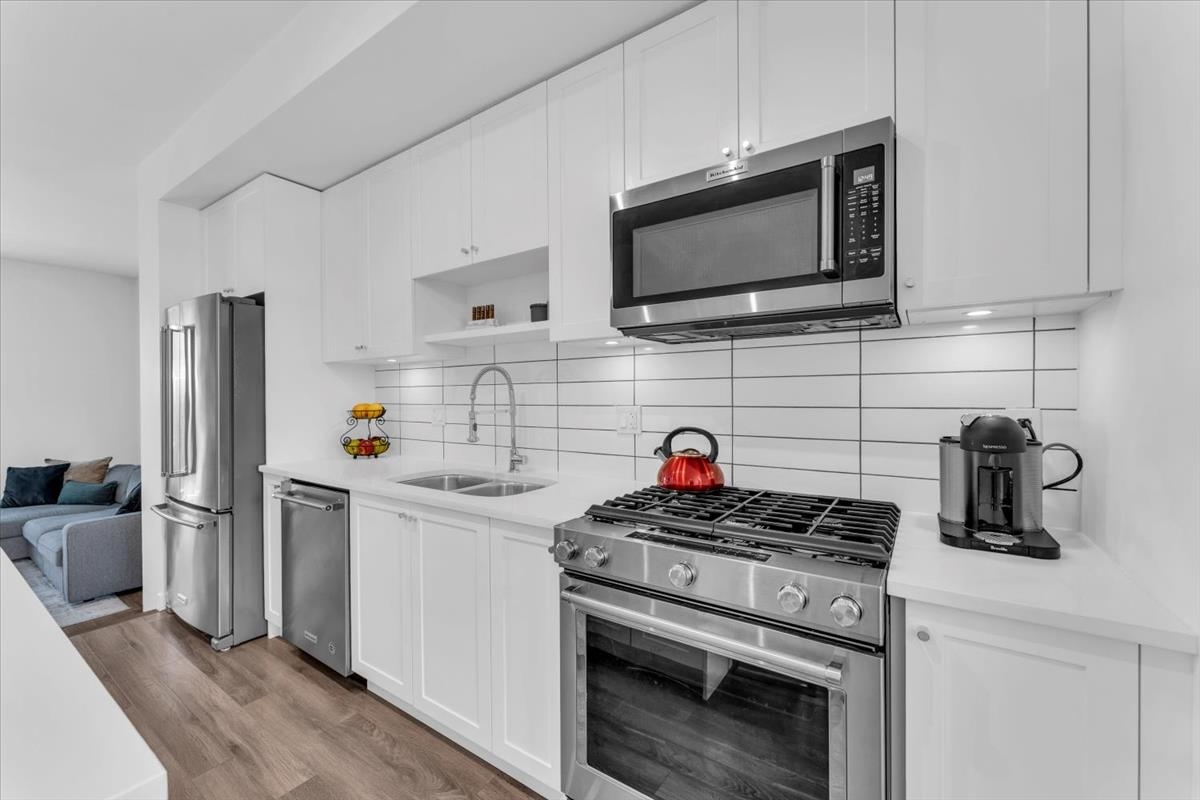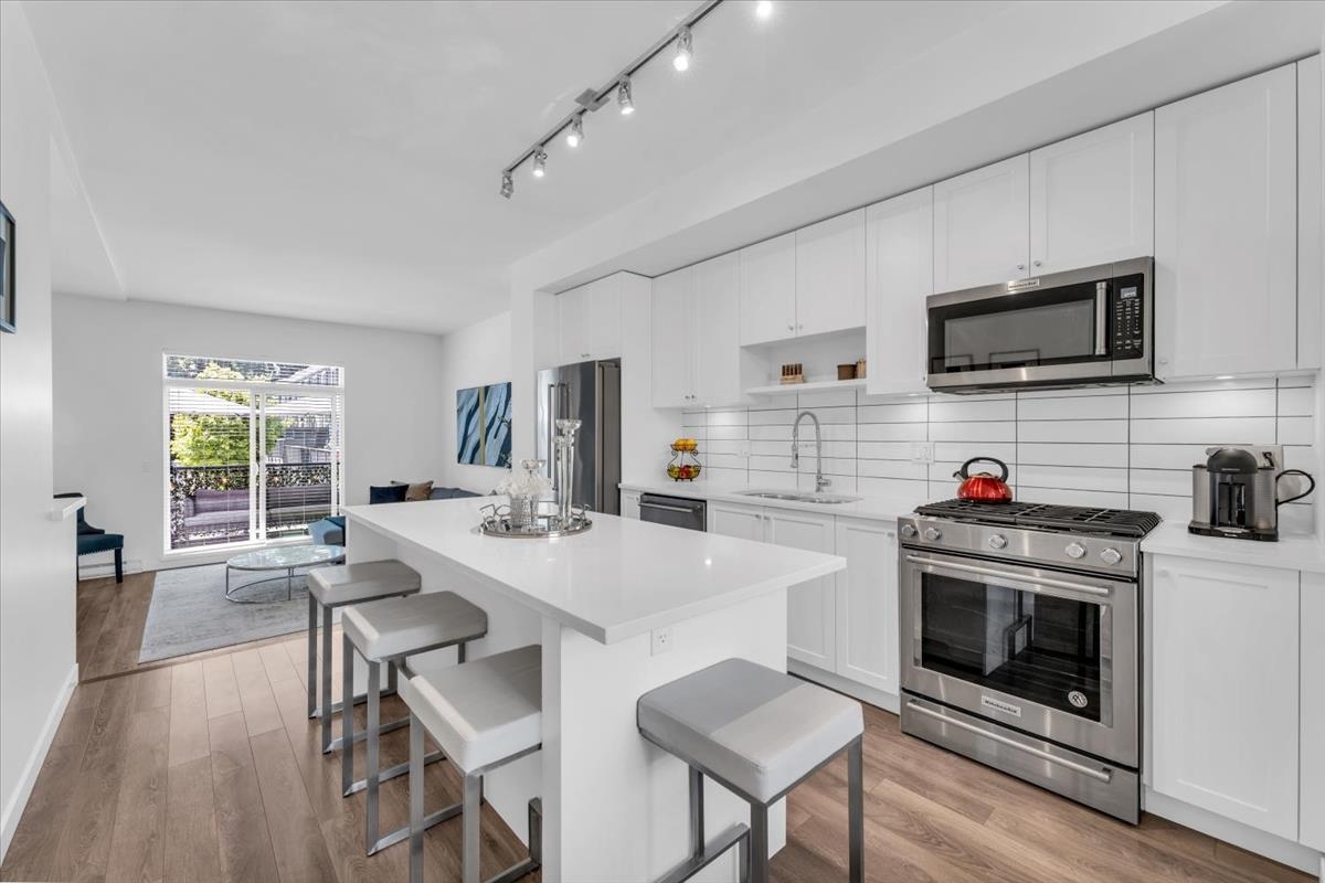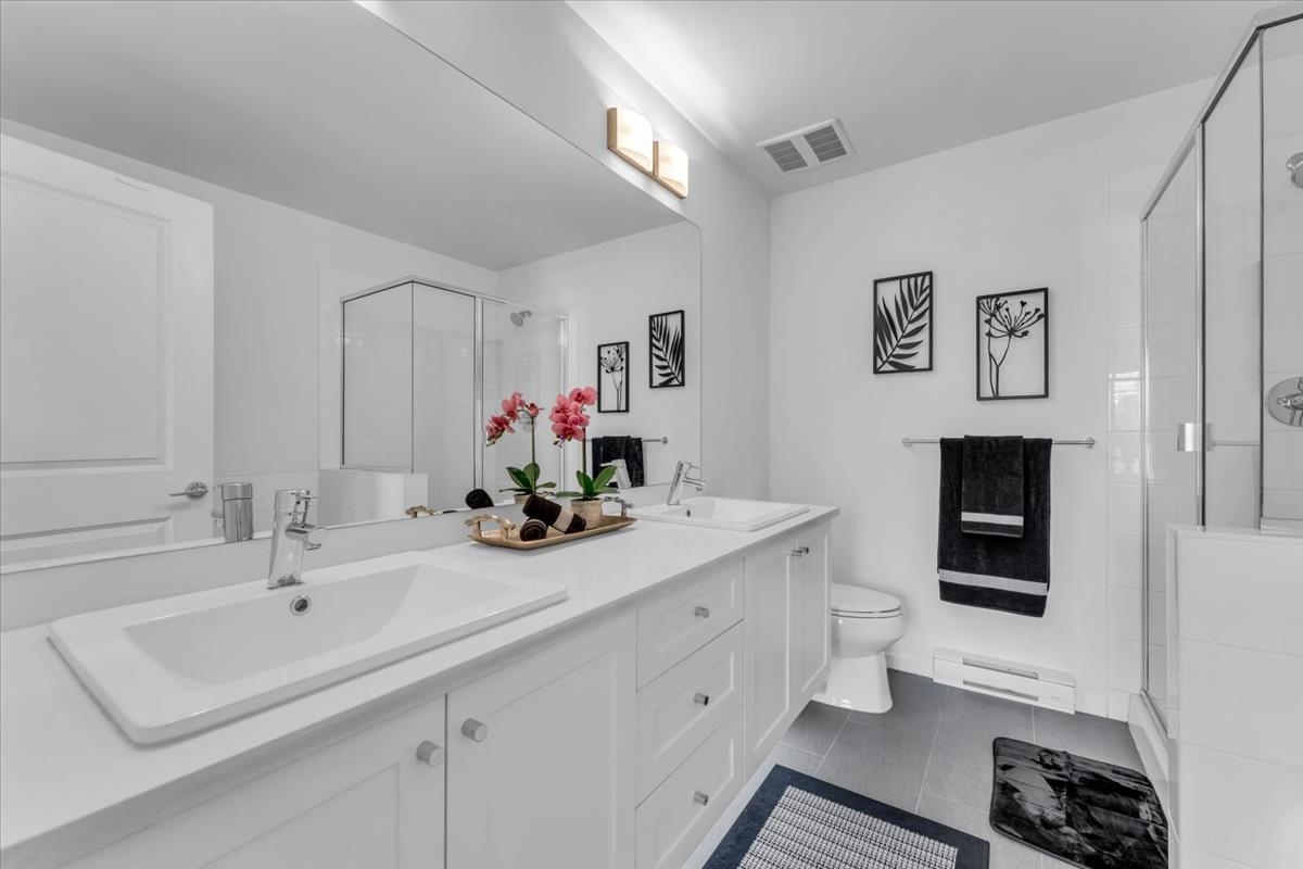 38 15268 28 Avenue Surrey V4P 0E8. Welcome to Old School by Dawson + Sawyer. This 3 bed, 3 bath home features TWO oversized PRIMARY BEDROOMS with PRIVATE ENSUITES. The open-concept main level showcases SLATTED WALLS, quartz island, and stainless steel appliances. Step out to a SUNNY balcony for BBQs or lounging. Downstairs boasts a SLEEK EPOXY GARAGE with extra space for storage or a gym. AMAZING location close to shops, parks, schools, and transit. Kept in IMMACULATE condition—this one’s a standout.