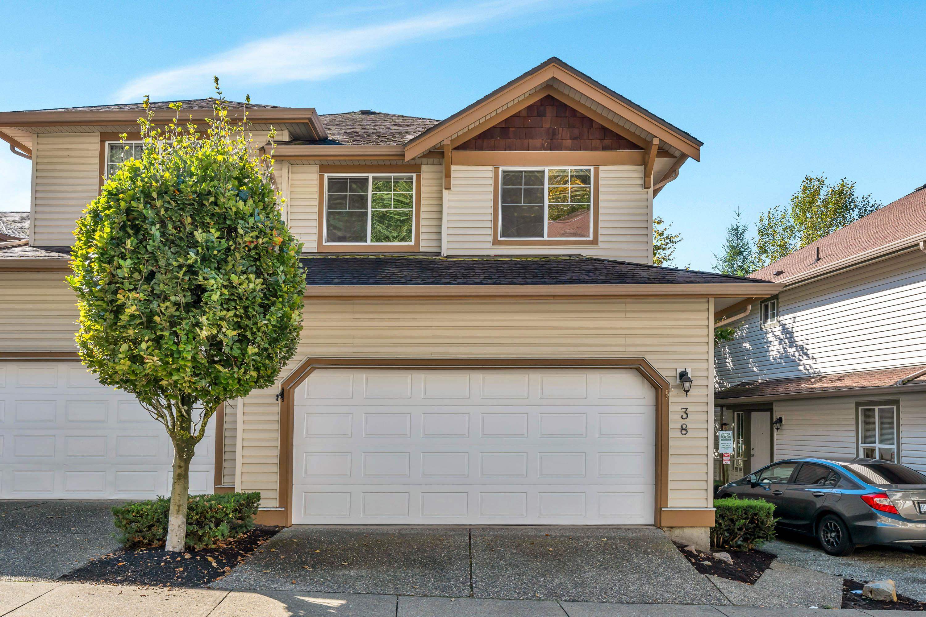 Welcome to The Falls in scenic East Abbotsford! This spacious 3-bed, 3-bath townhome features a well-designed main level with kitchen, dining, living, and a huge deck with valley views. Upstairs offers a generous primary bedroom with walk-in closet and ensuite, plus two more bedrooms. The basement includes a large rec room, laundry, bathroom, storage, and private patio. Double garage and close to parks, schools, shopping, and more—this home has it all!