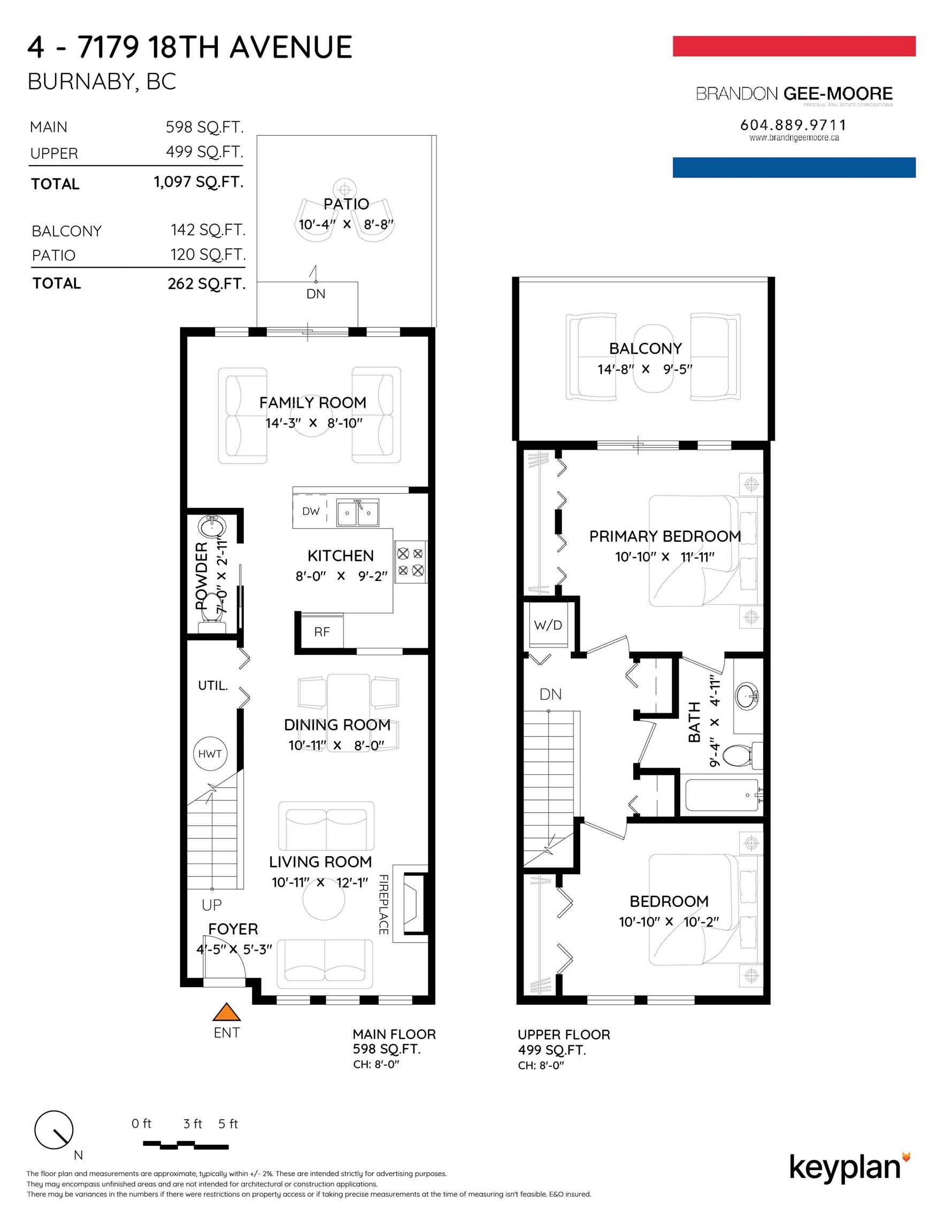 Welcome to Canford Corner in Edmonds. This ground level 2 story townhome features 2 bedrooms with a huge 142 sq ft balcony off of the primary bedroom & a 120 sq ft patio off of the kitchen. Cozy gas fireplace included in the strata fee! Powder room on the main floor! Two parking stalls. Walk to RONA, F45 Training Gym, Waves Coffee, many banks, McDonalds, endless stores along Edmonds Street & Highgate Village Shopping Centre which includes Save-On-Foods, Shoppers Drug Mart, Starbucks, Club 16 Fitness, BCLiqu...